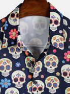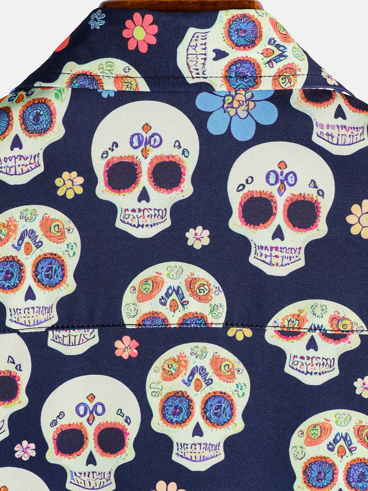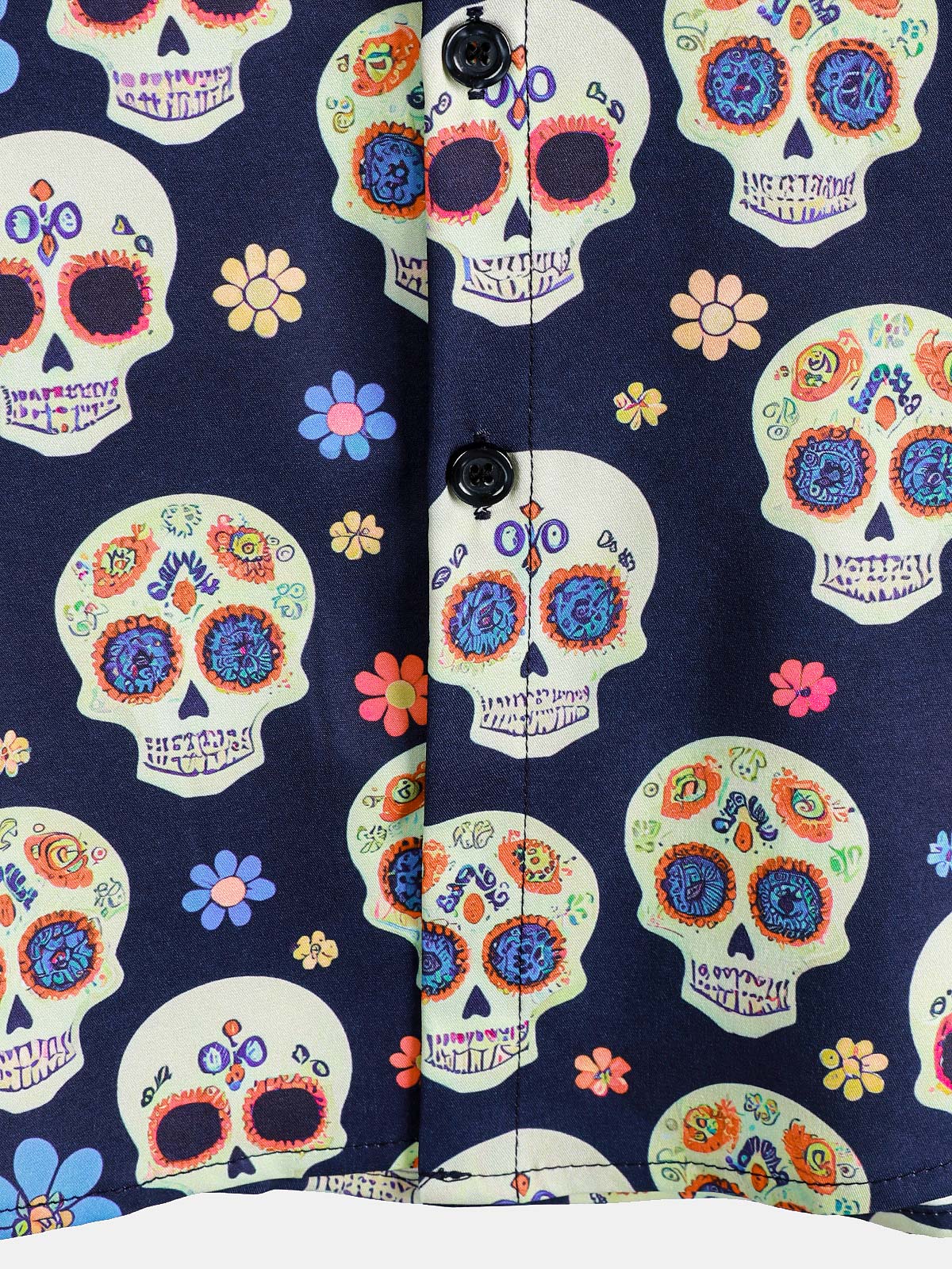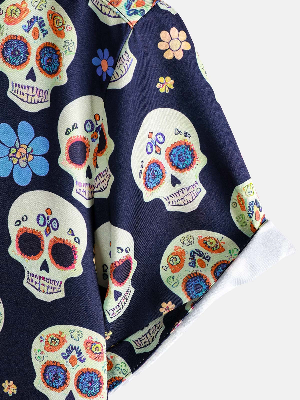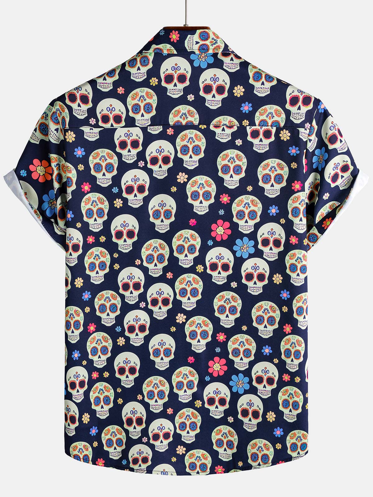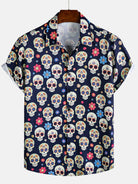 Chemise à manches courtes boutonnée pour homme, motif floral et crâne, style punk rock