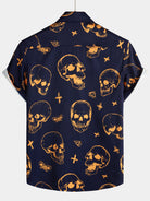 Chemise hawaïenne Aloha à manches courtes avec imprimé tête de mort orange pour homme