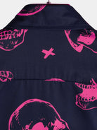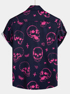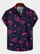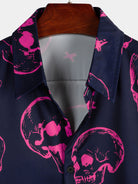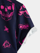 Chemise hawaïenne Aloha à manches courtes pour hommes, imprimé tête de mort rose, bouton graphique artistique