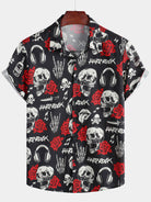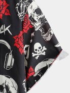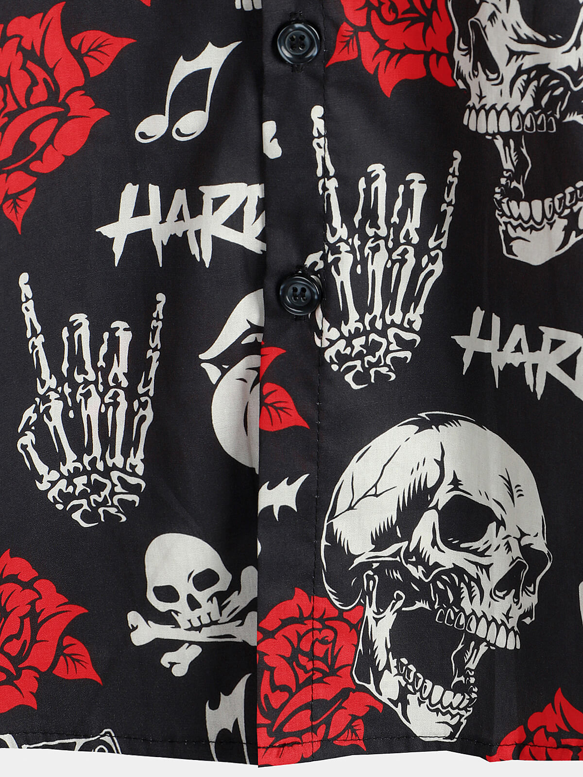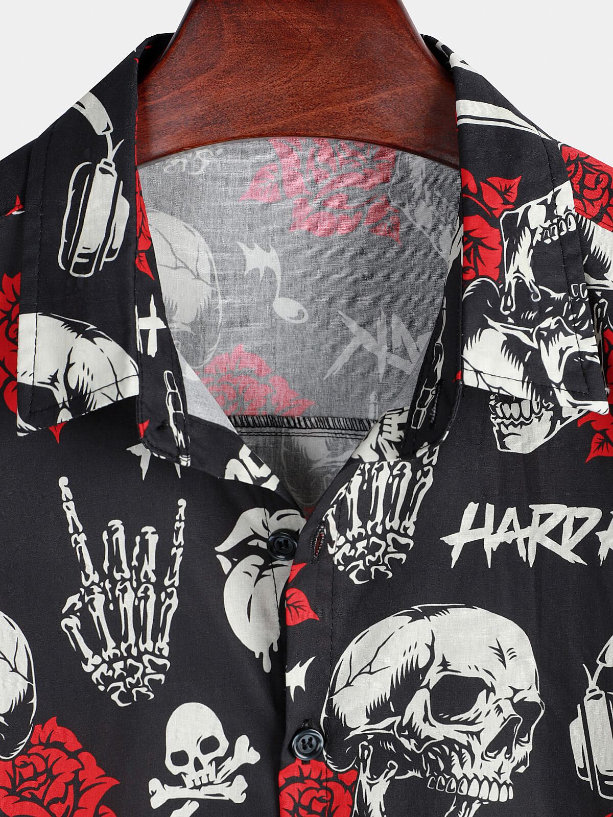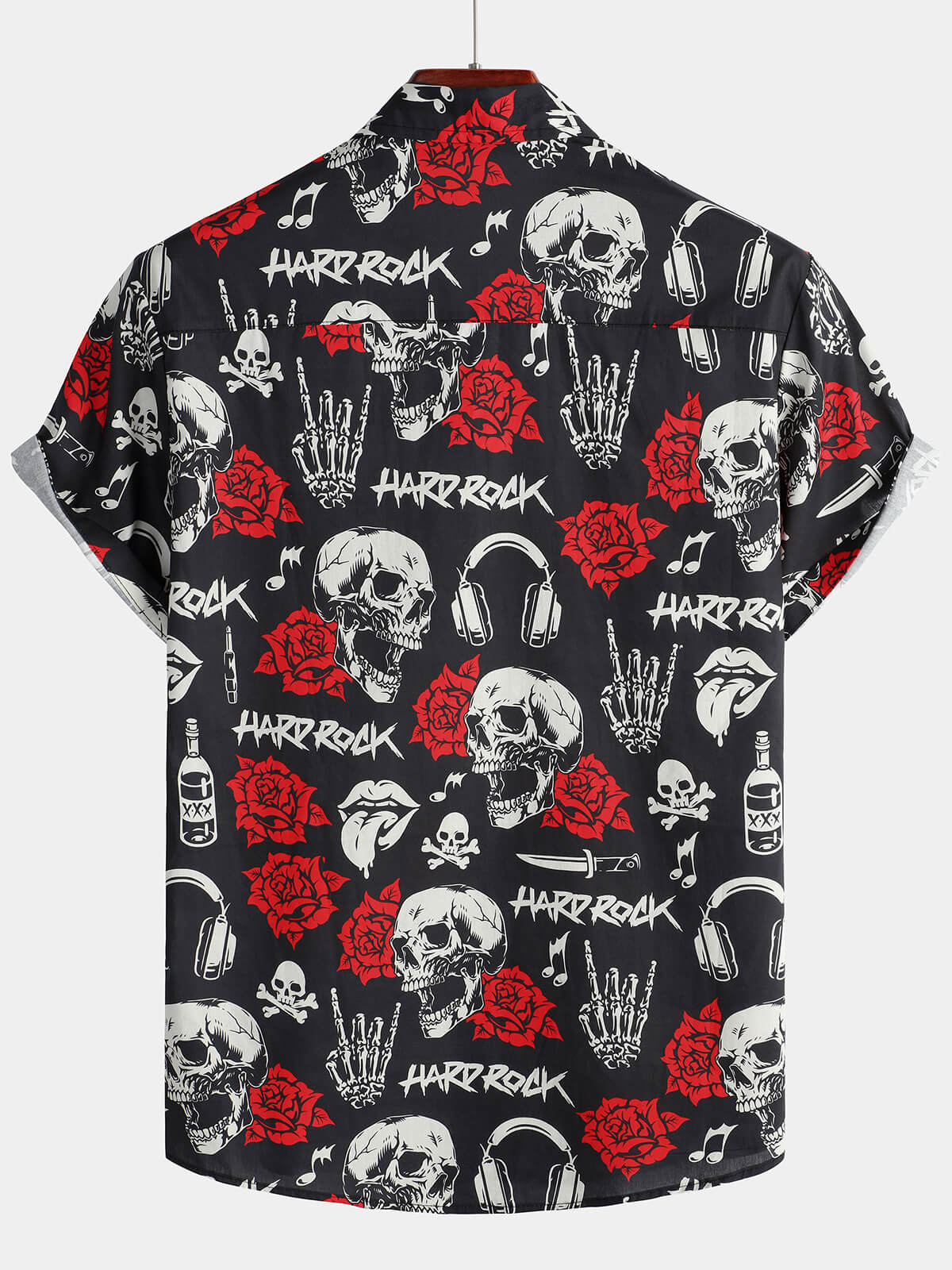Chemise hawaïenne à manches courtes pour hommes, crâne Rose Floral Punk Rocker Cool Rock Music