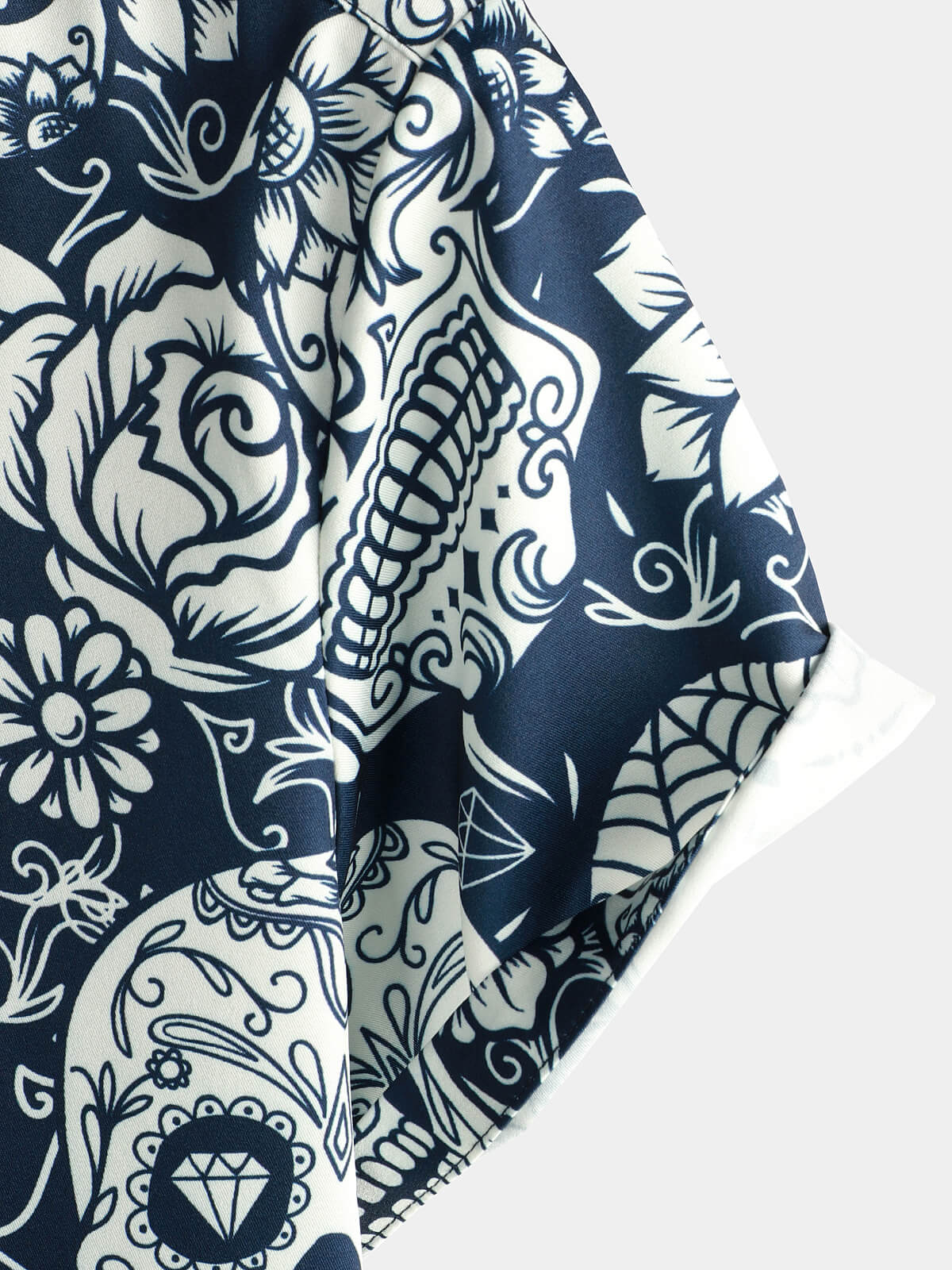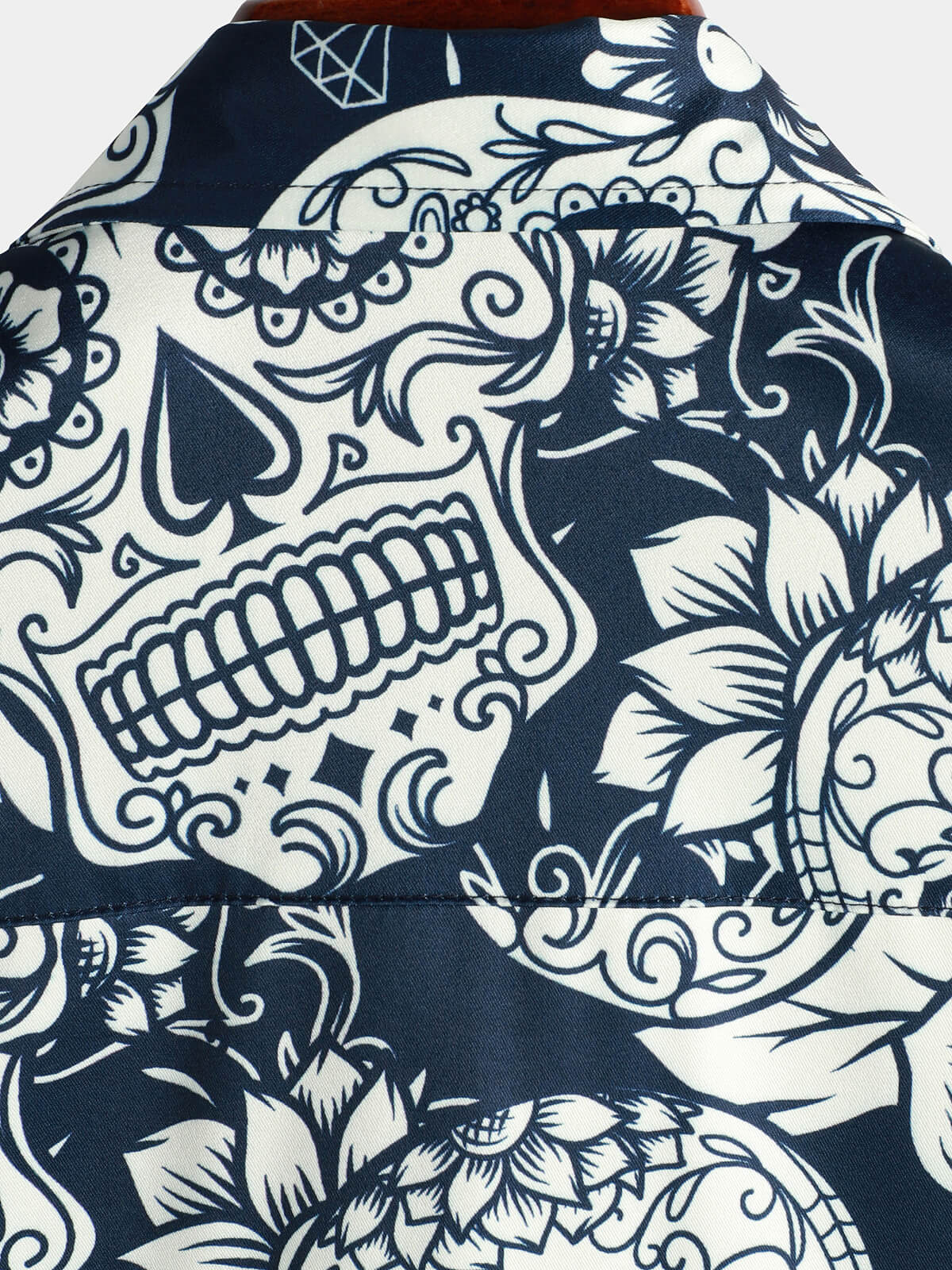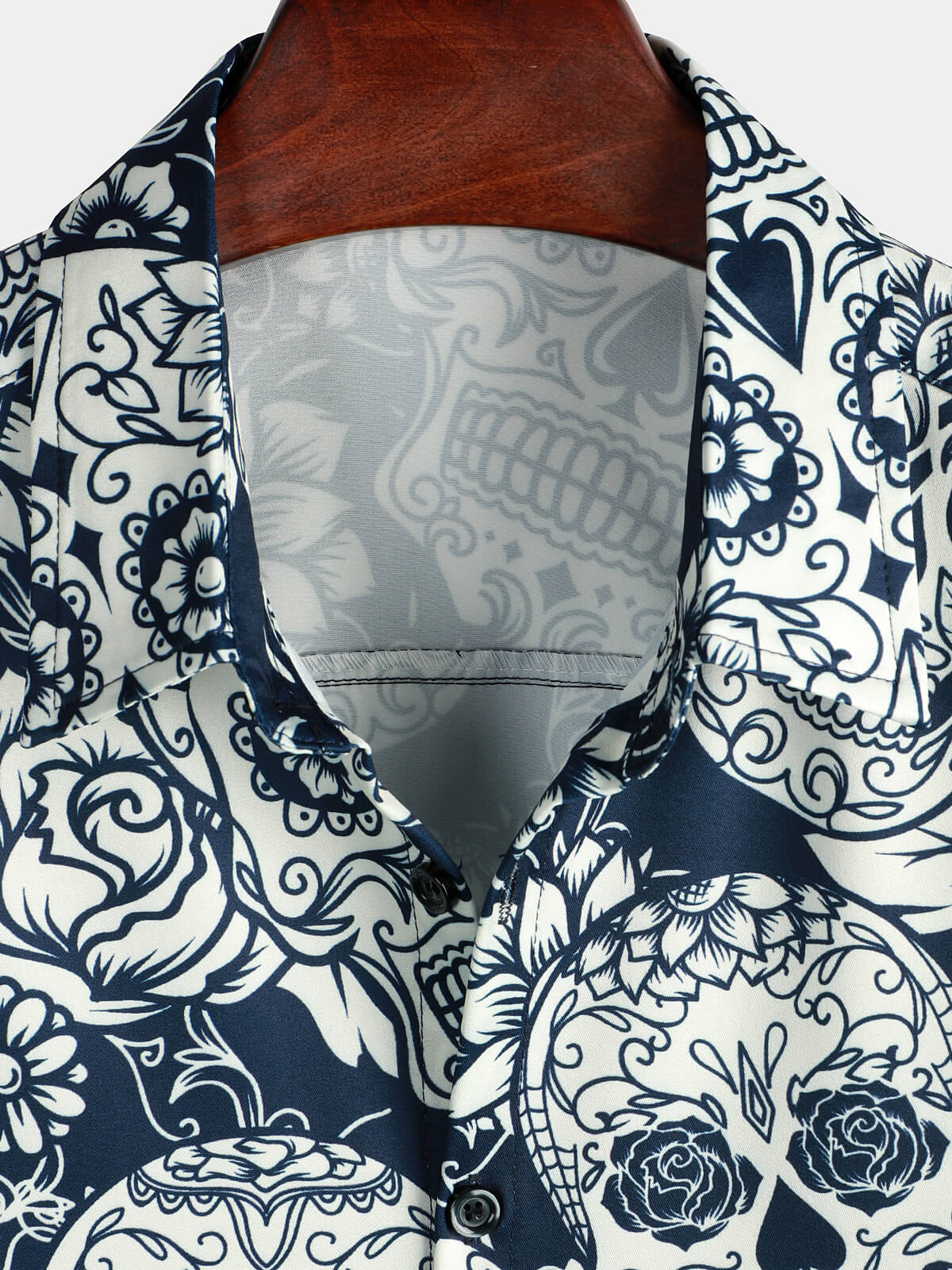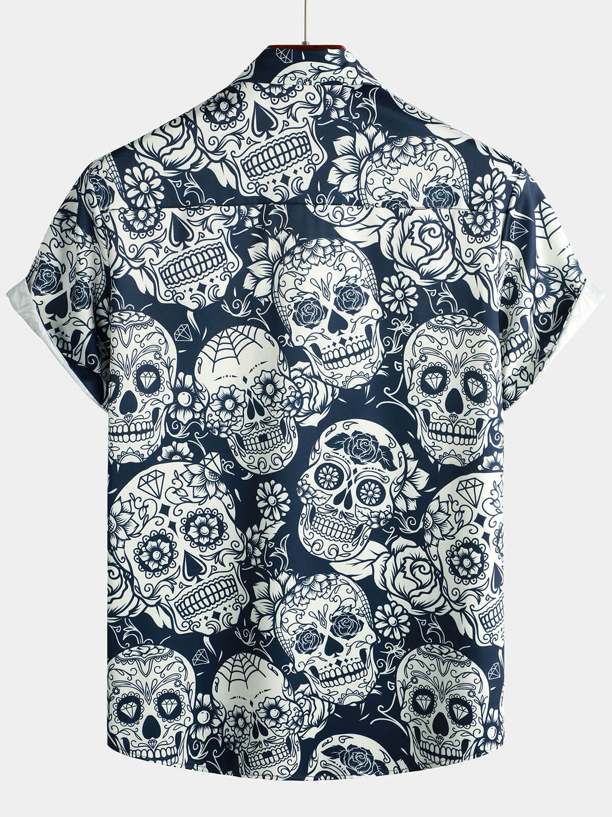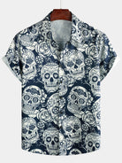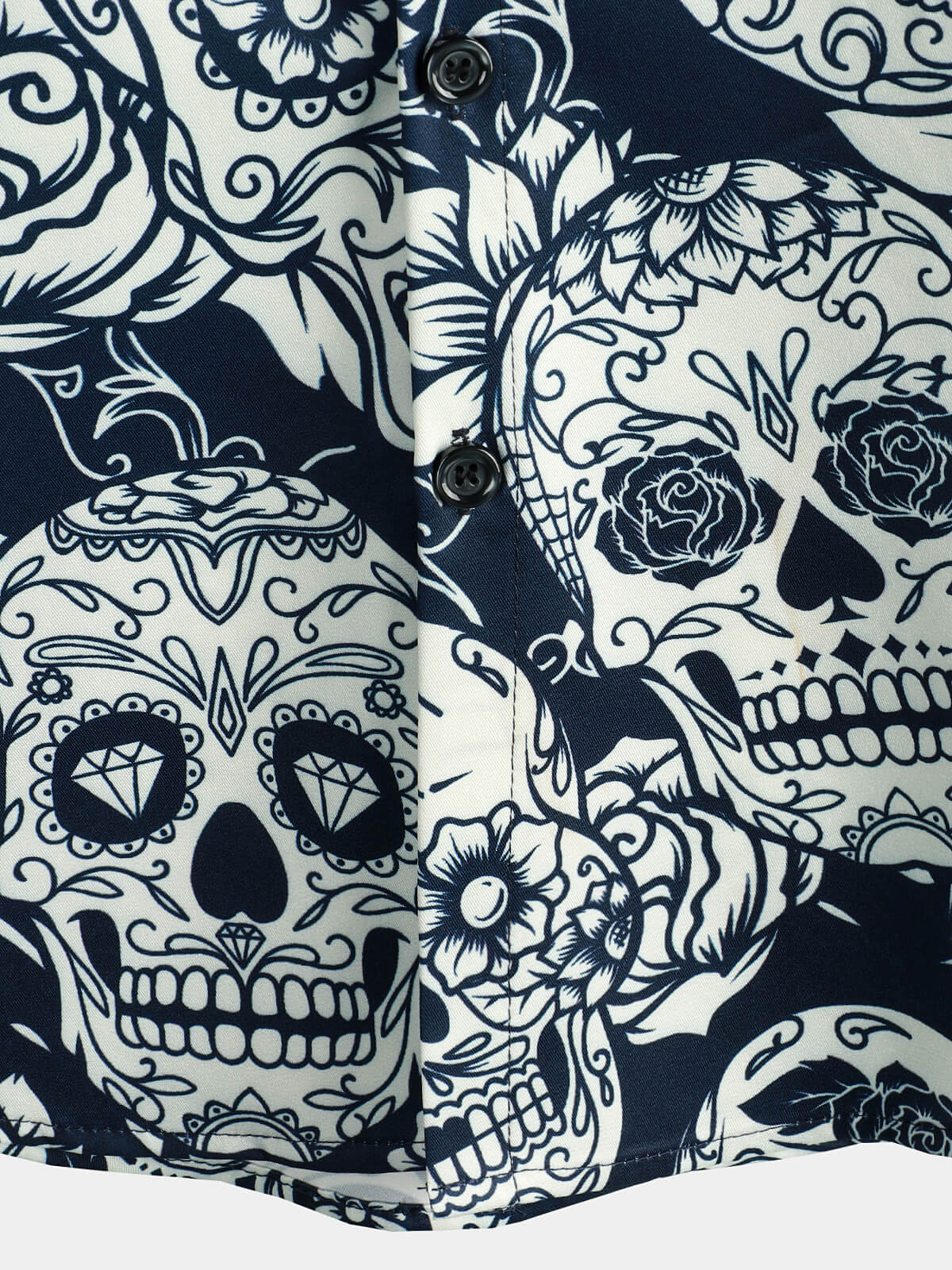 Chemise hawaïenne à manches courtes pour hommes imprimé Floral crâne de sucre Cool boutonnée drôle