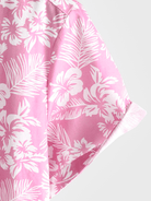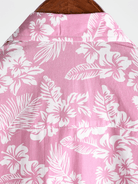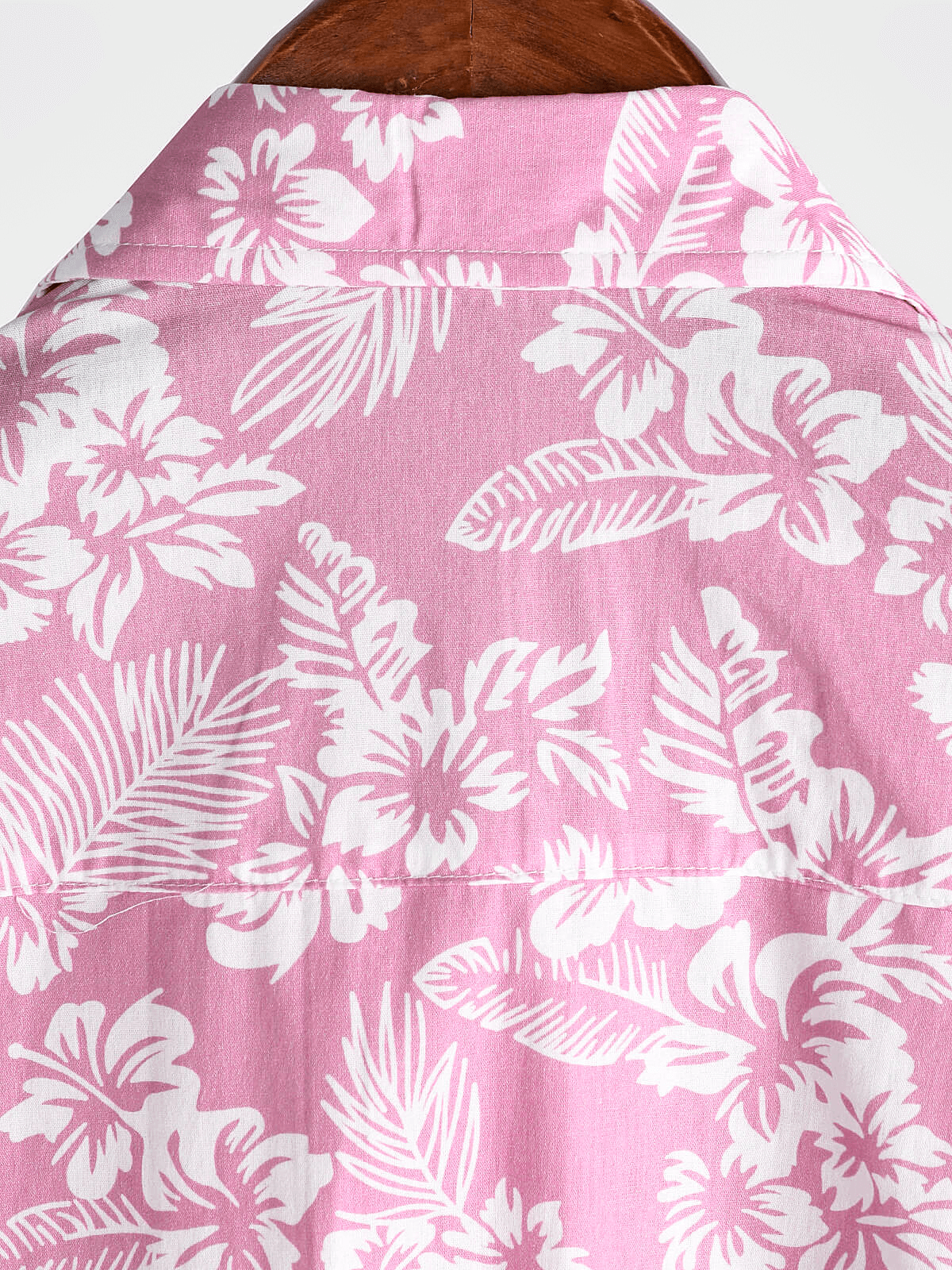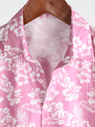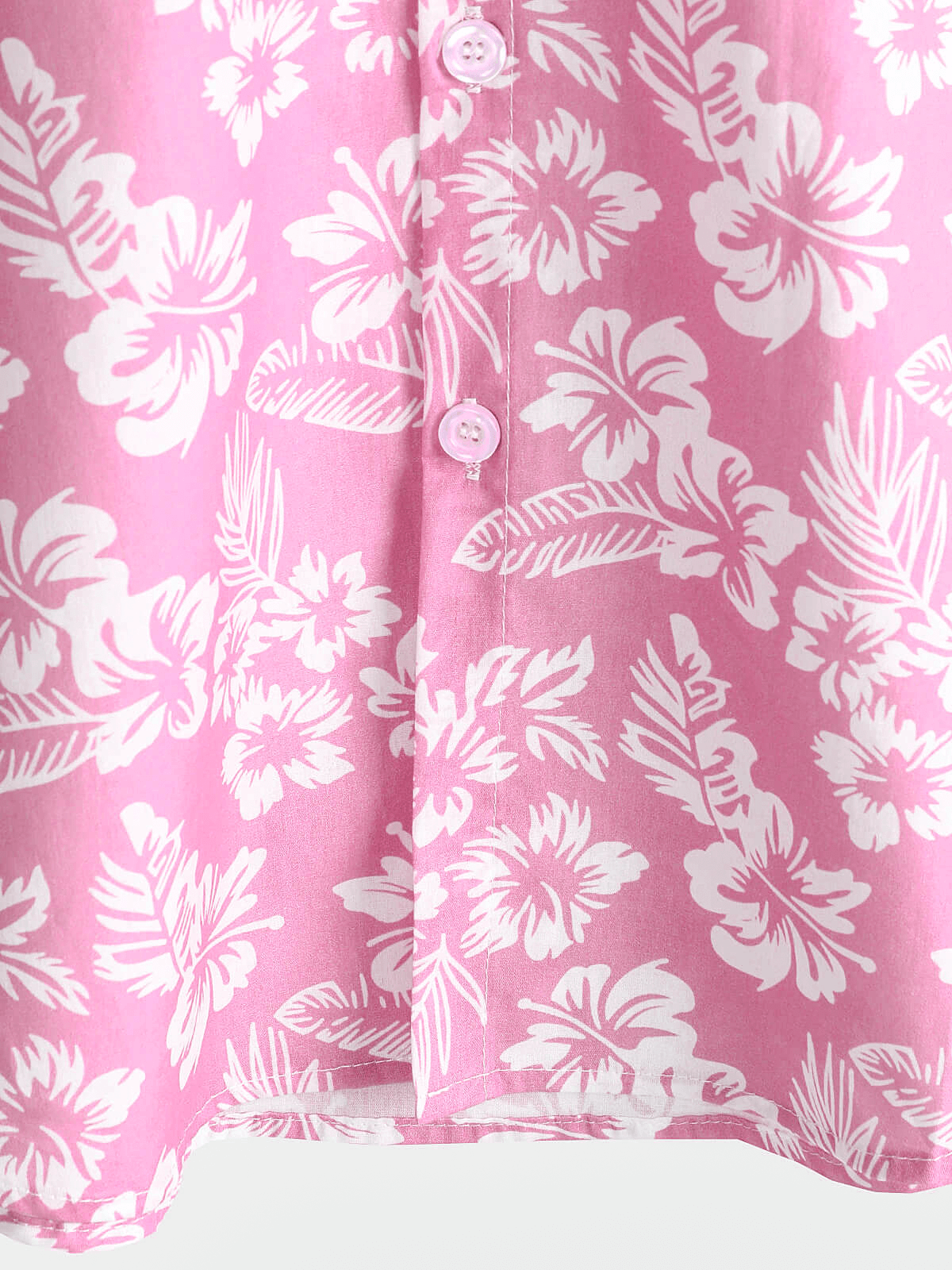 Chemise d'été à manches courtes boutonnée à fleurs hawaïennes en coton rose pour hommes