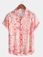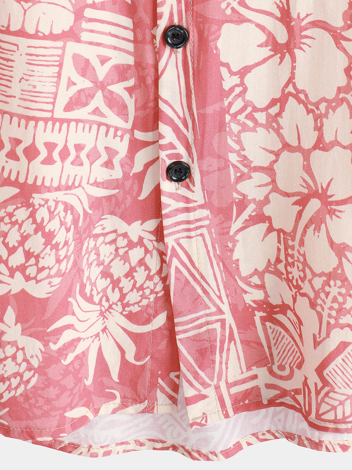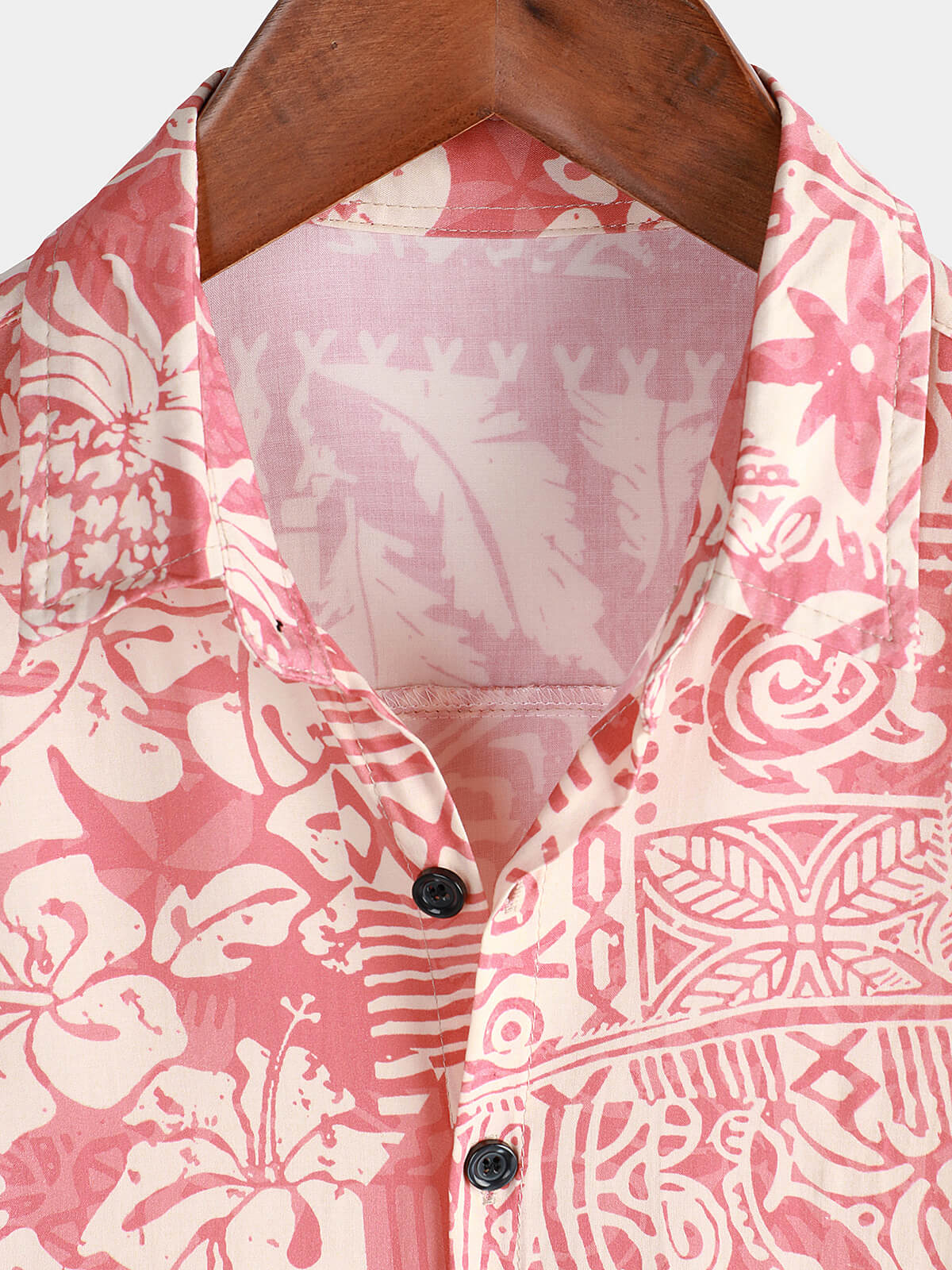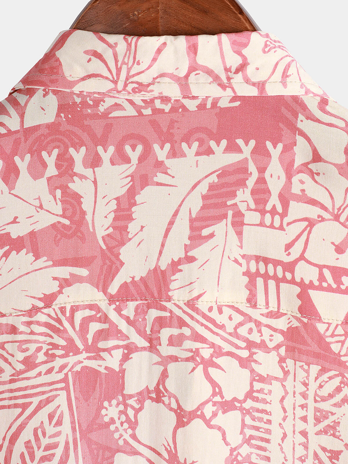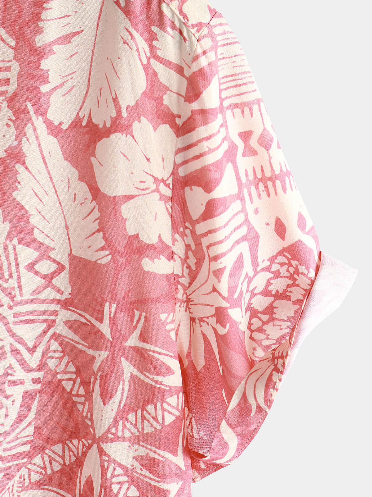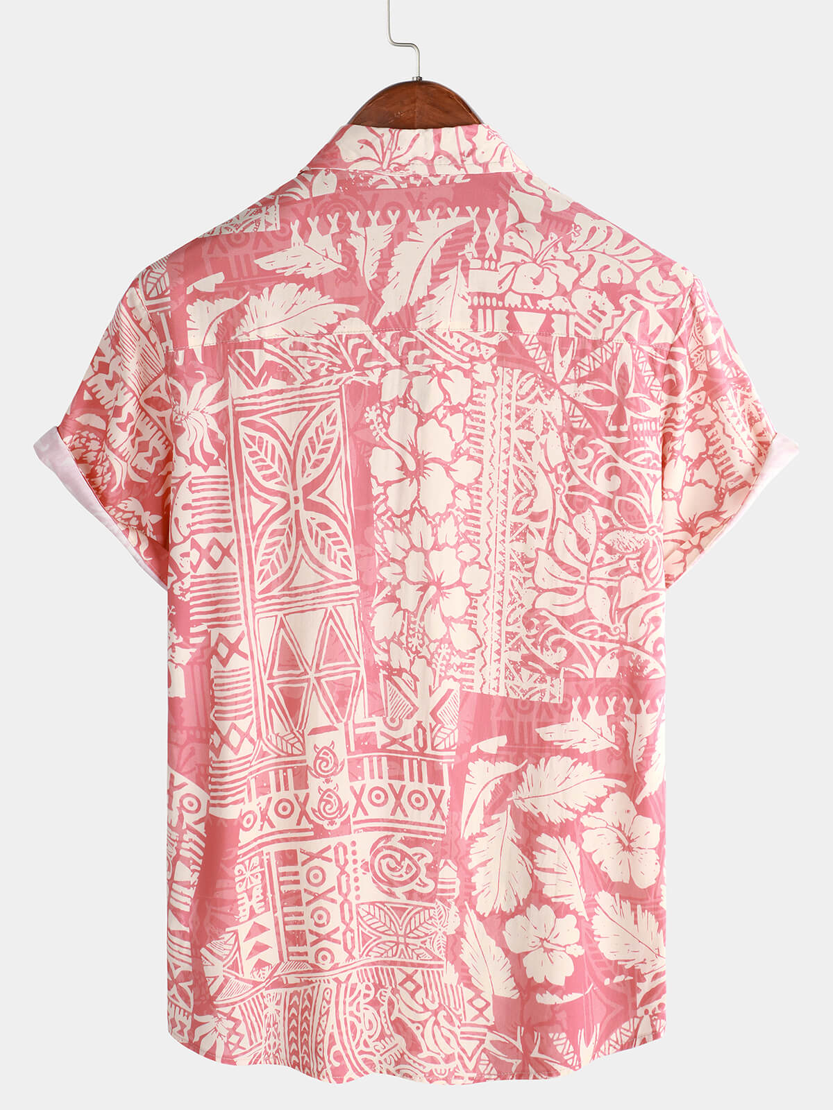 Chemise boutonnée à manches courtes hawaïenne pour hommes, motif floral tropical rose, vacances
