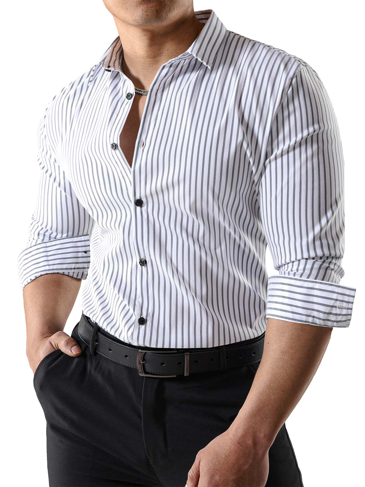 Bleu marine Chemise boutonnée à manches longues en coton respirant pour homme, couleur unie Blanc Chemise boutonnée à manches longues en coton respirant pour homme, couleur unie Rose Chemise boutonnée à manches longues en coton respirant pour homme, couleur unie Bleu Chemise boutonnée à manches longues en coton respirant pour homme, couleur unie Gris Chemise boutonnée à manches longues en coton respirant pour homme, couleur unie Noir Chemise boutonnée à manches longues en coton respirant pour homme, couleur unie + 3 more