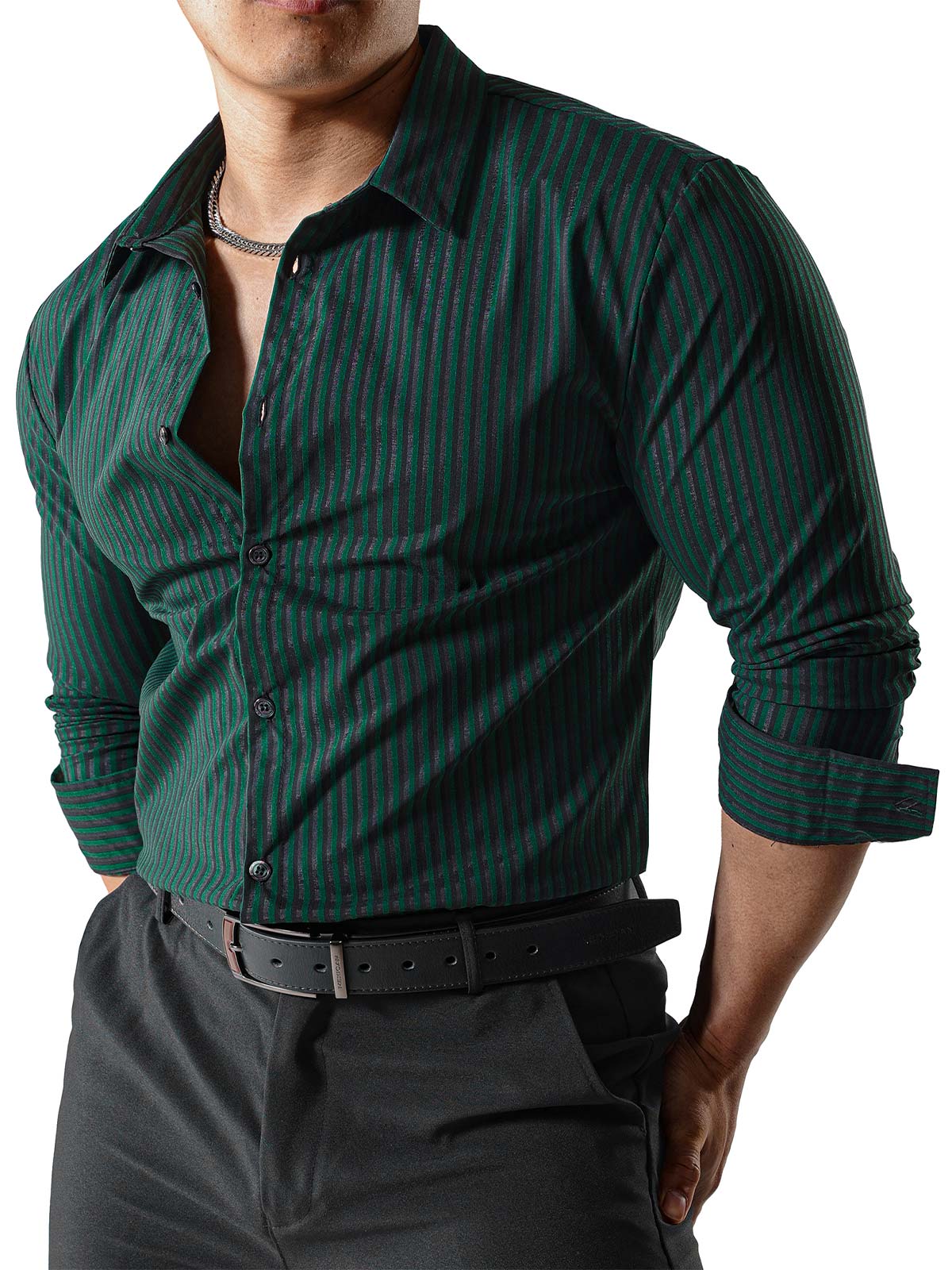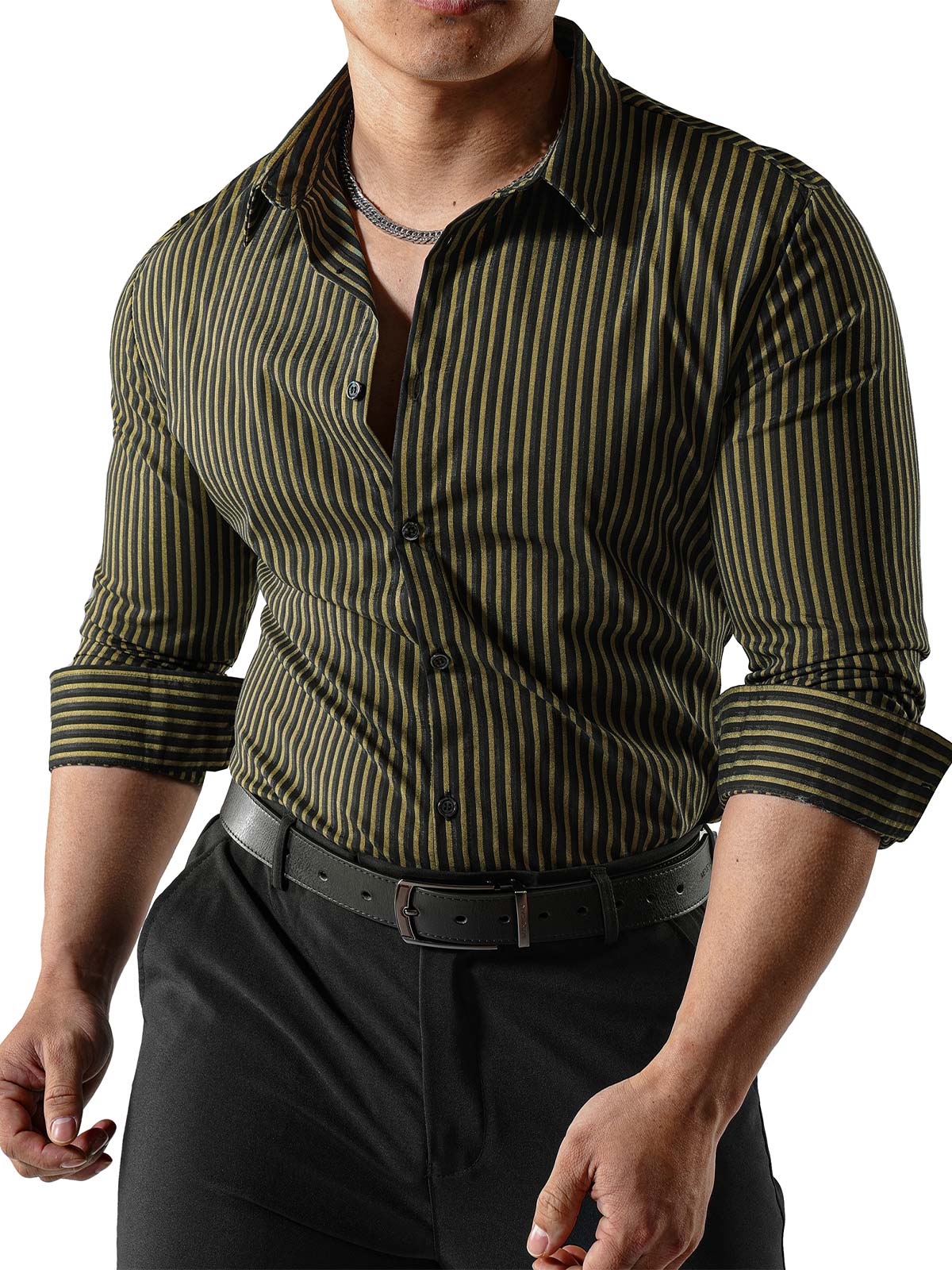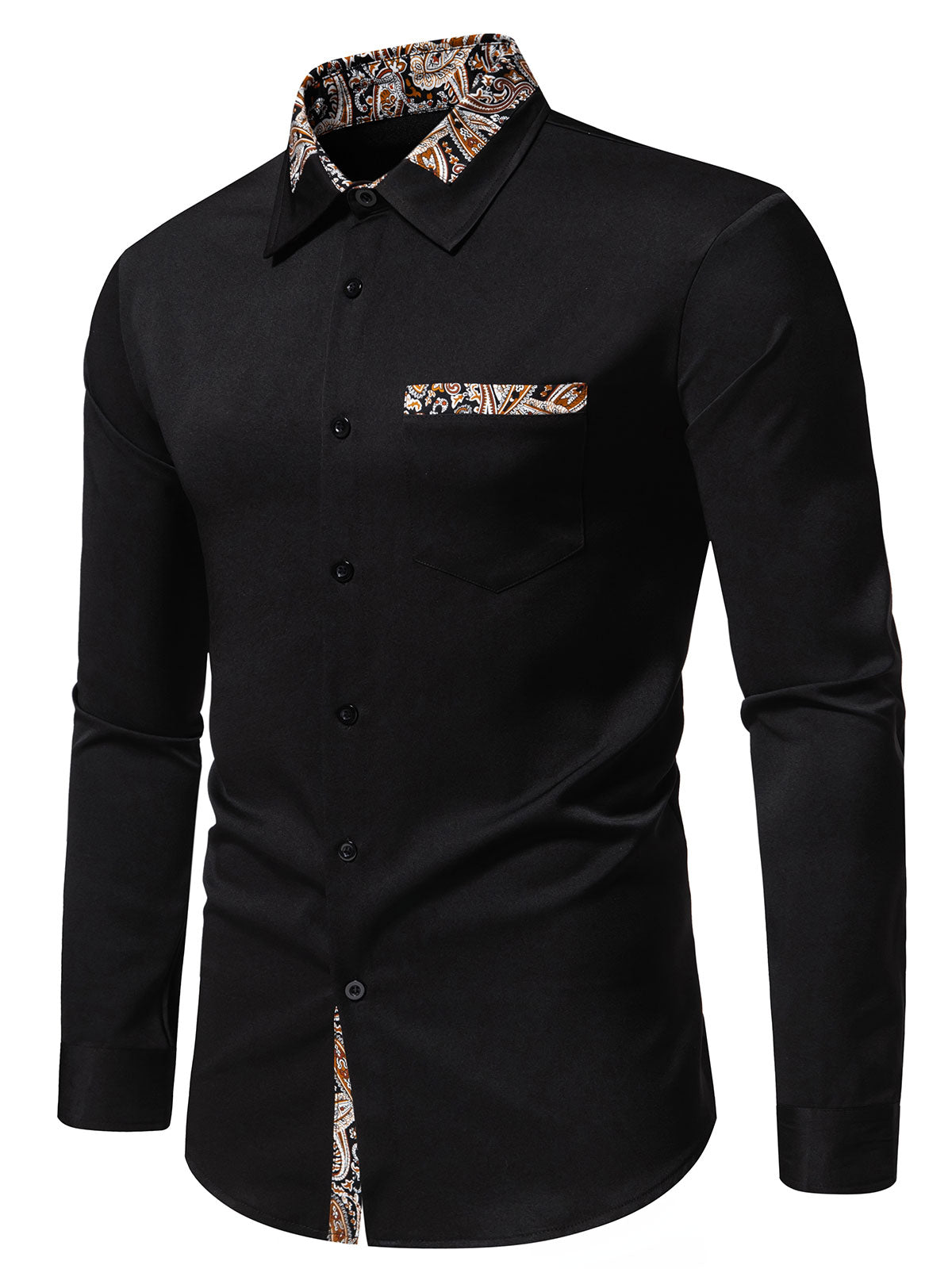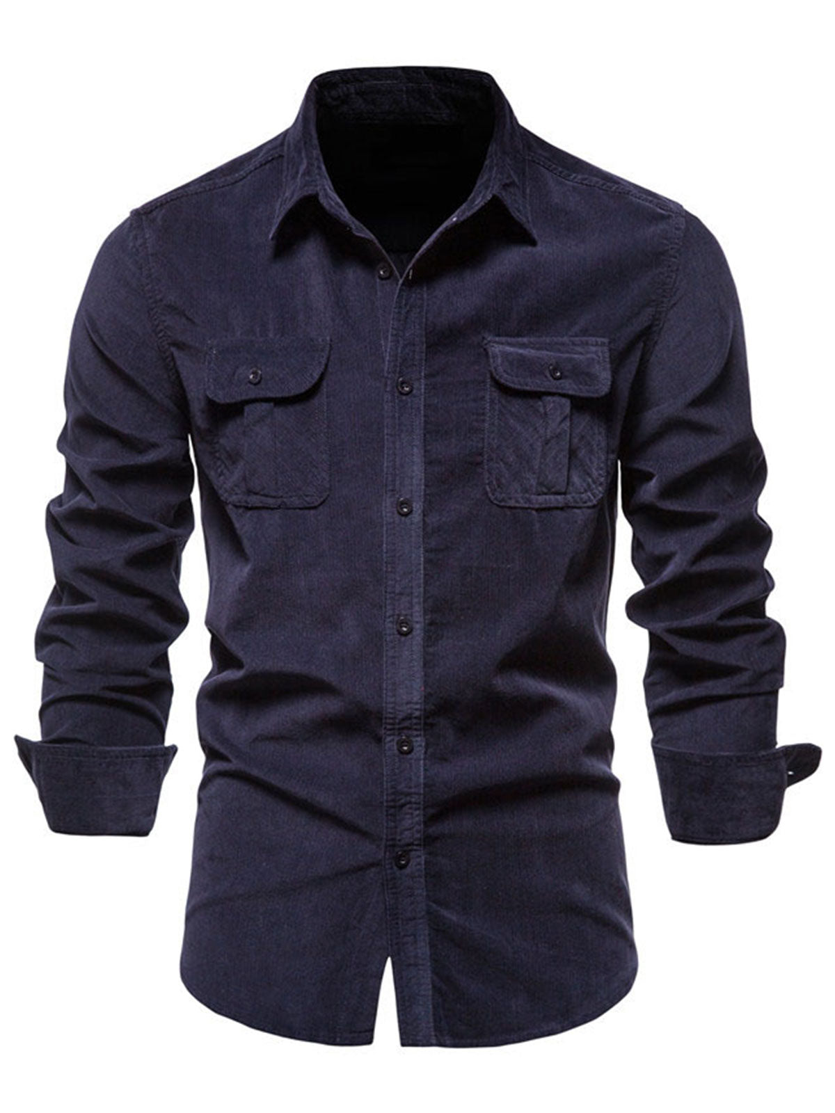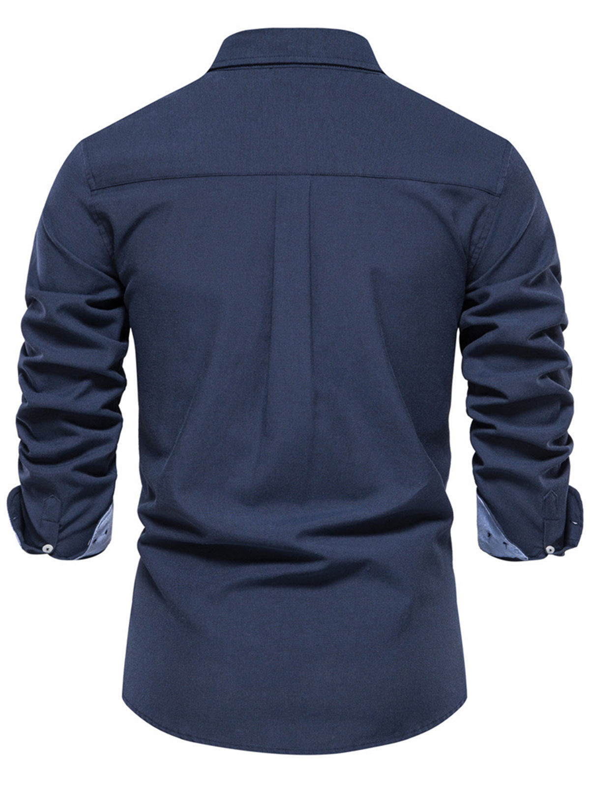 Chemise boutonnée à manches longues en coton respirant pour homme, couleur unie