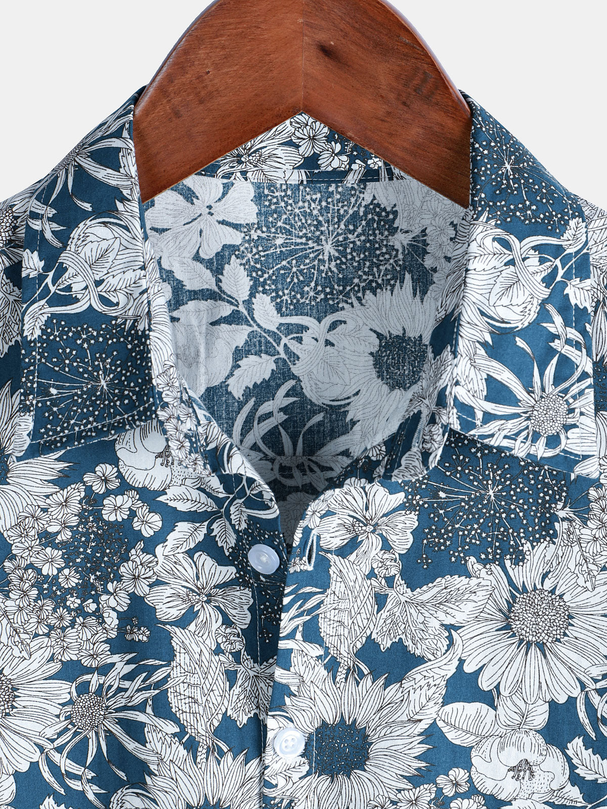 Chemise de vacances respirante à manches courtes et imprimé floral rétro pour homme