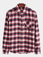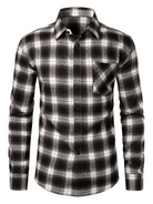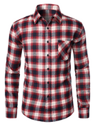 - Chemise manches longues, col revers, fermeture boutonnée, 1 poche poitrine, carreaux et rayures sont raccordés.