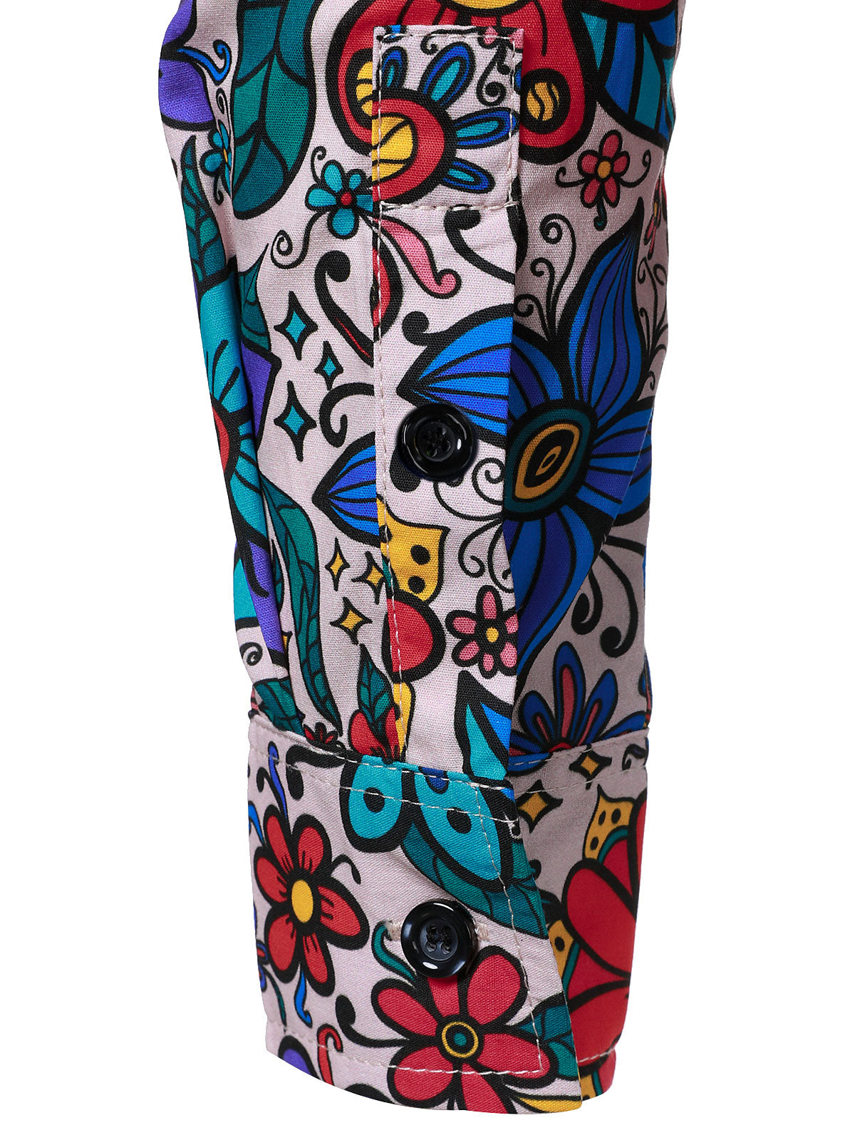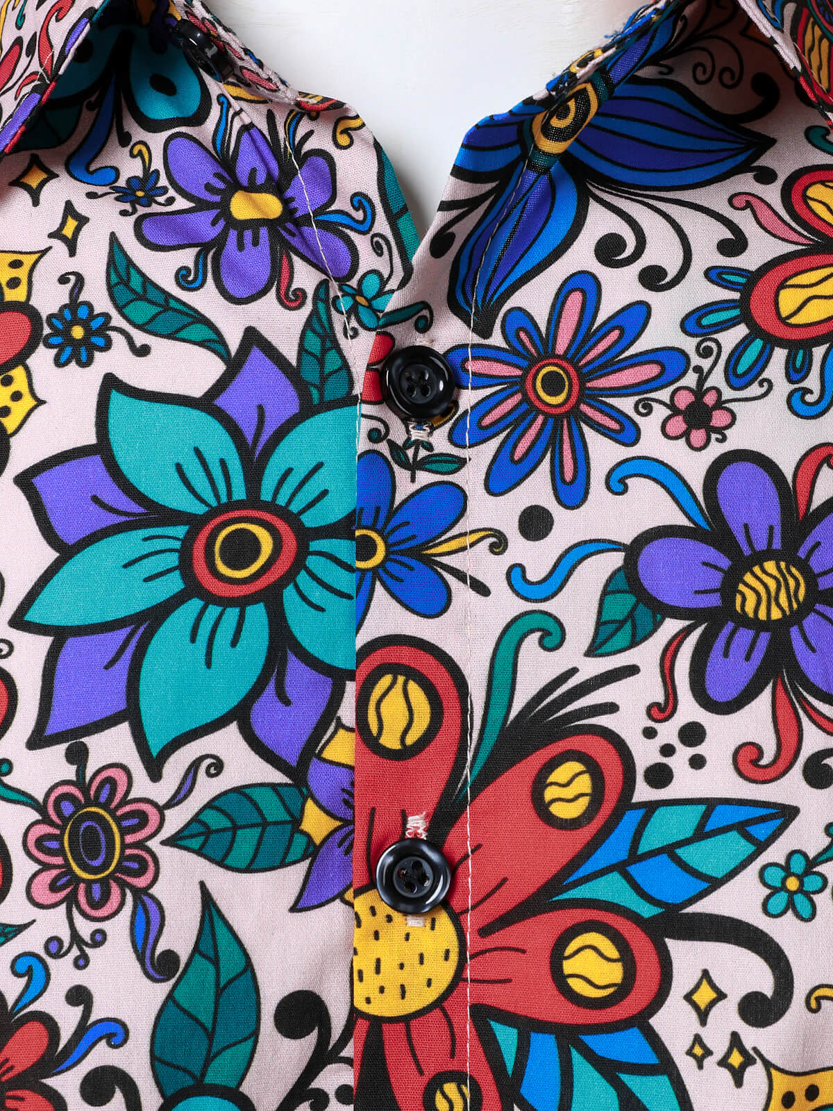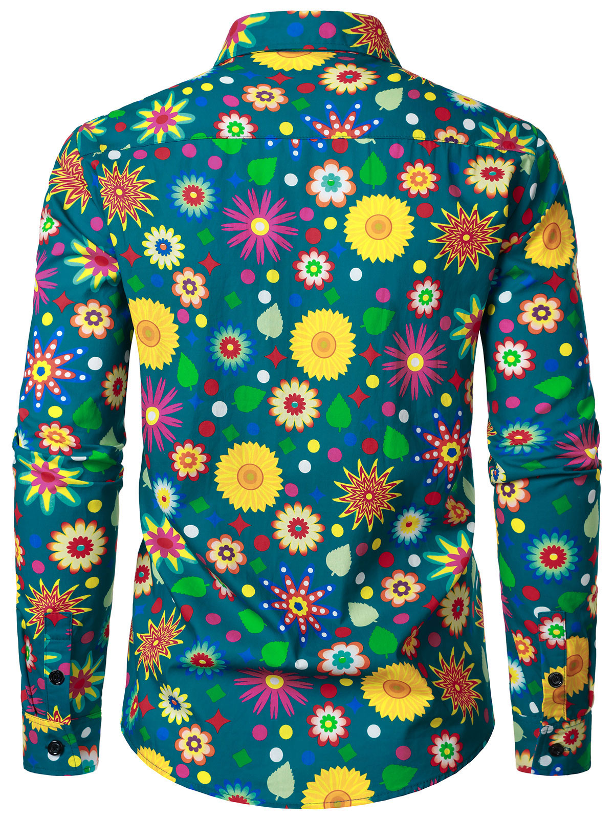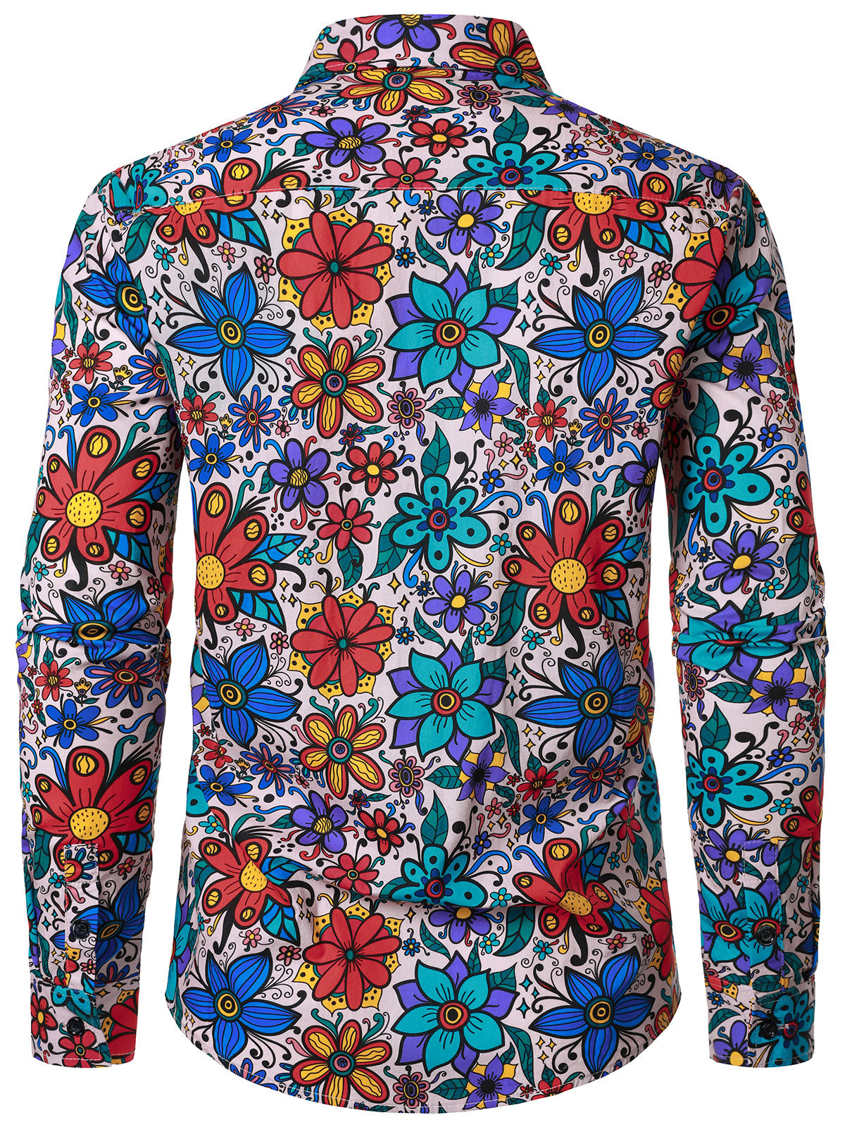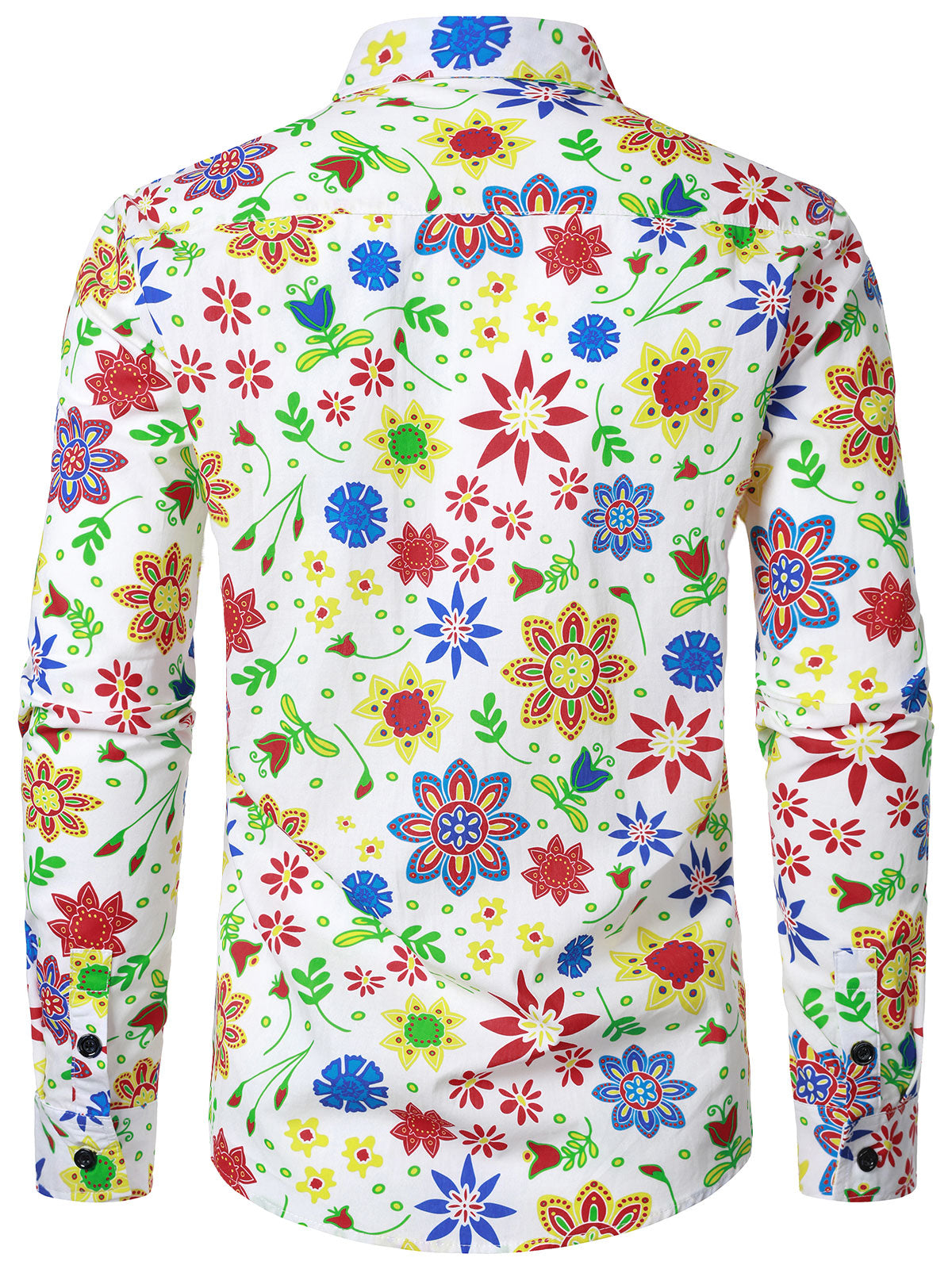 Chemise boutonnée à manches longues en coton à fleurs colorées pour hommes
