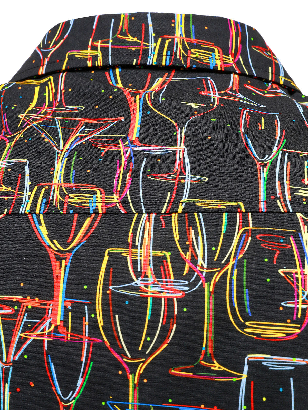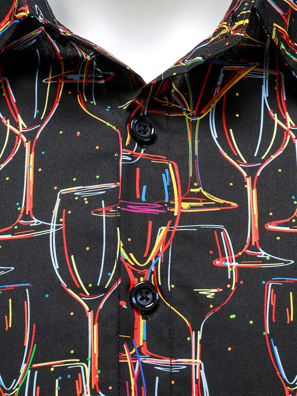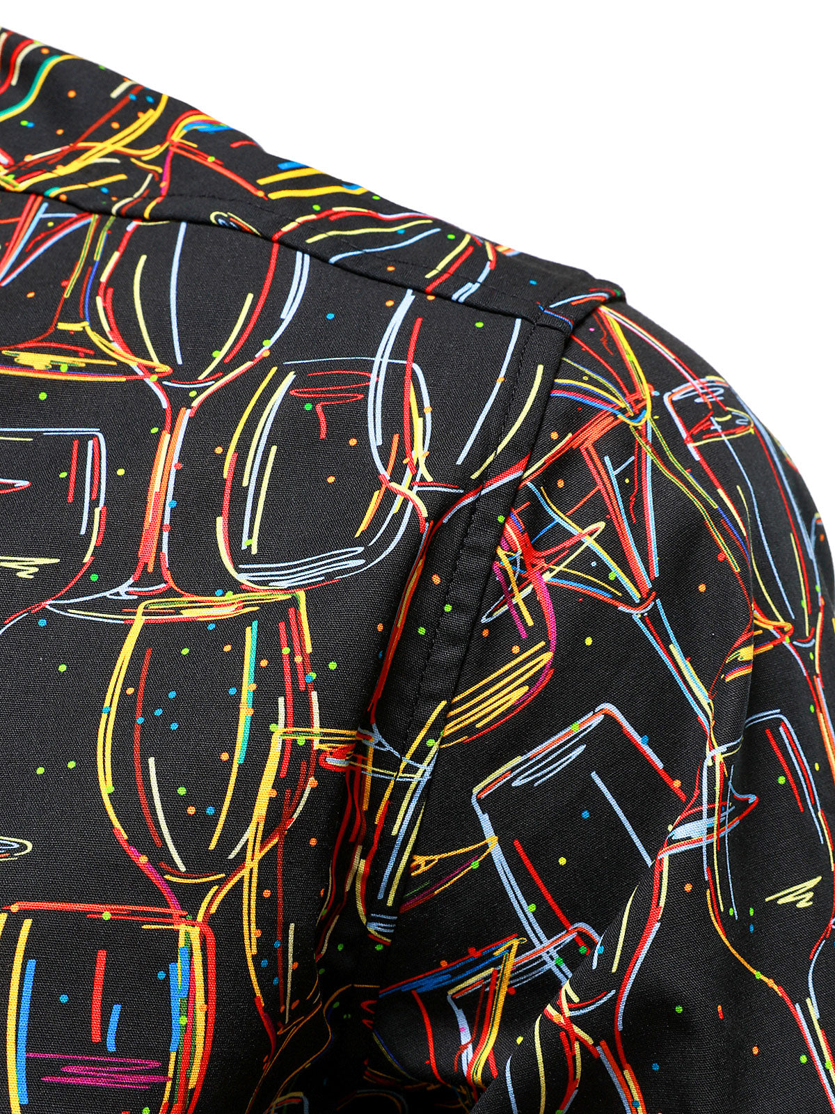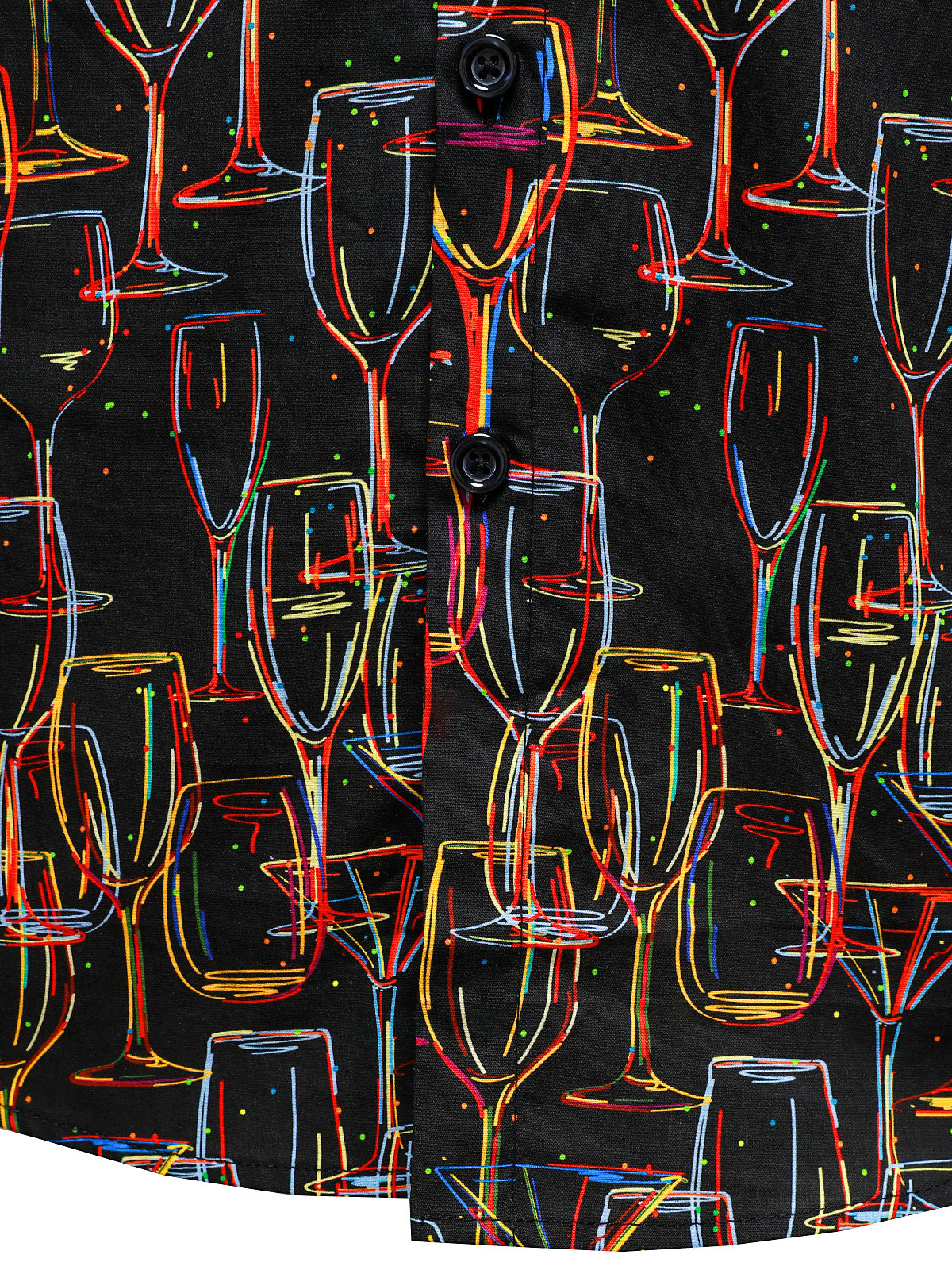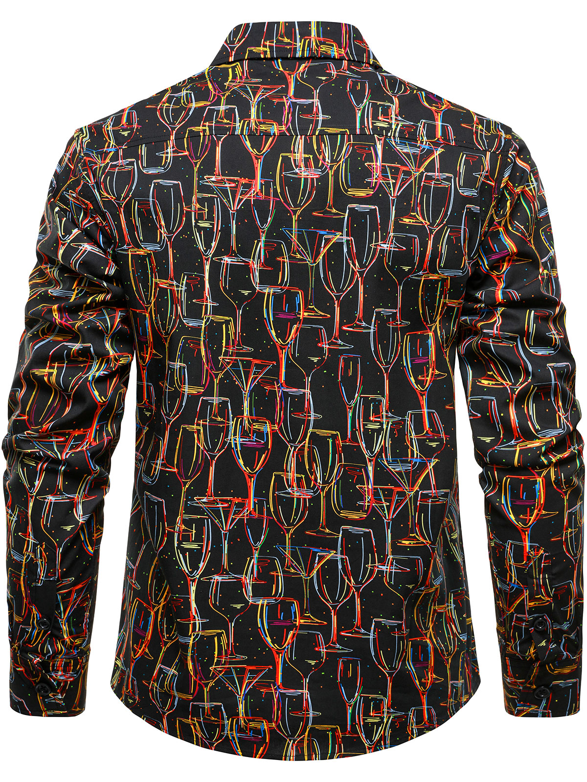 Chemise de soirée décontractée pour homme, imprimée verre à vin, manches longues, en coton, motif verre à vin