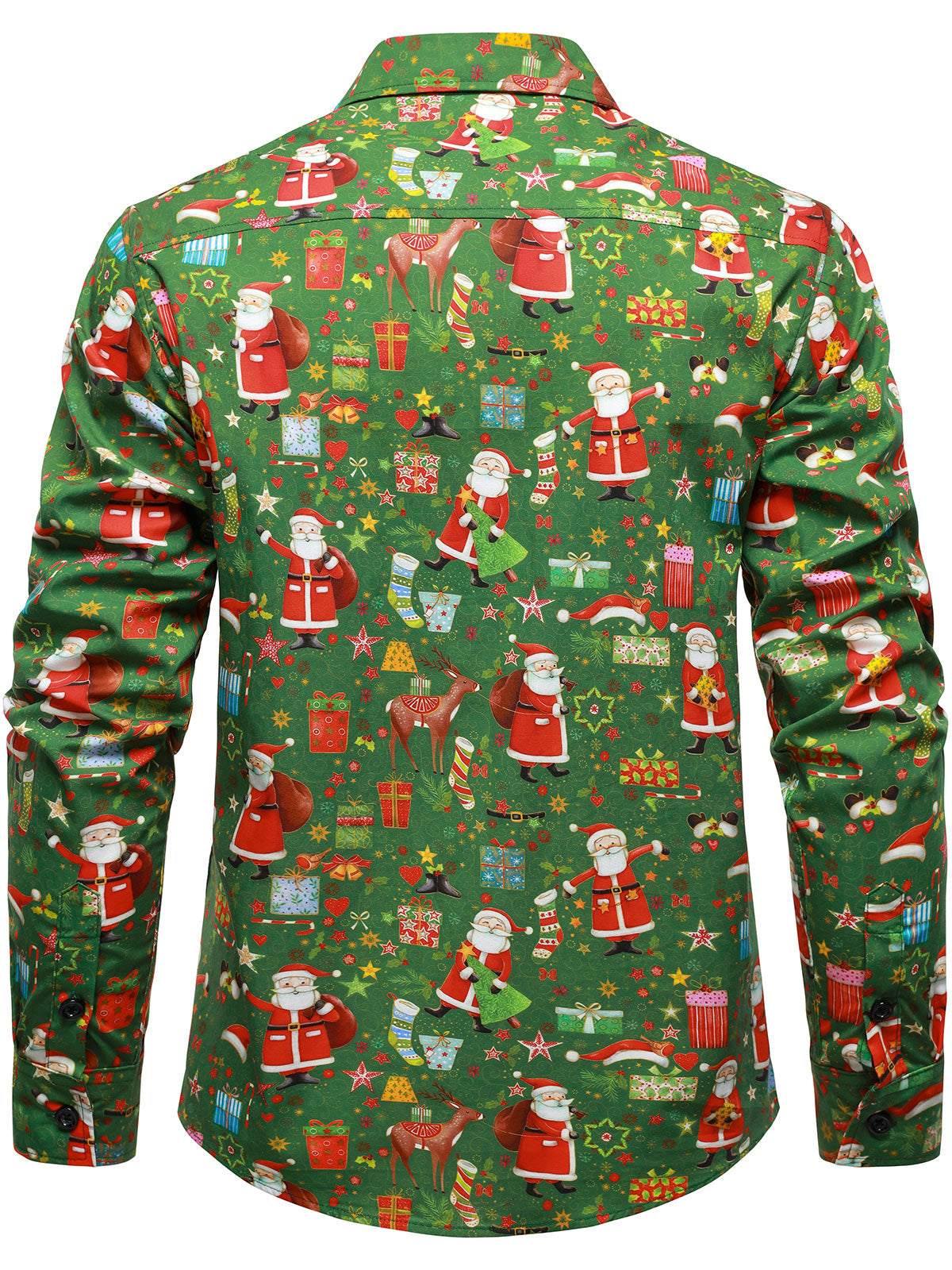 Chemise à manches longues boutonnée pour homme, motif Père Noël festif, idéale pour les fêtes de fin d'année