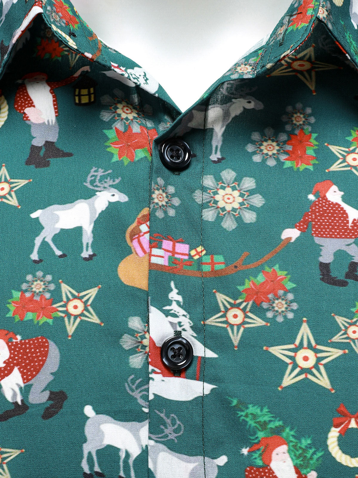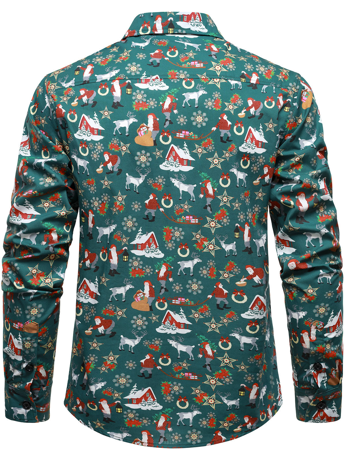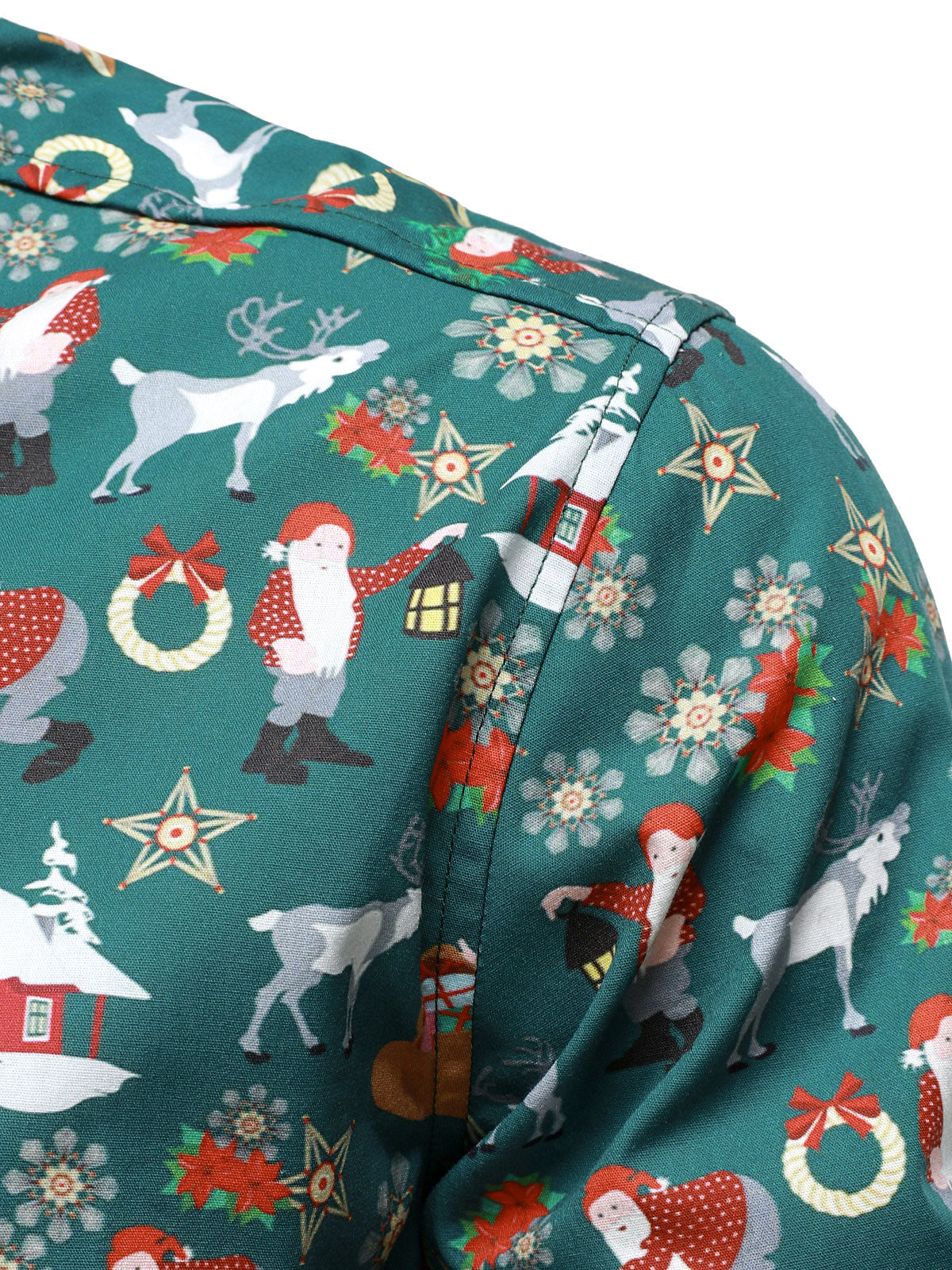 Chemise à manches longues boutonnée pour homme avec imprimé graphique festif de Noël, Père Noël et rennes
