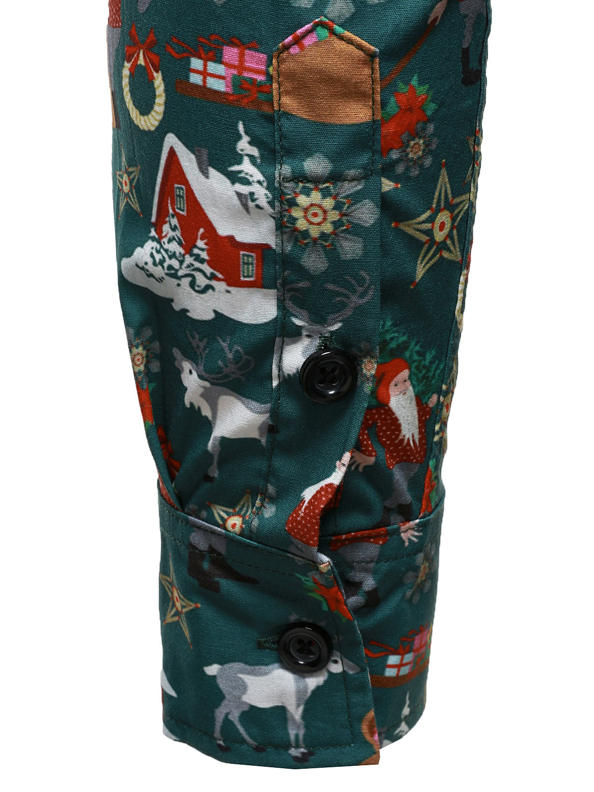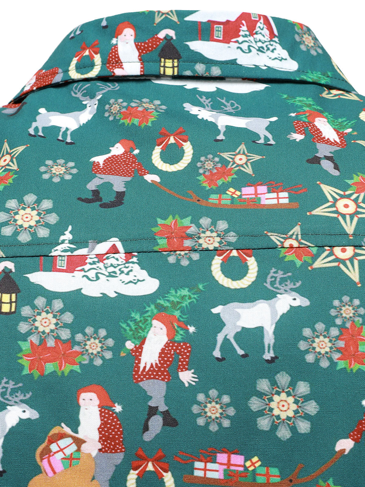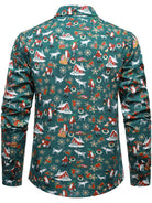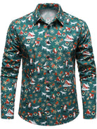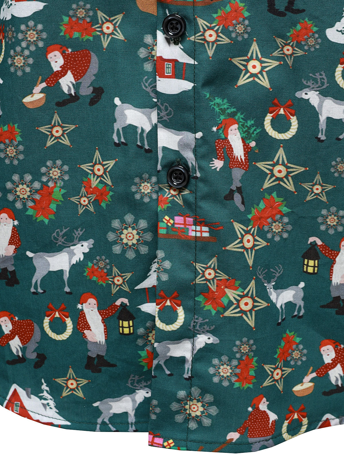 Chemise à manches longues boutonnée pour homme avec imprimé graphique festif de Noël, Père Noël et rennes