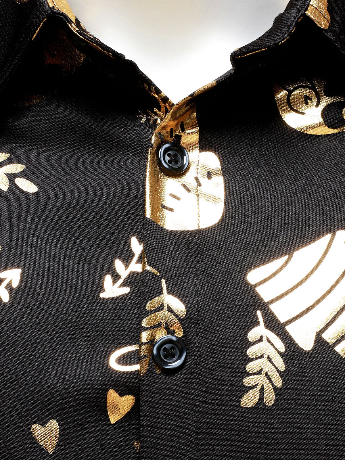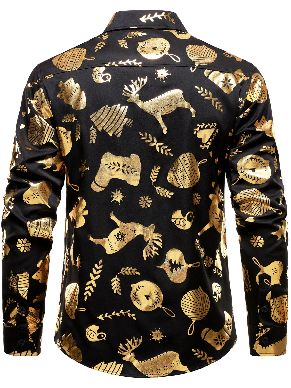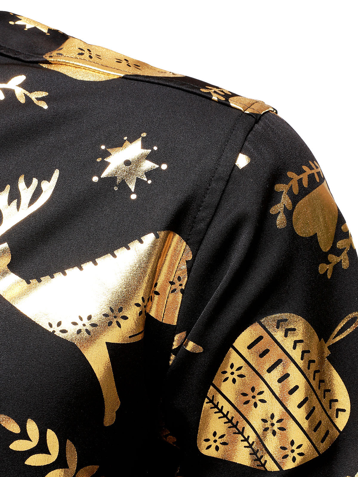 Chemise à manches longues boutonnée pour homme, motif rennes dorés brillants, idéale pour les fêtes de Noël