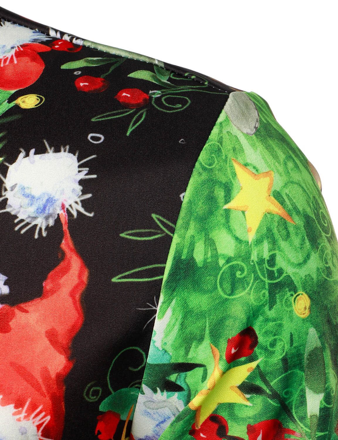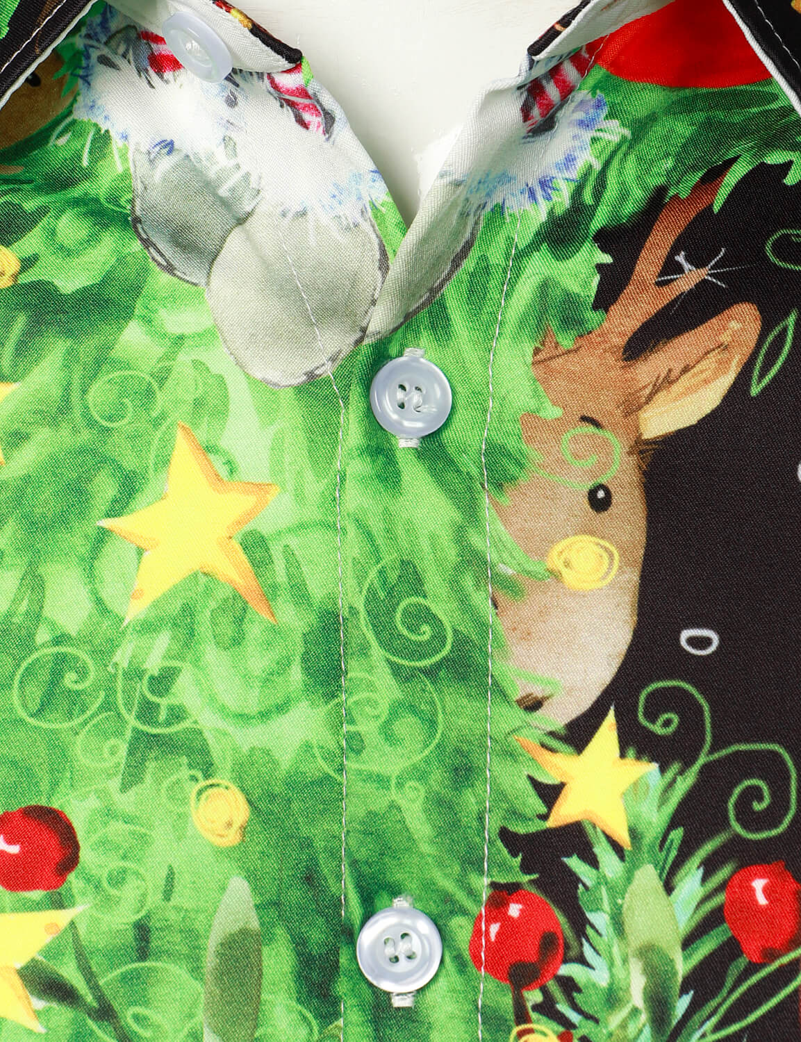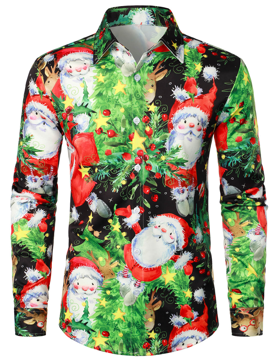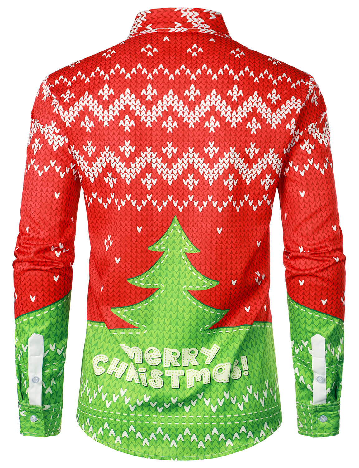 Chemise à manches longues pour homme, motif joyeux noël, arbre de noël, Costume de noël, boutons
