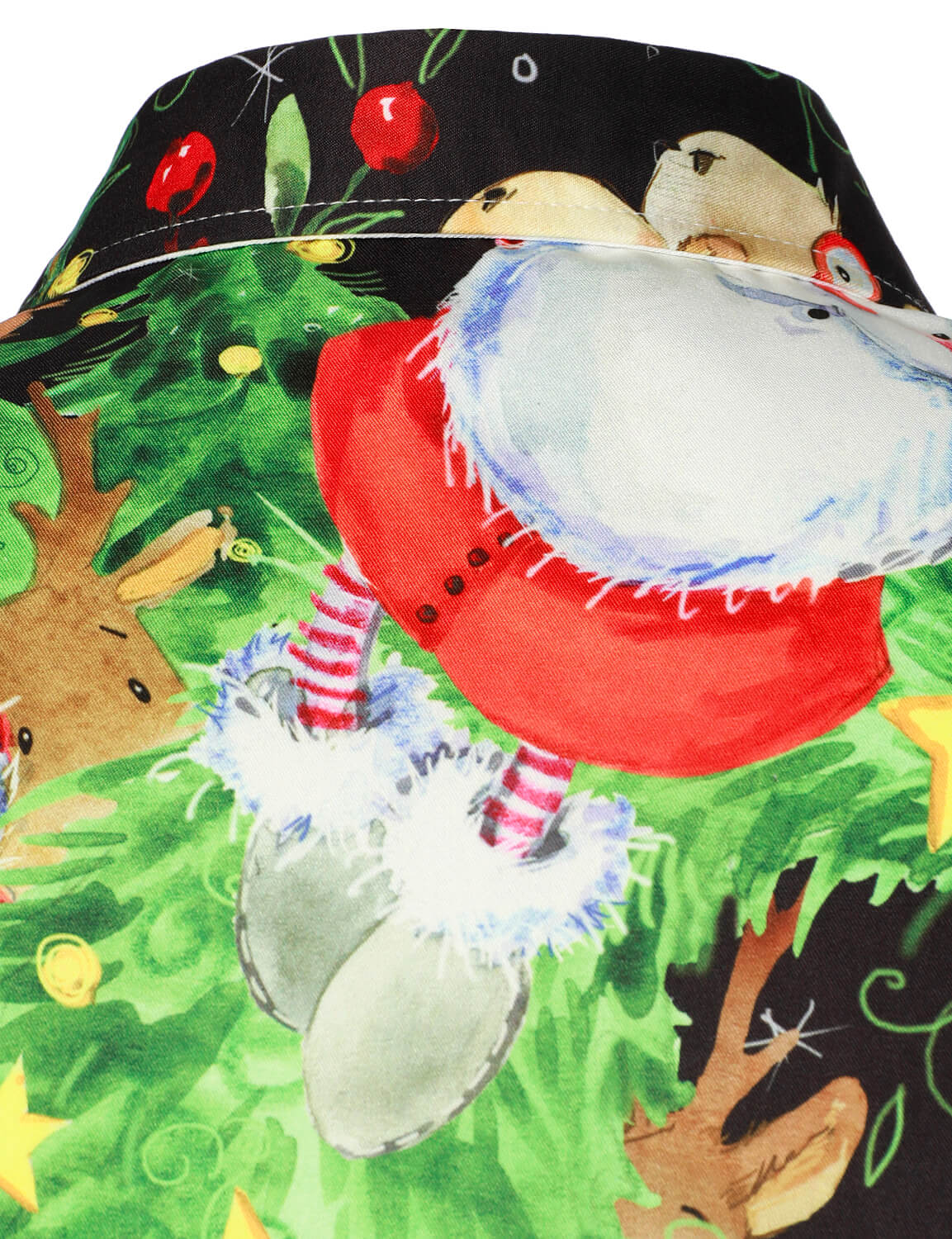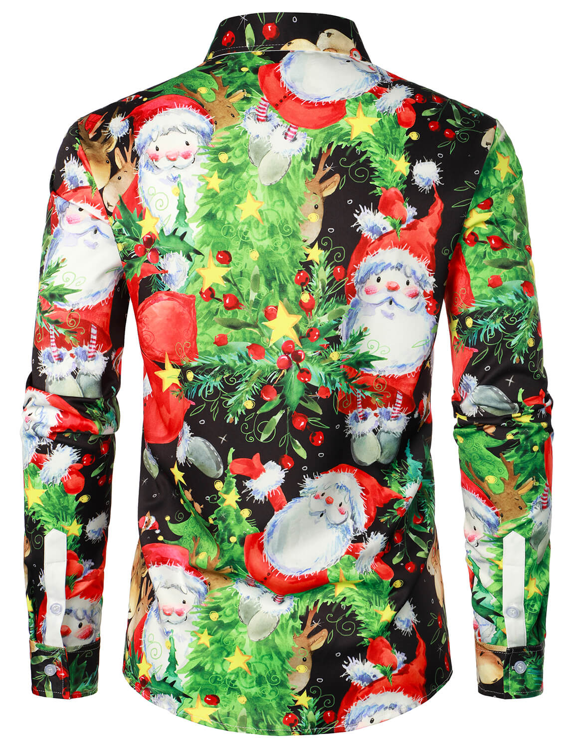 Chemise à manches longues boutonnée pour homme avec imprimé Joyeux Noël Père Noël