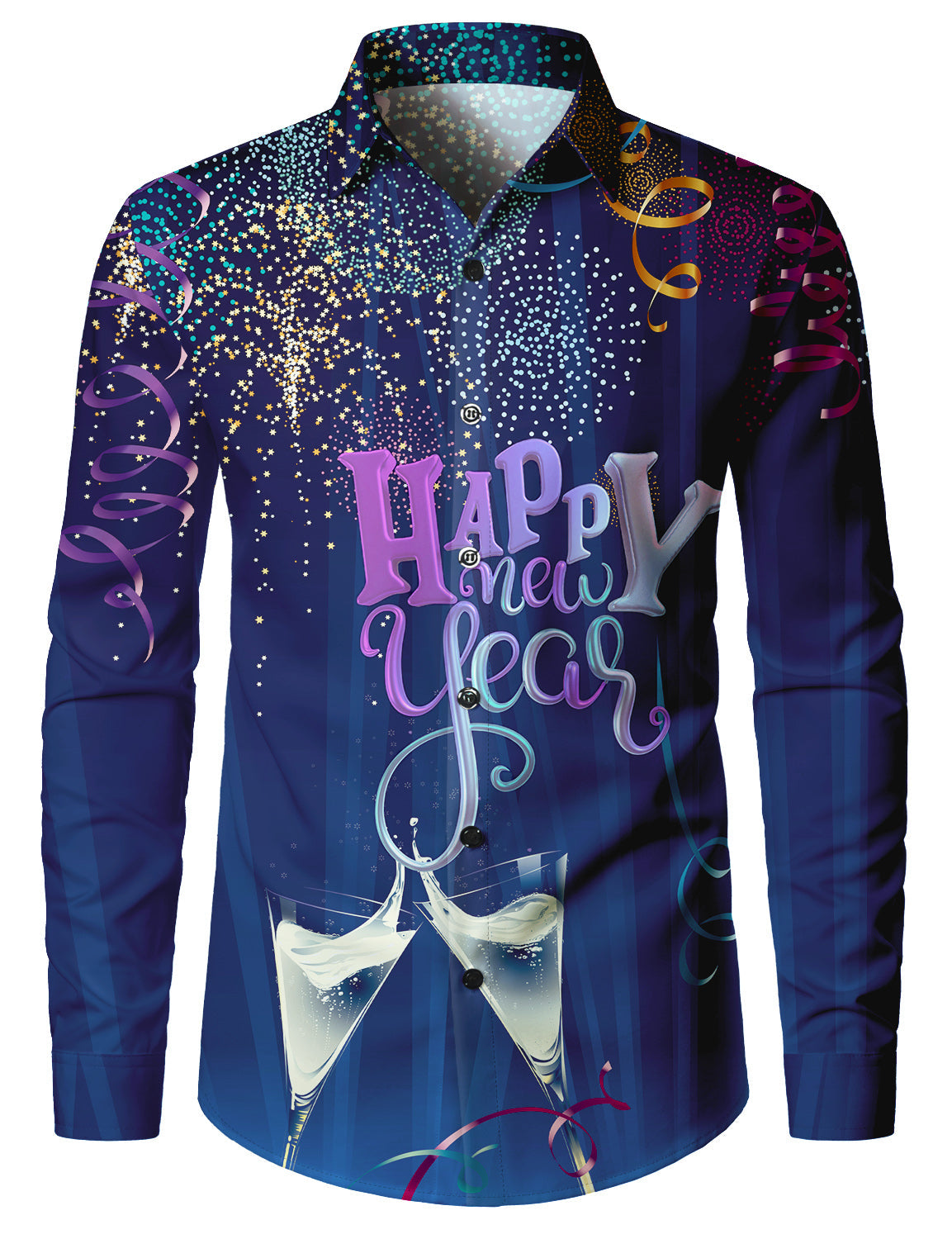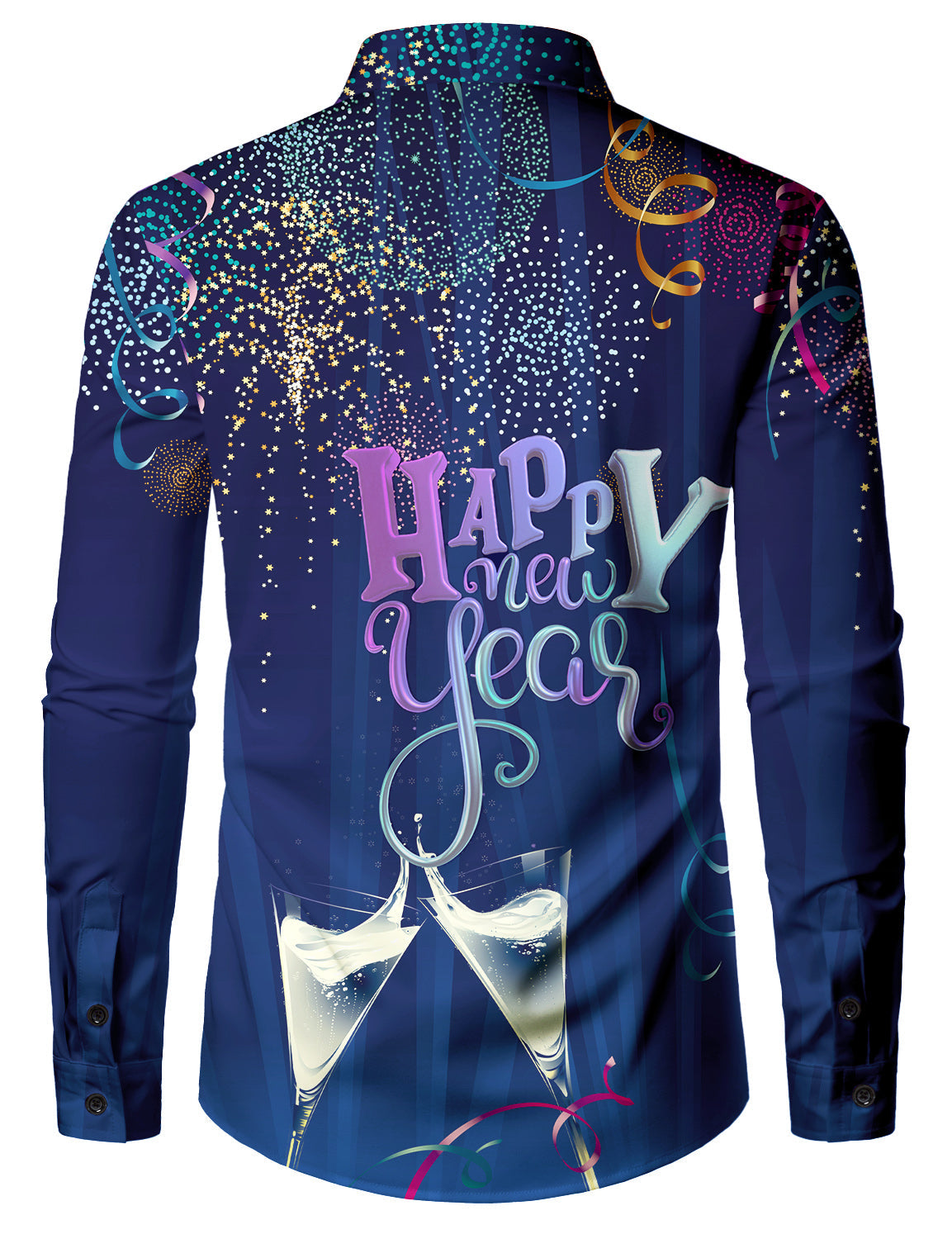 Chemise à manches longues pour homme avec imprimé champagne et joyeux Noël doré