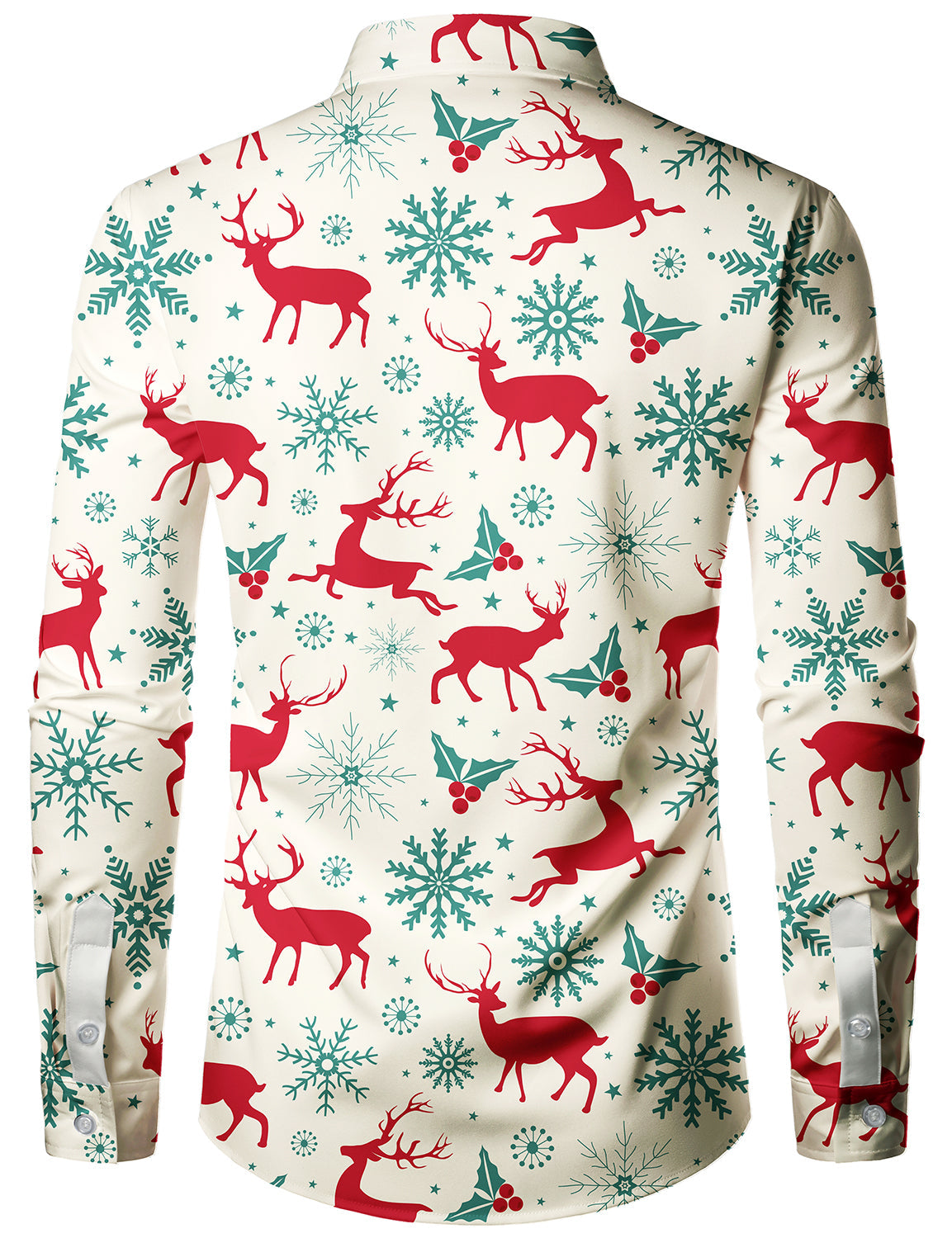 Chemise à manches longues boutonnée pour hommes, imprimé élan de noël, flocon de neige, vacances de noël