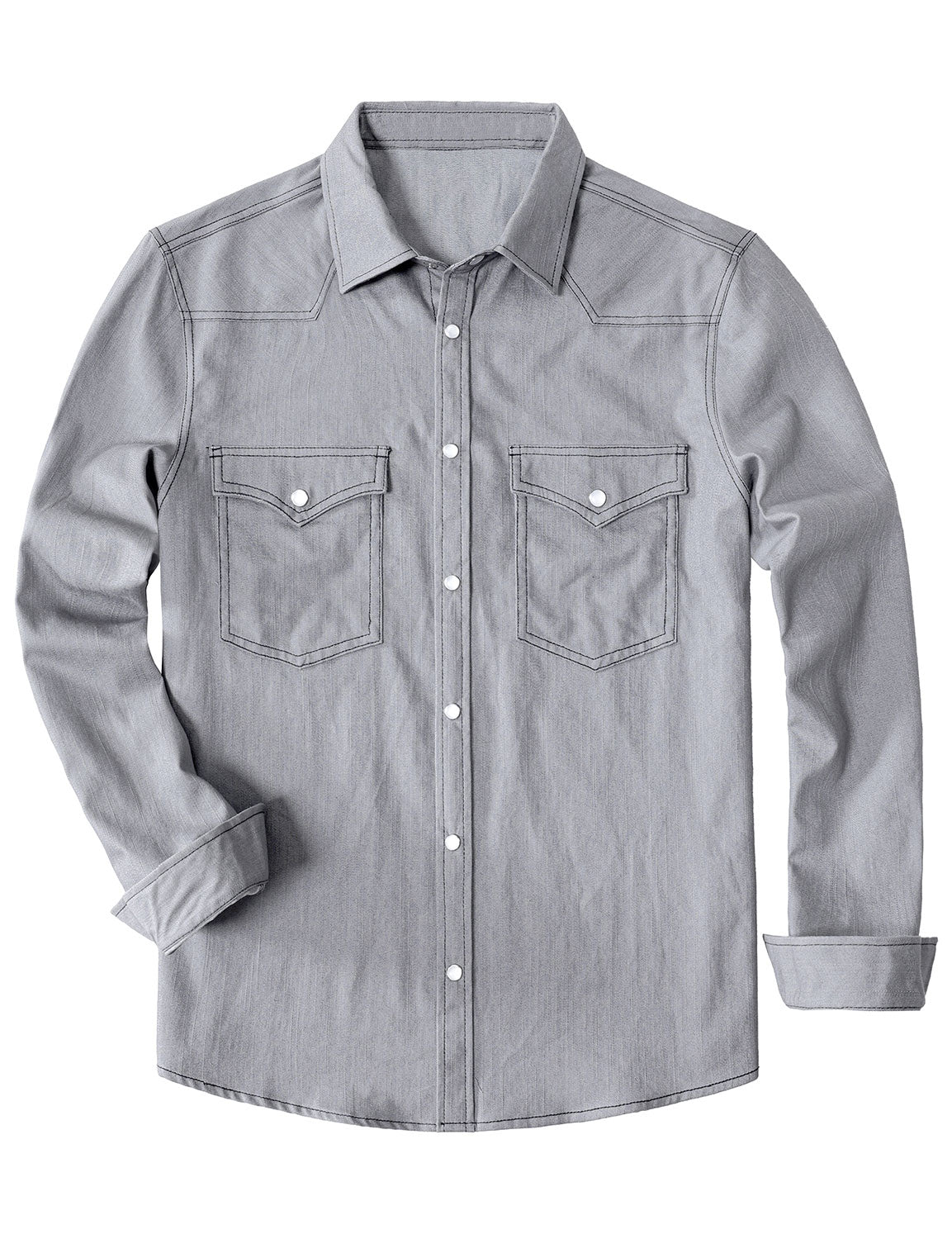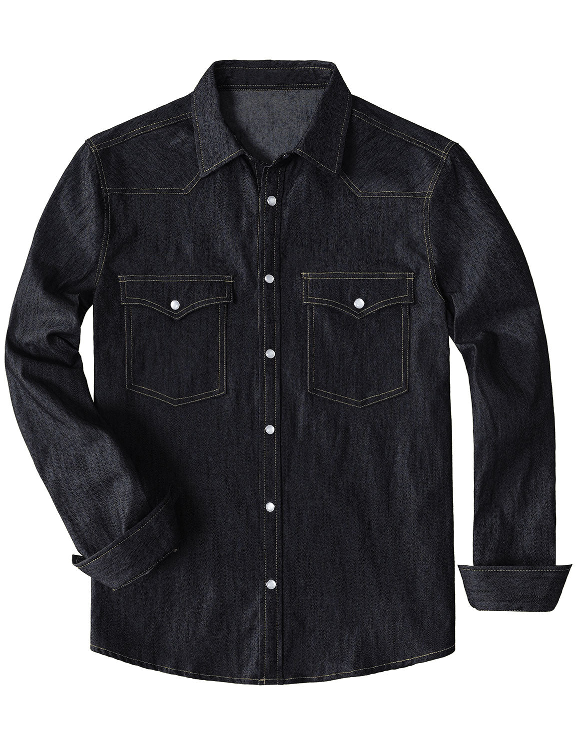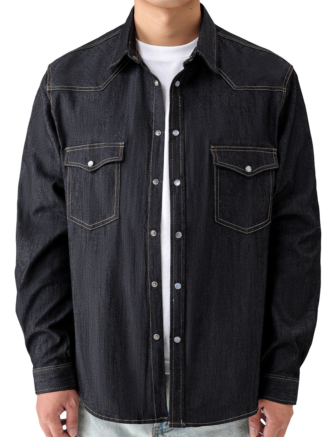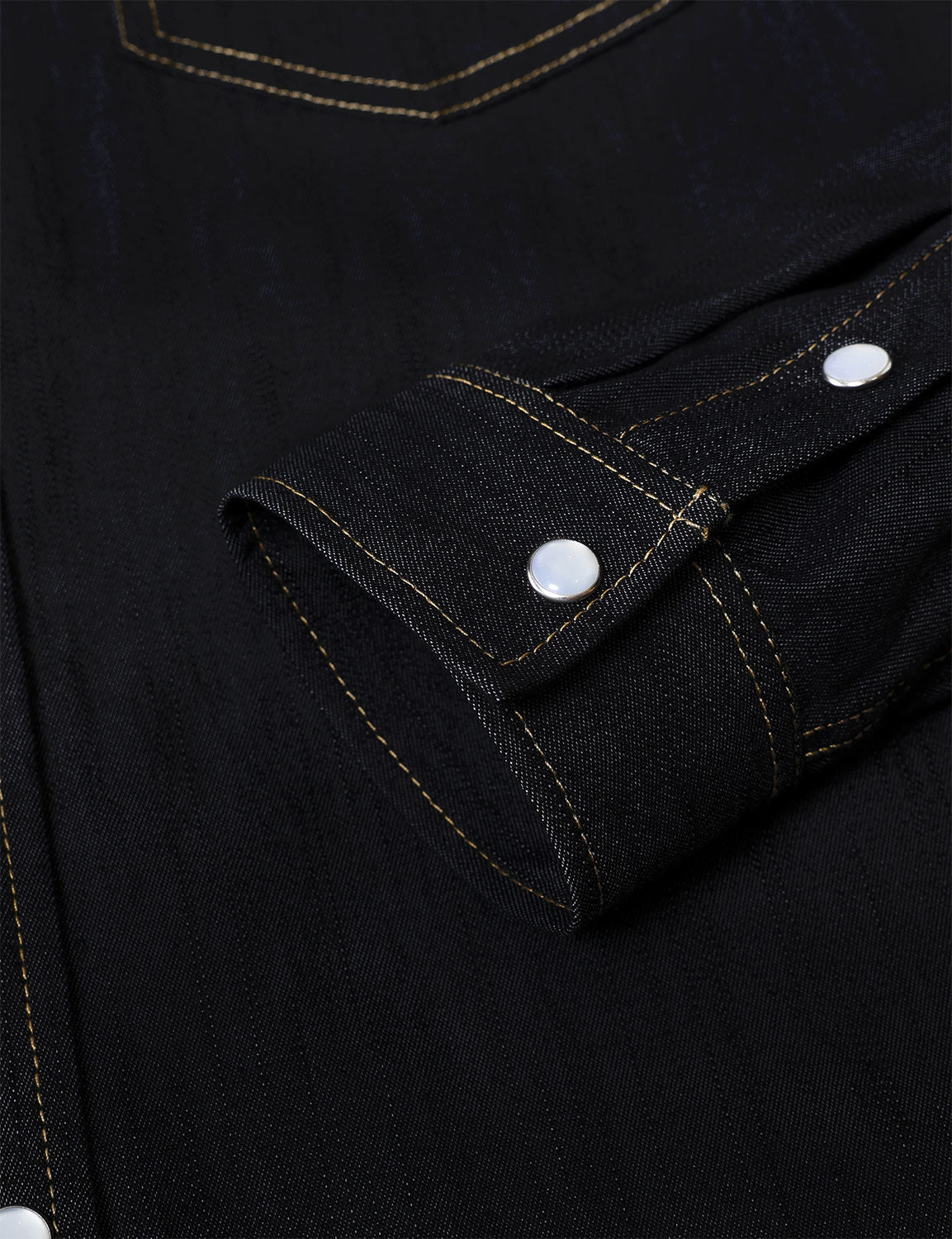 Chemise à manches longues en denim style cowboy pour homme avec boutons-pression nacrés