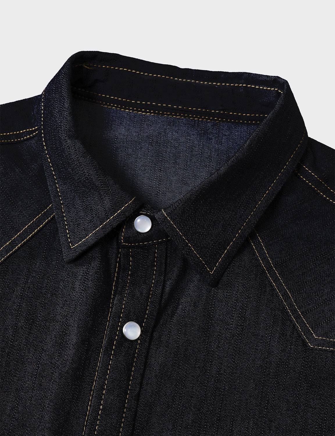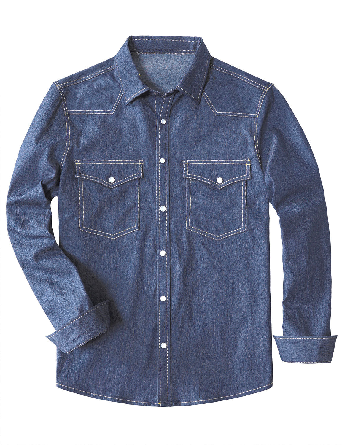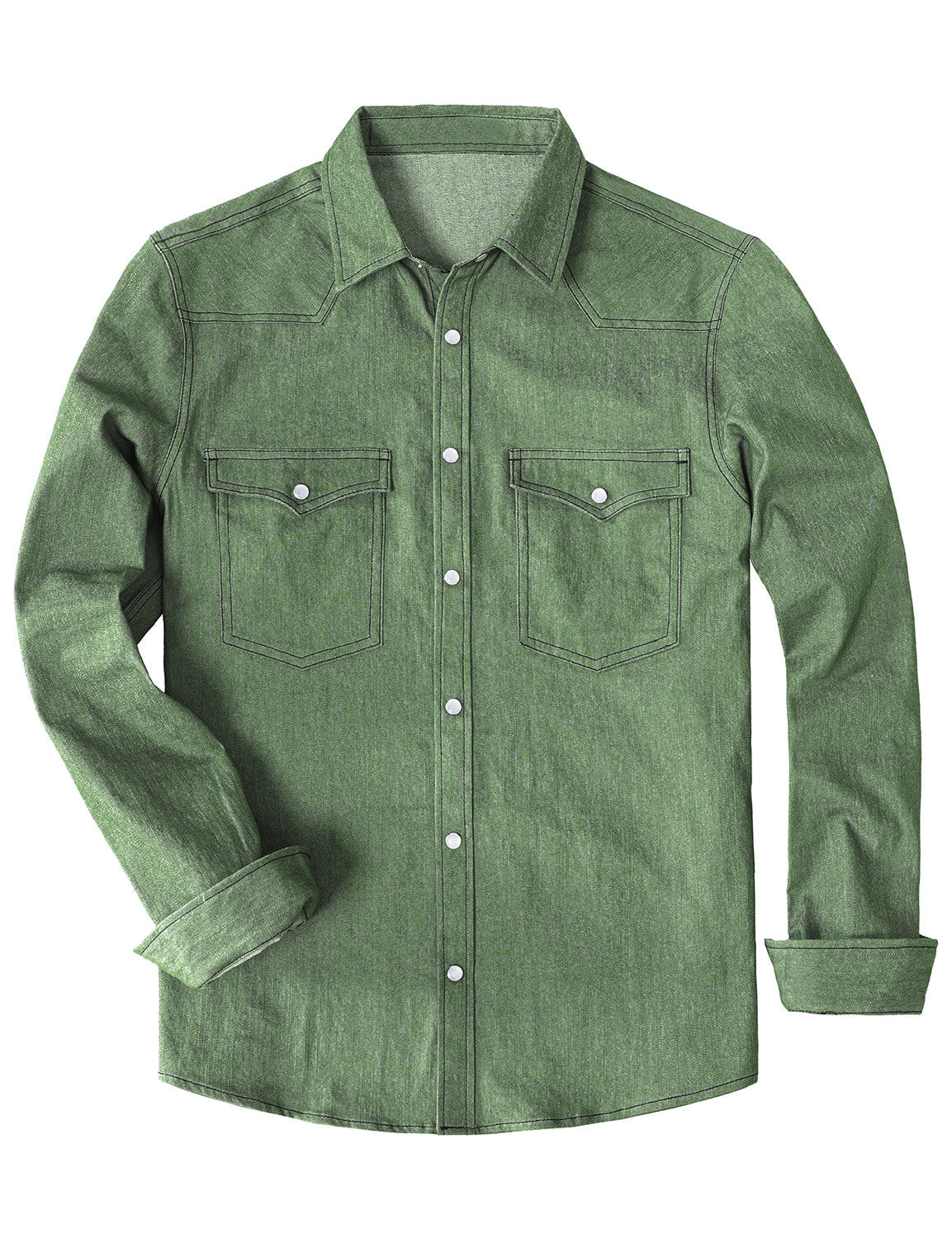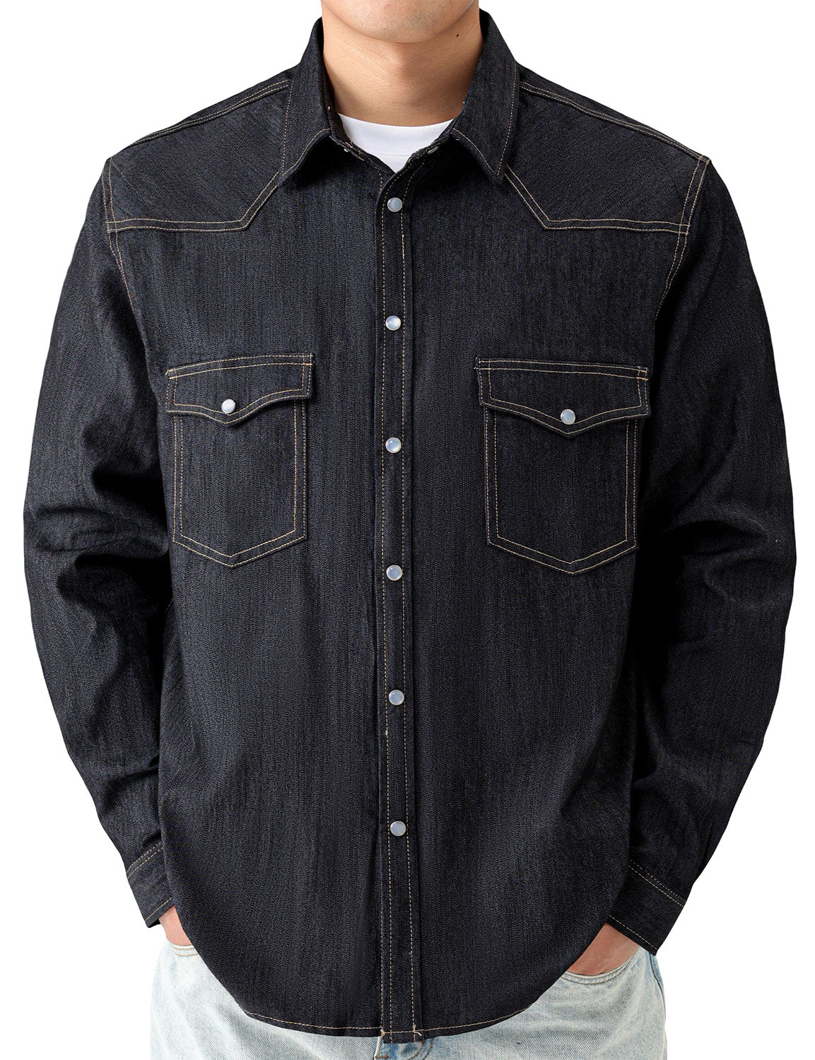Chemise à manches longues en denim style cowboy pour homme avec boutons-pression nacrés