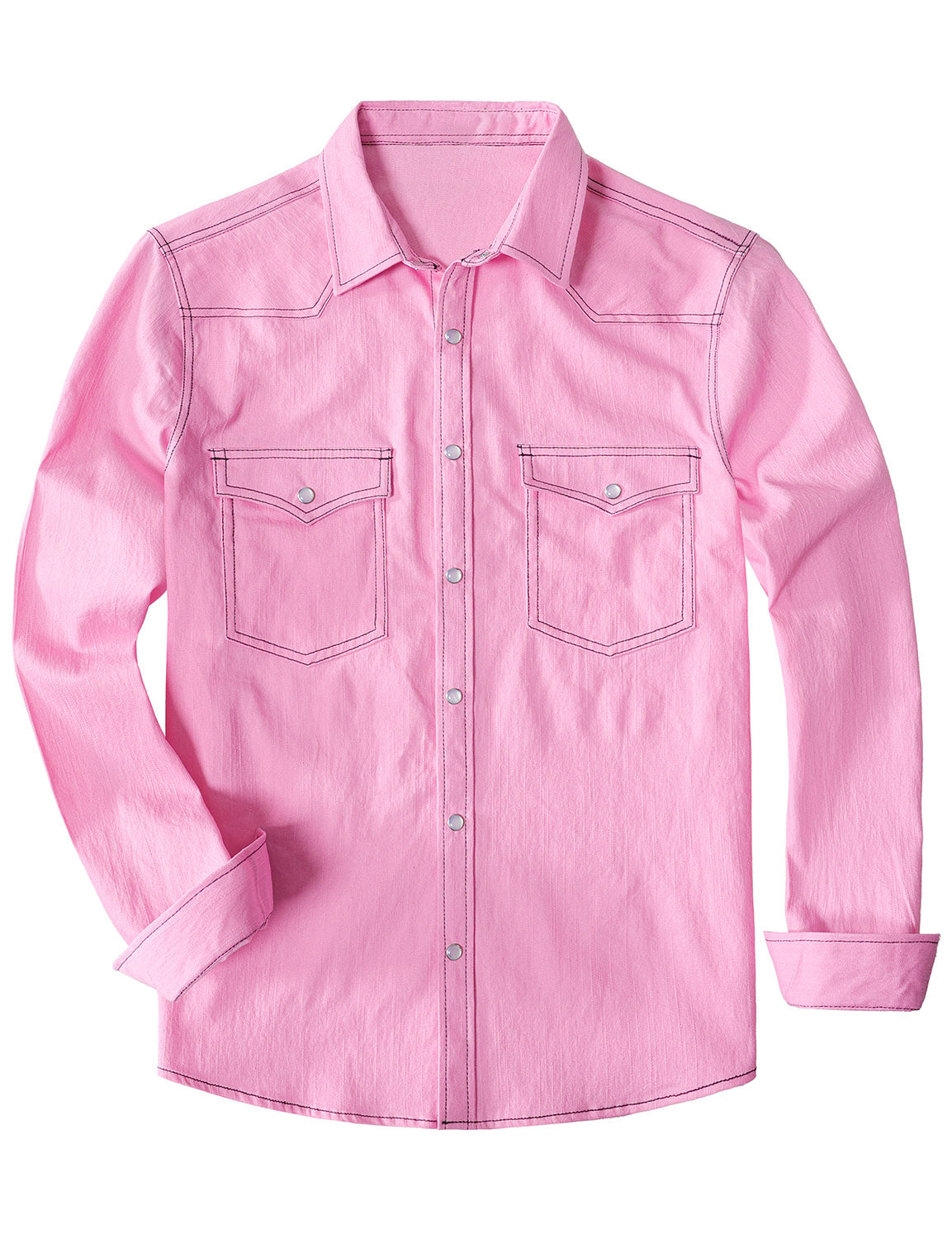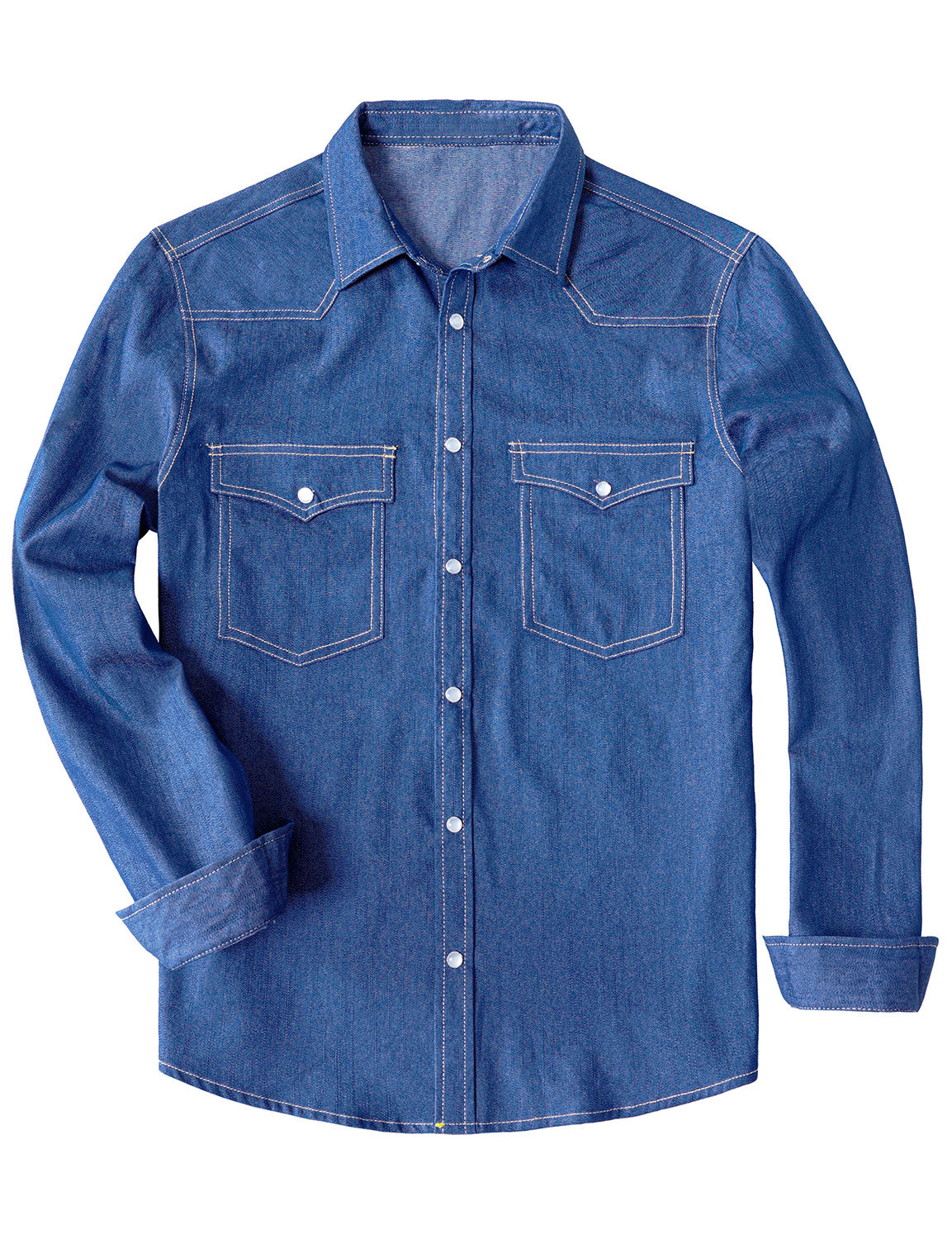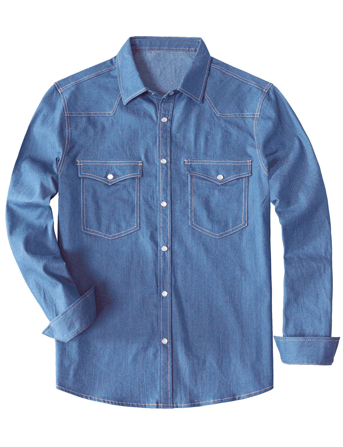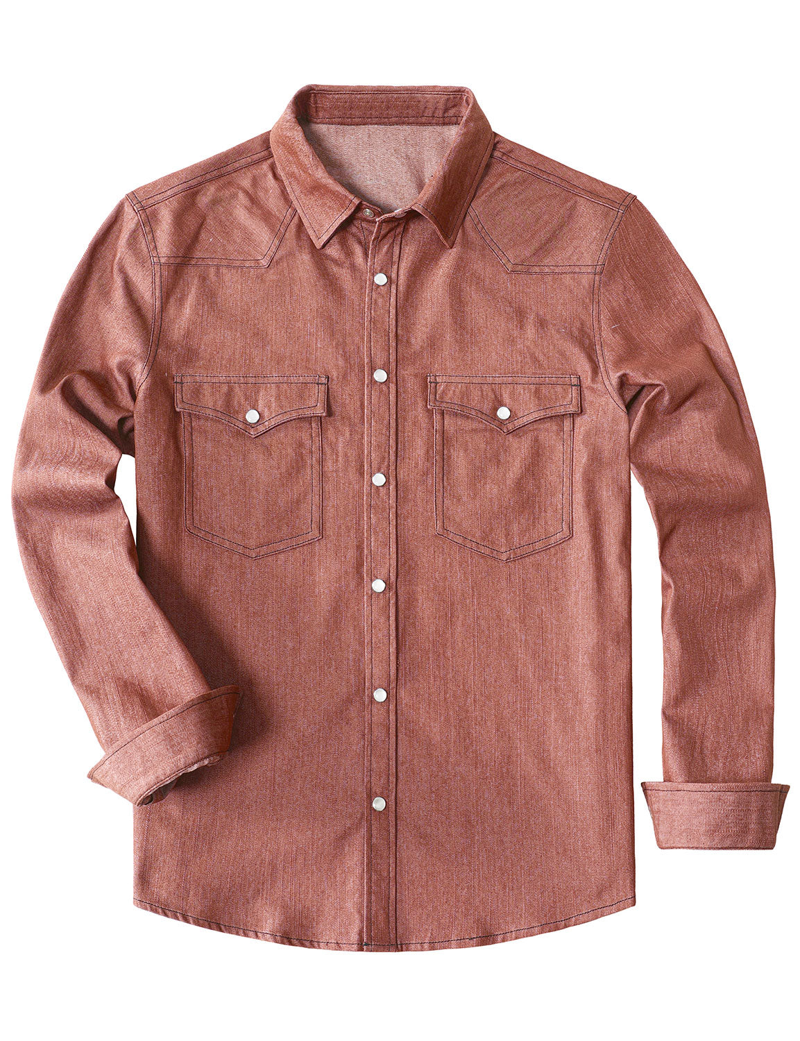 Chemise à manches longues en denim style cowboy pour homme avec boutons-pression nacrés