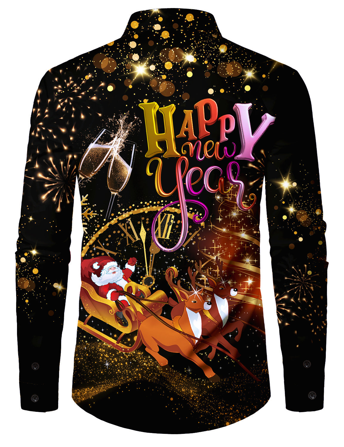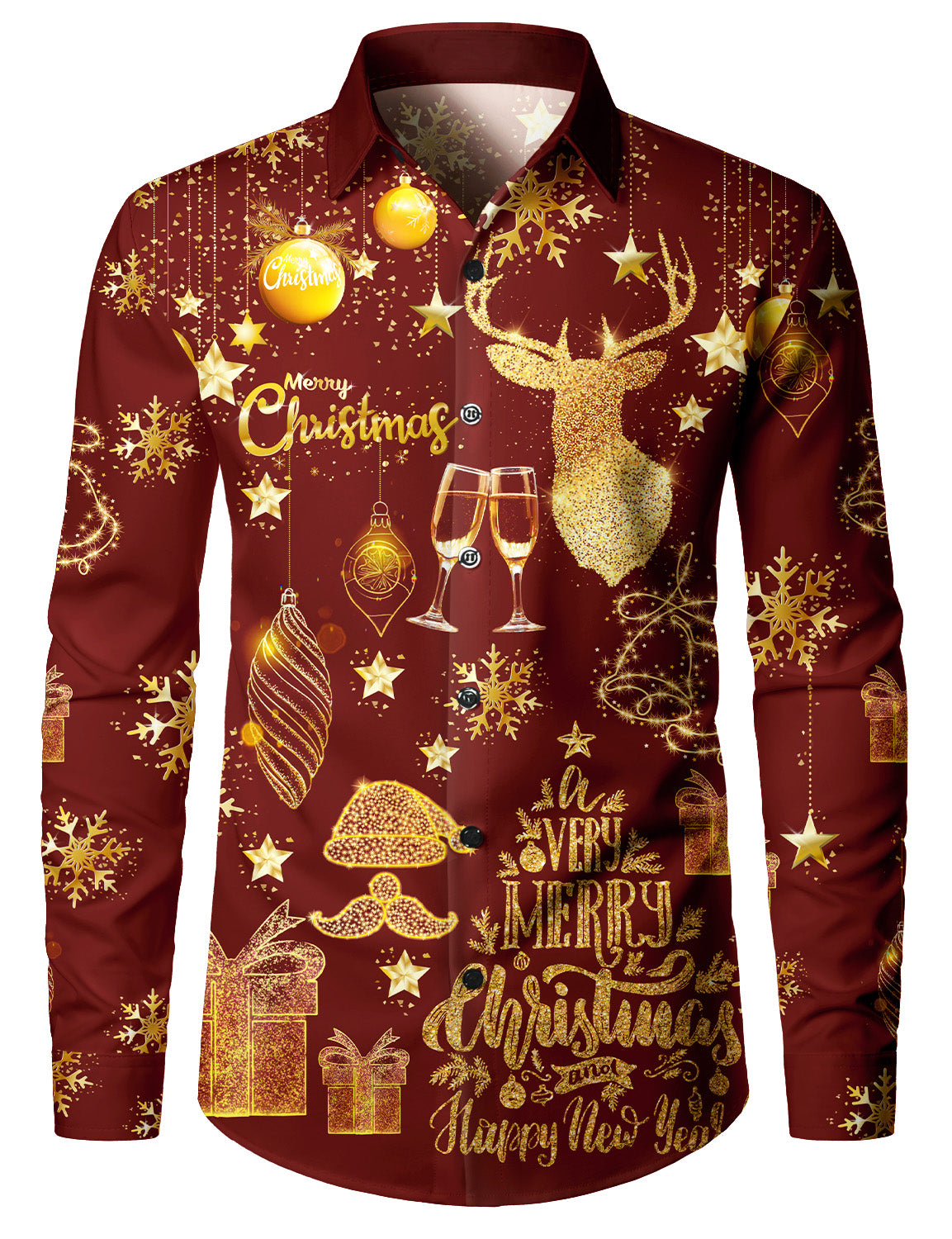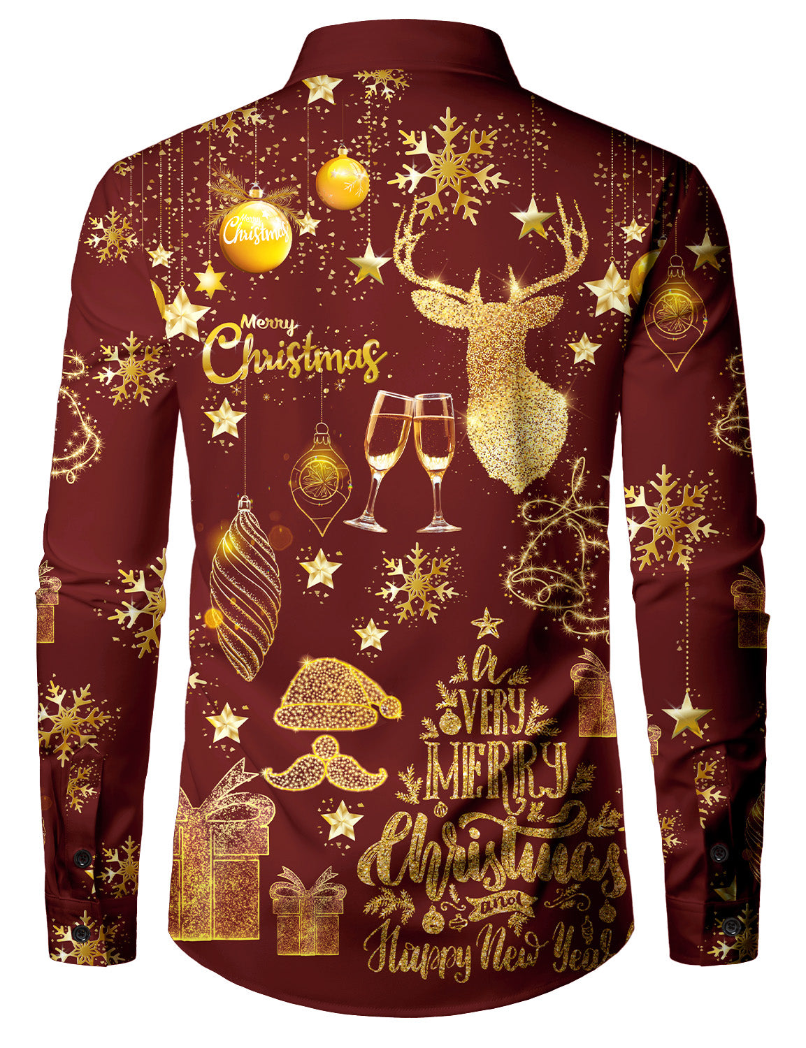 Chemise à manches longues pour homme avec imprimé champagne et joyeux Noël doré