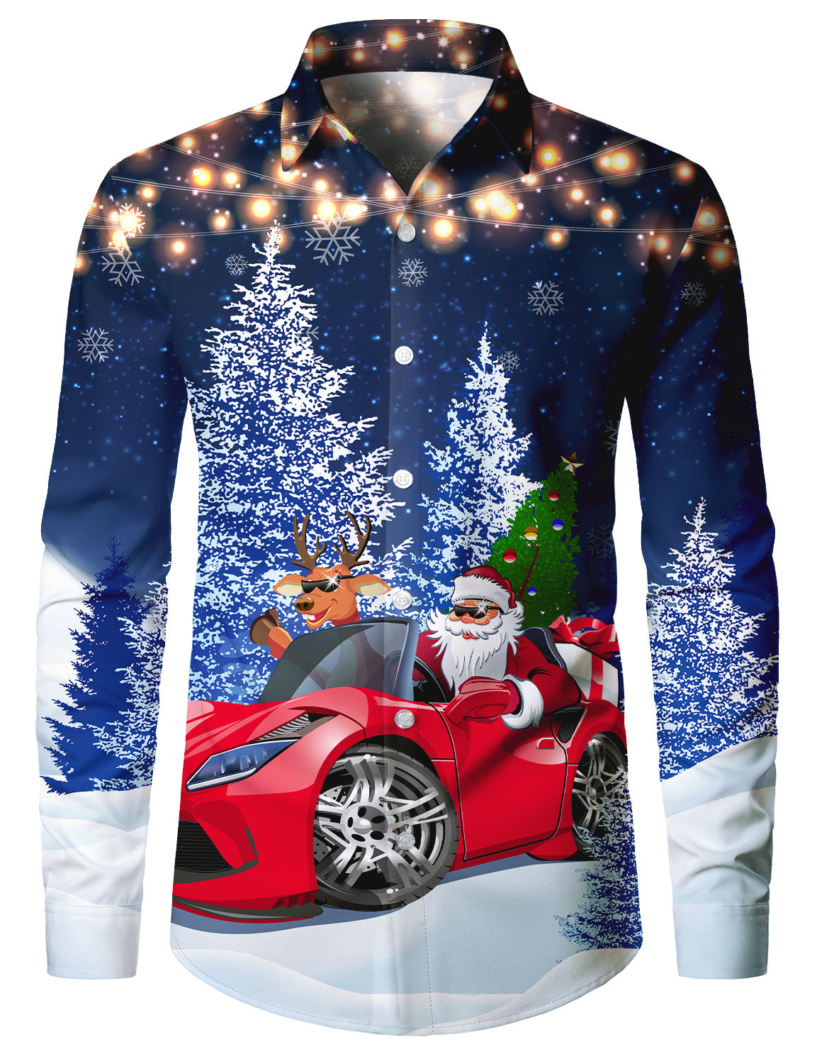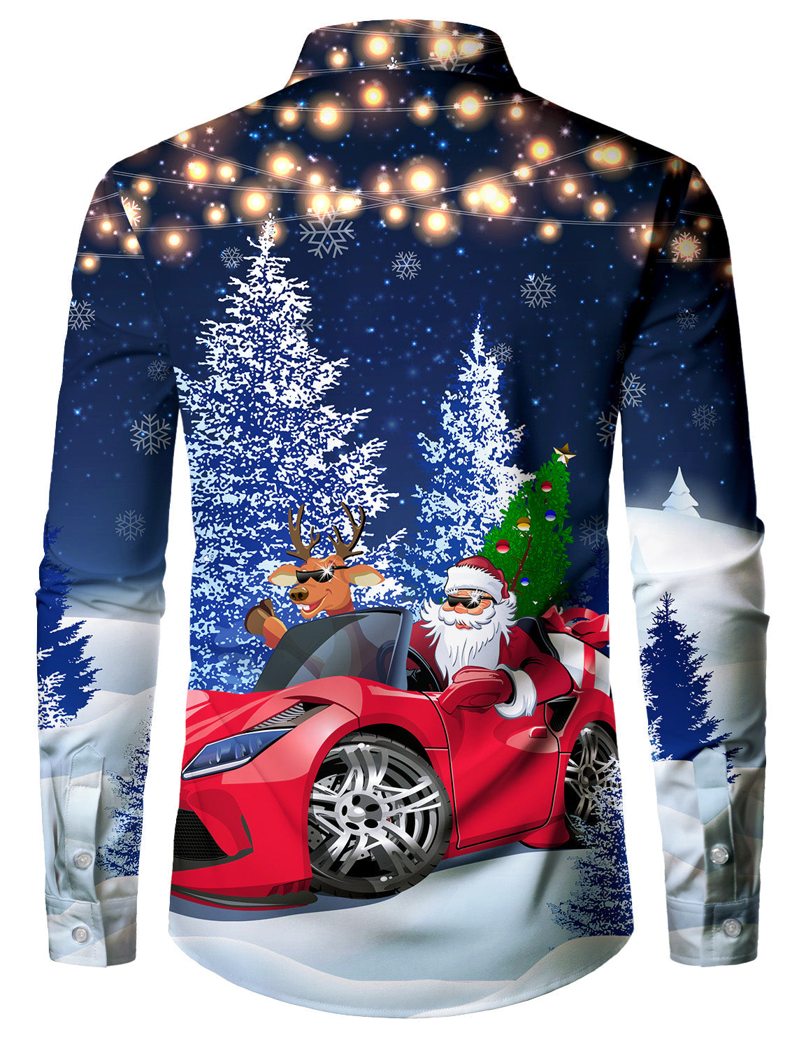 Chemise de Noël Homme Père Noël Voiture de Sport Cool Manches Longues