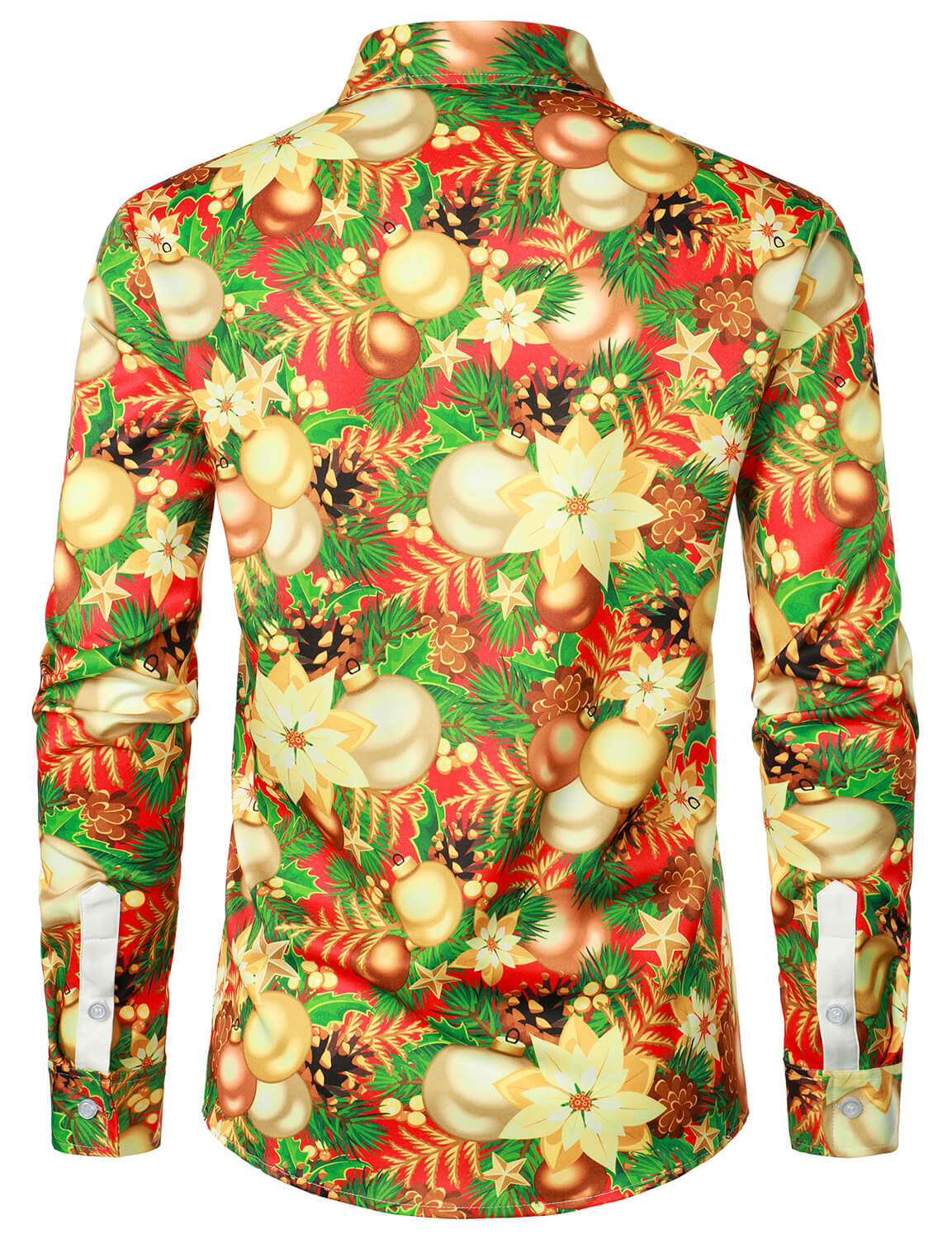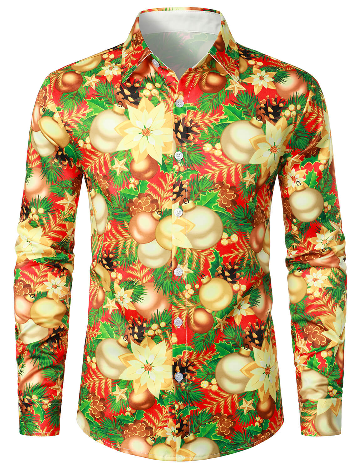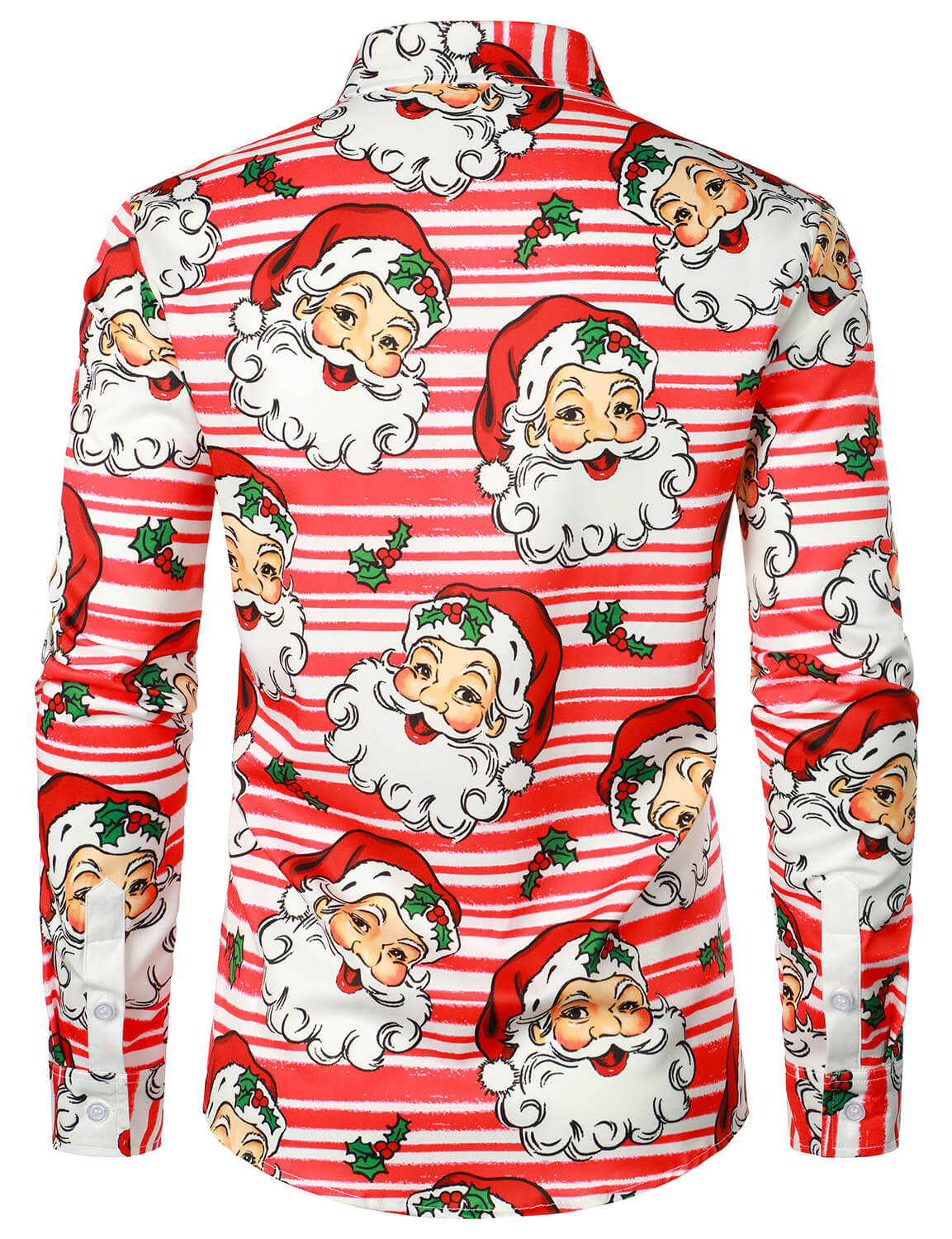 Chemise Homme Noël Drôle Imprimé Vintage Manches Longues