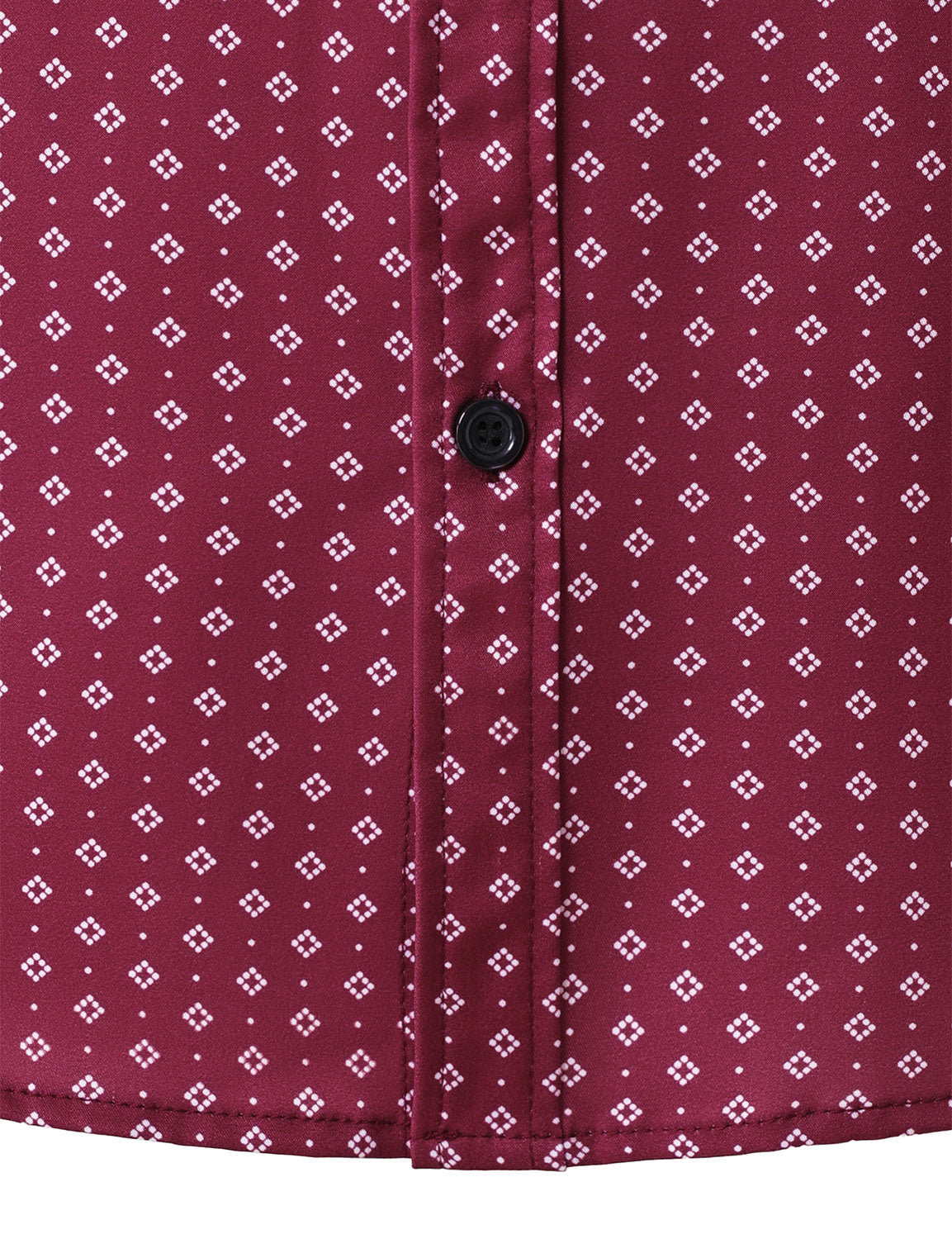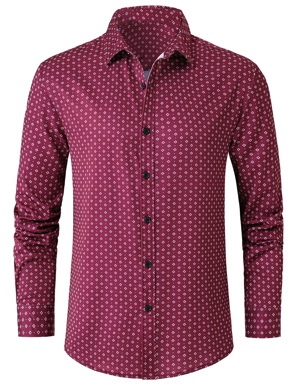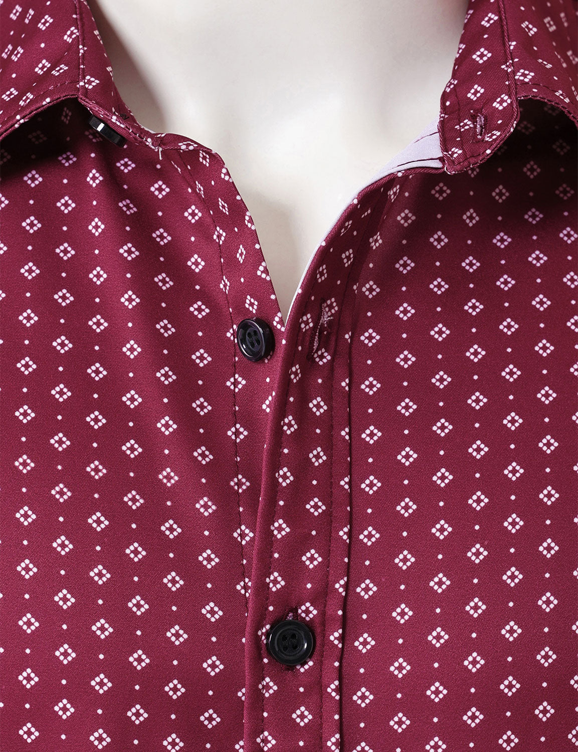 Chemise à manches longues rouge à imprimé géométrique rétro pour homme