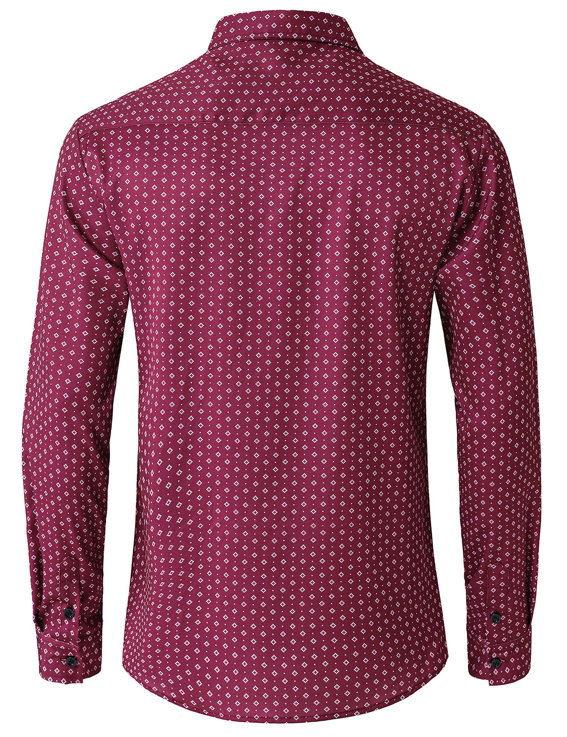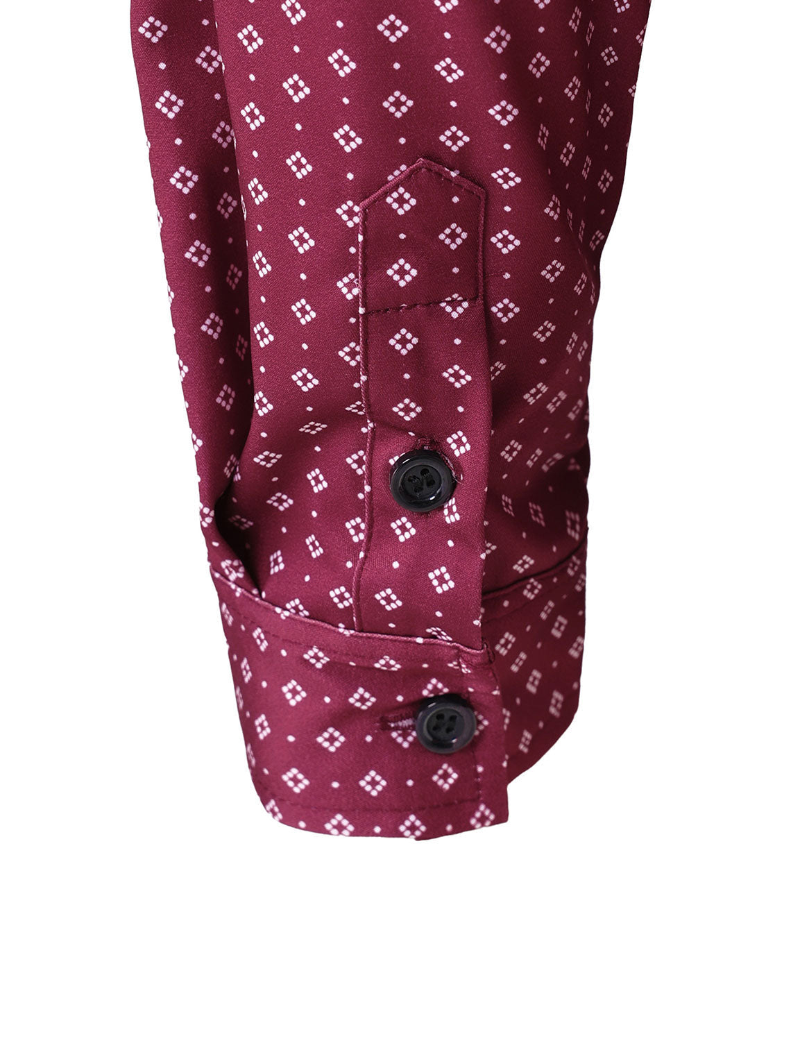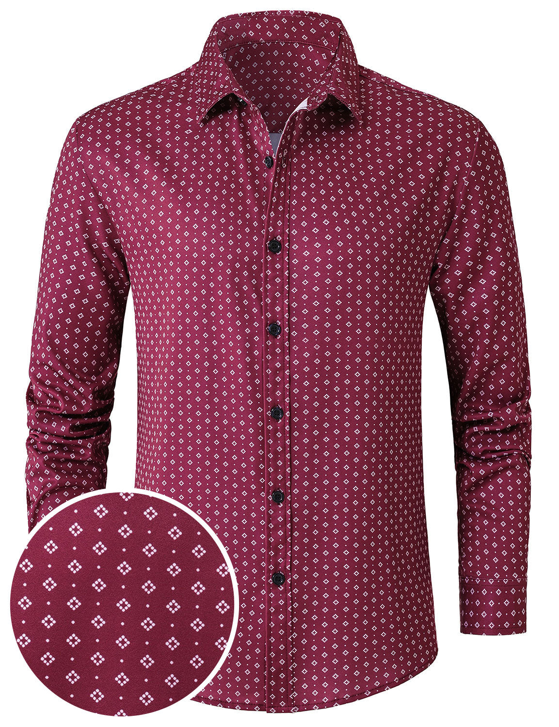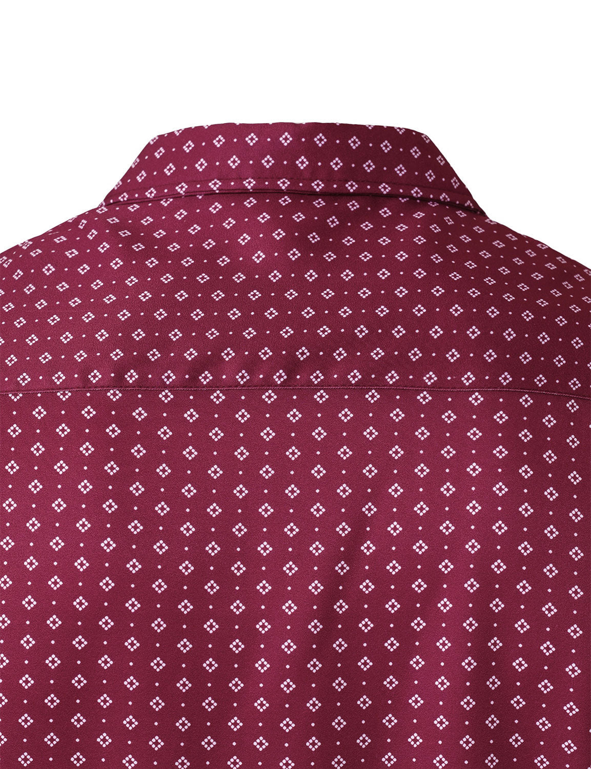 Chemise à manches longues rouge à imprimé géométrique rétro pour homme