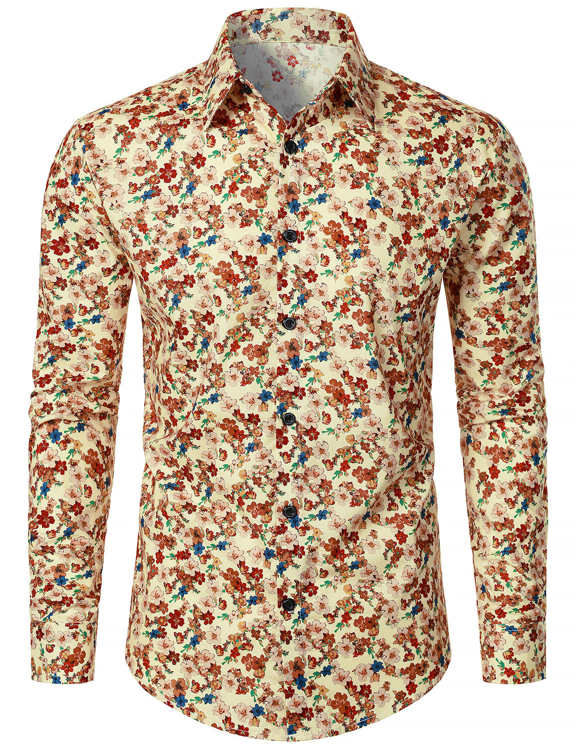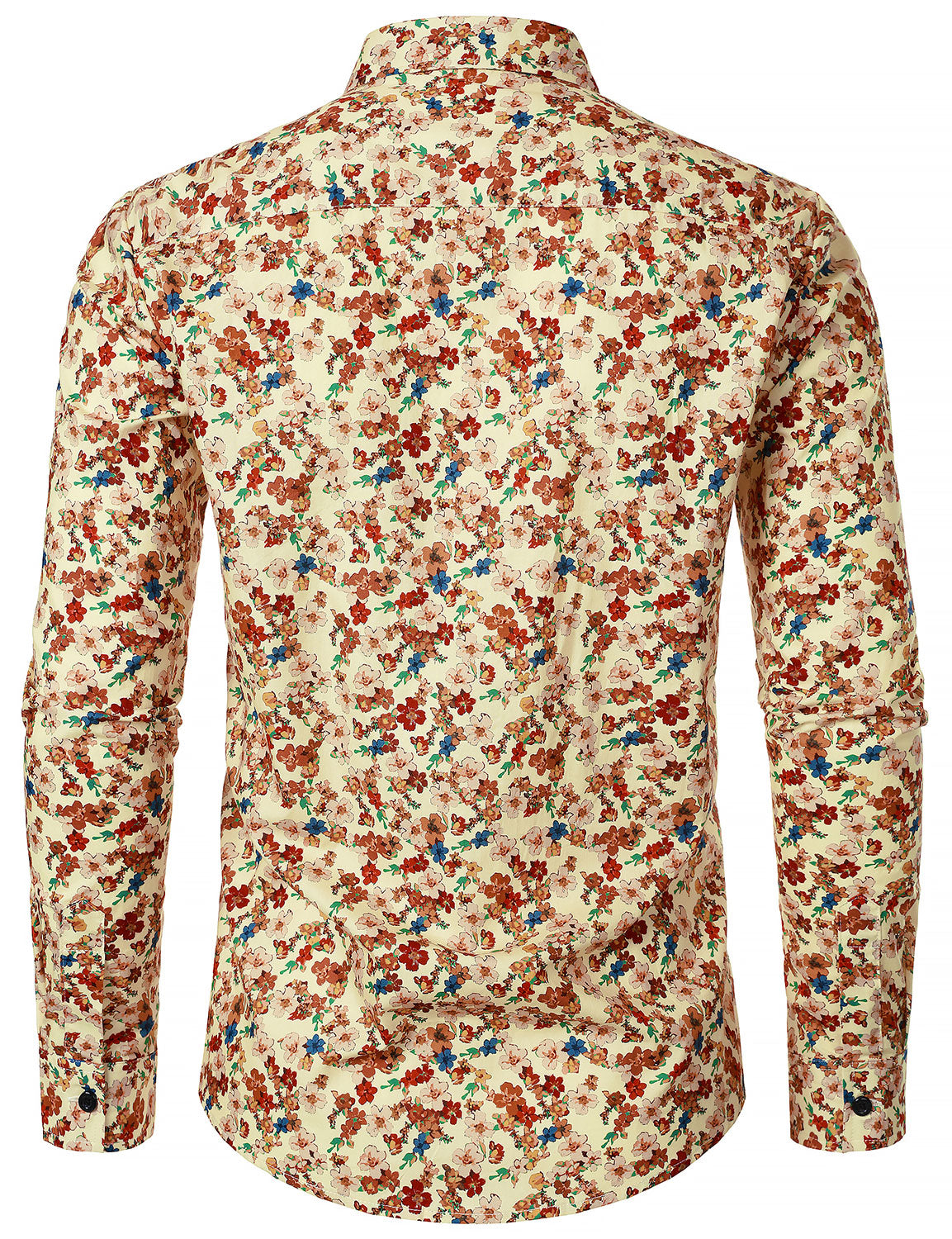 Chemise à manches longues en coton respirant à imprimé floral pour homme des années 70