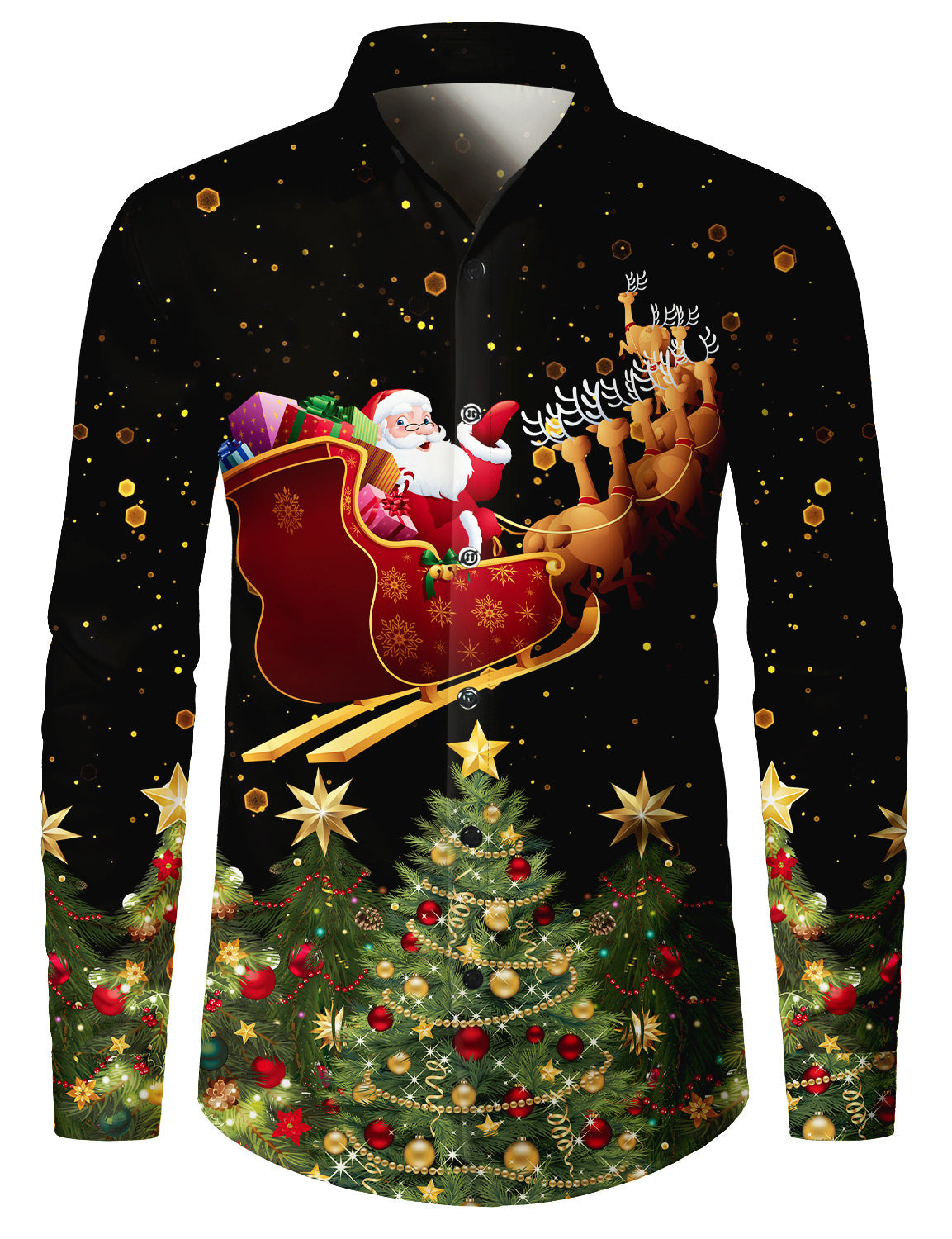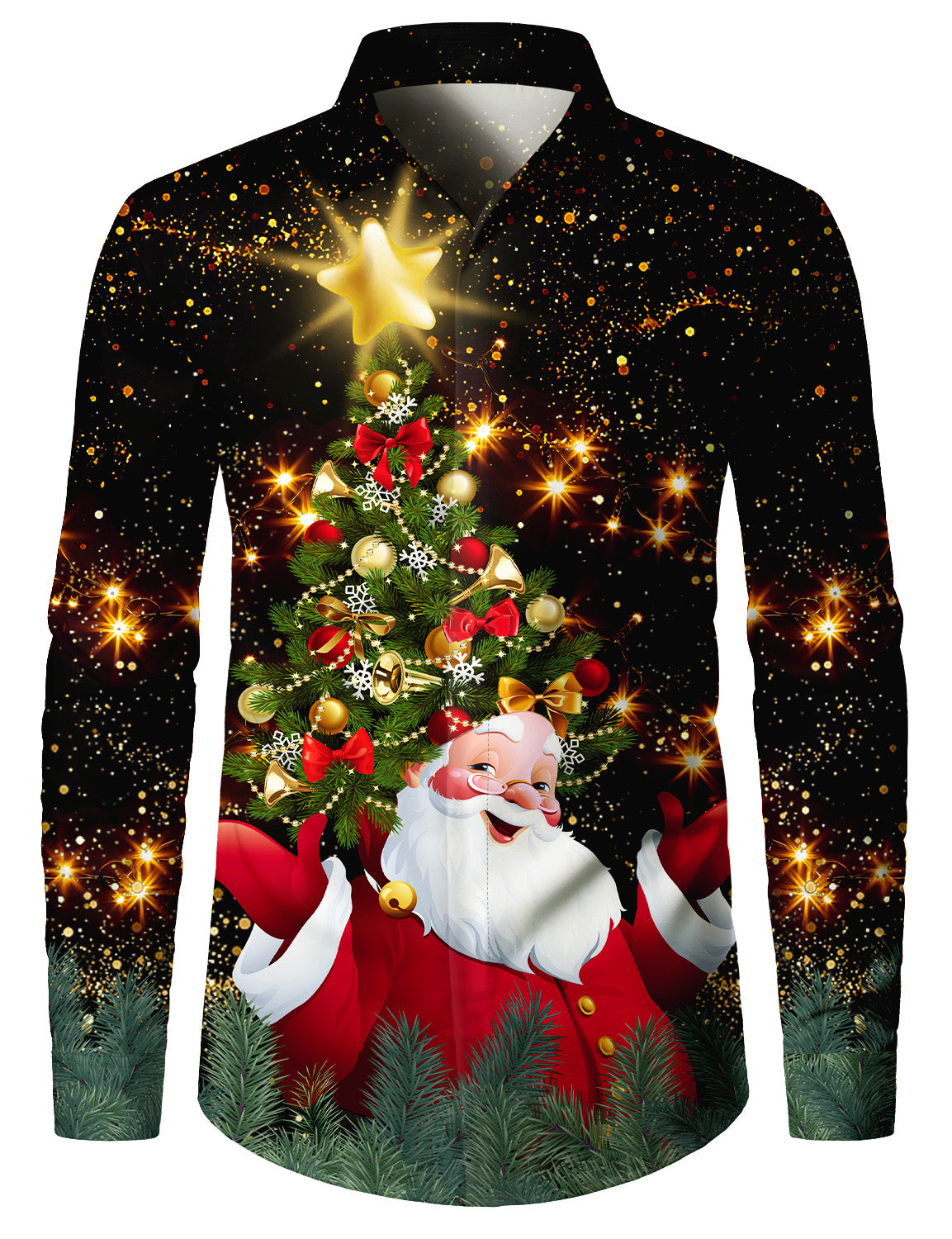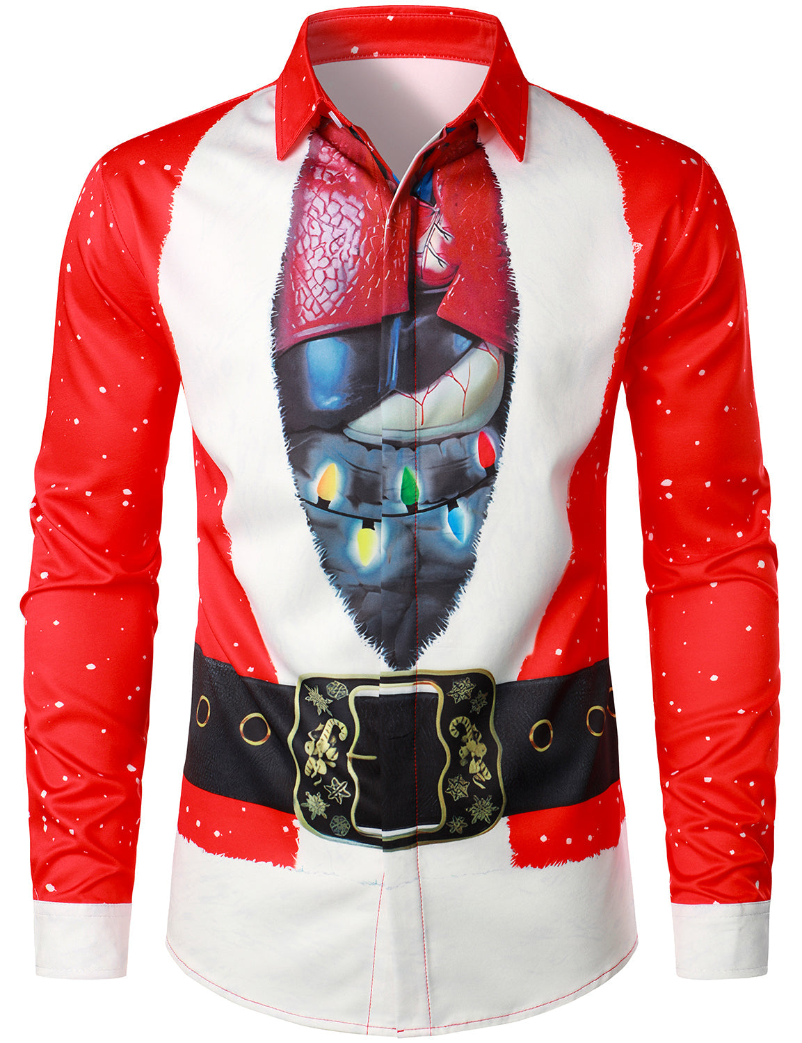 Chemise Homme Noël Drôle Imprimé Thème Tenue Manches Longues