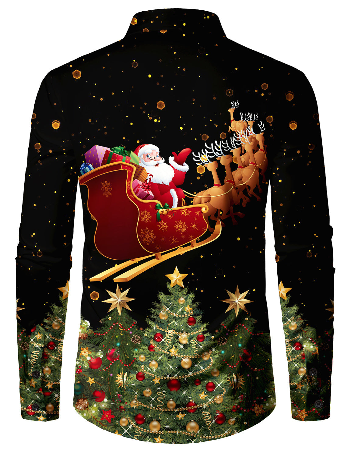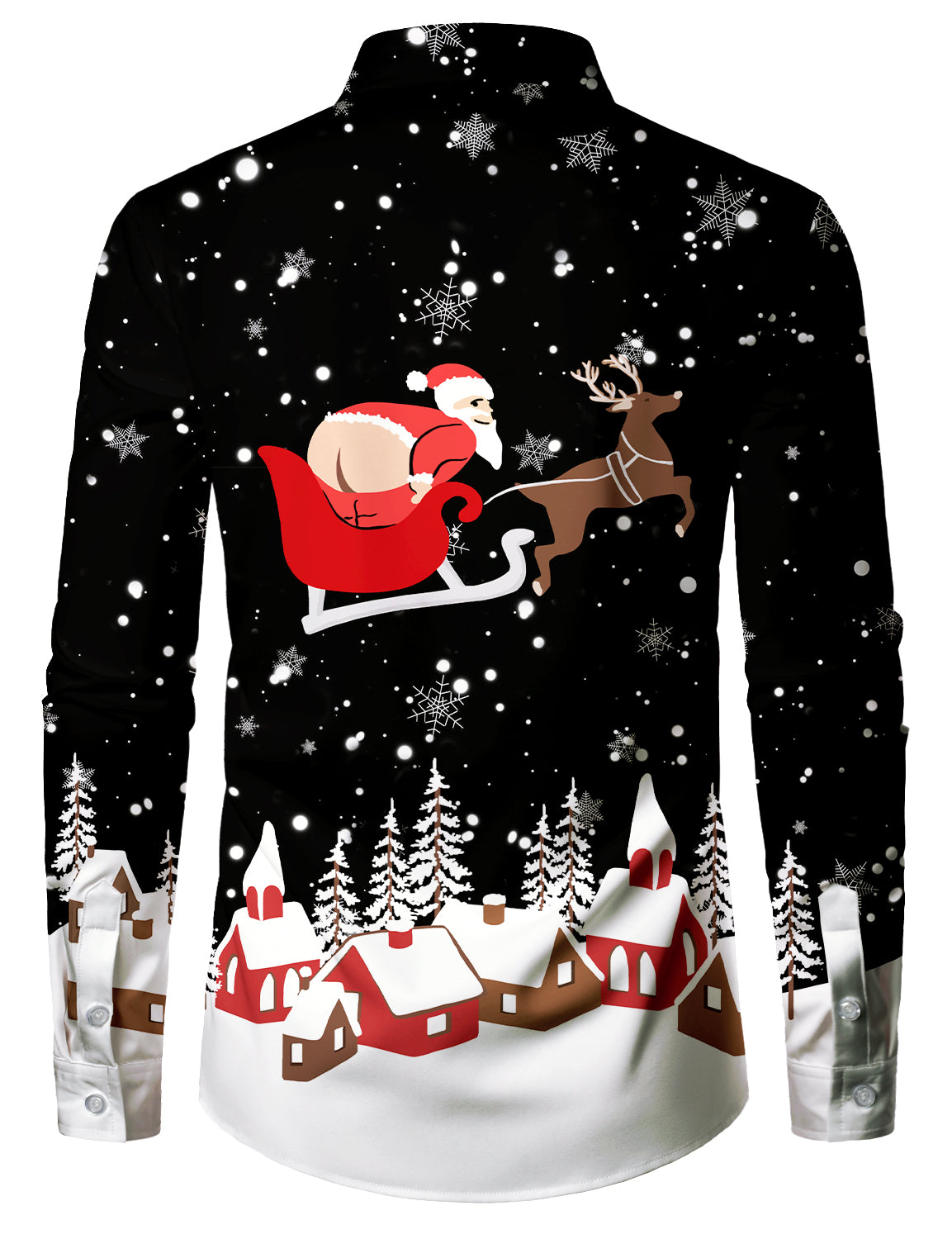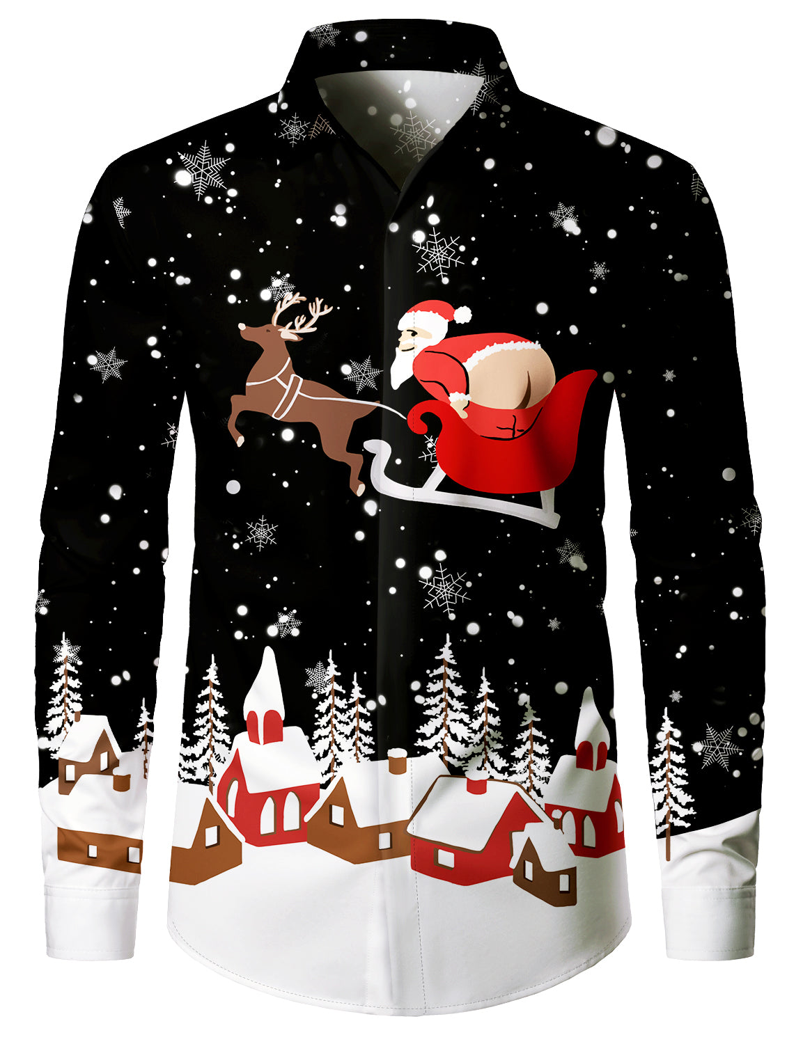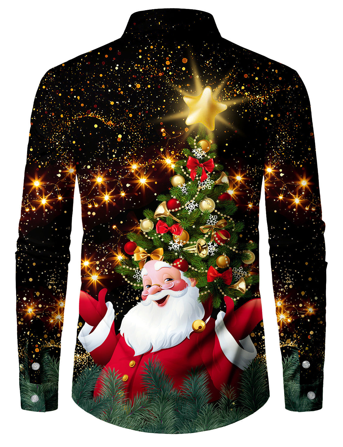 Chemise Homme Noël Drôle Imprimé Thème Tenue Manches Longues