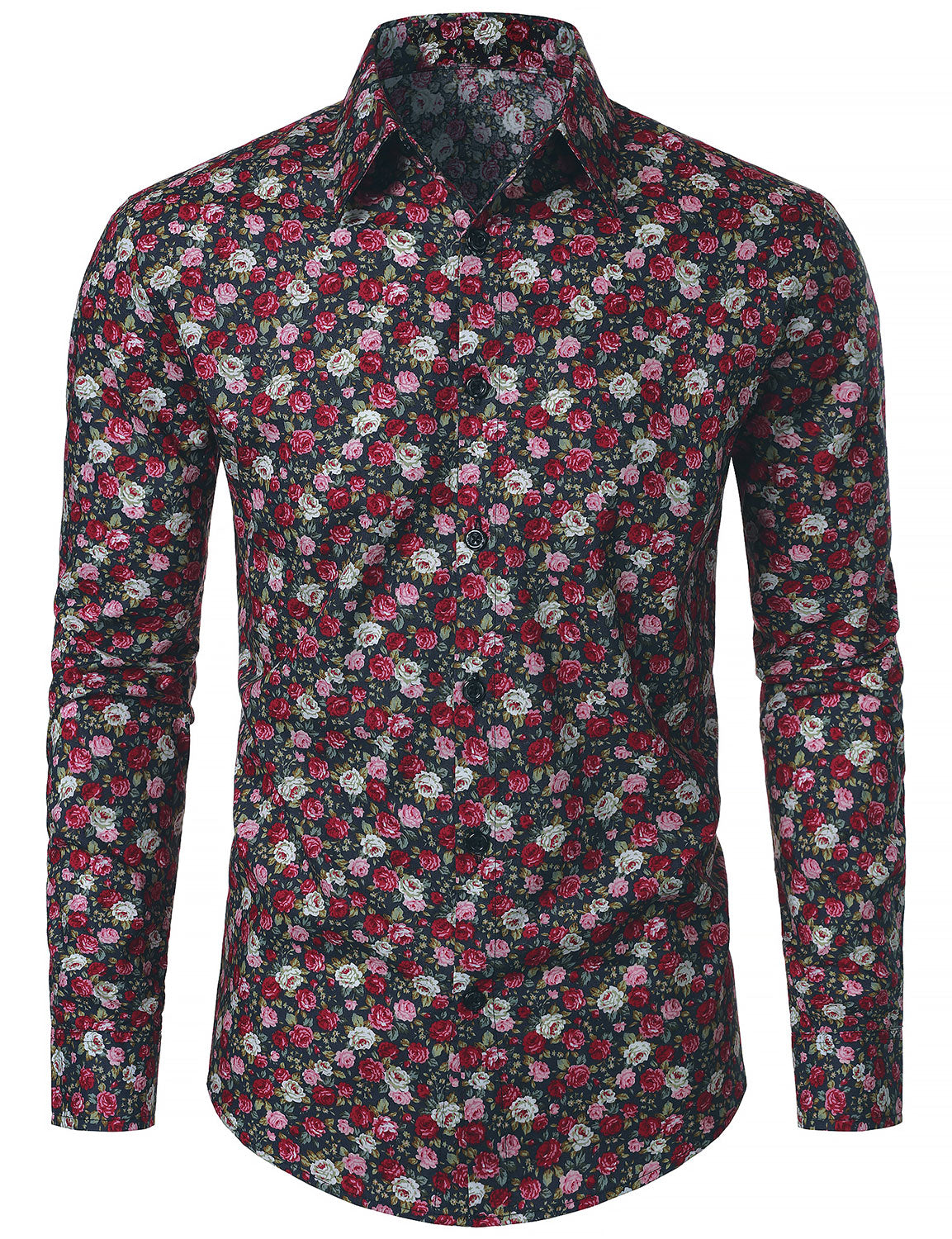 Chemise à manches longues en coton respirant à imprimé floral des années 70 pour homme