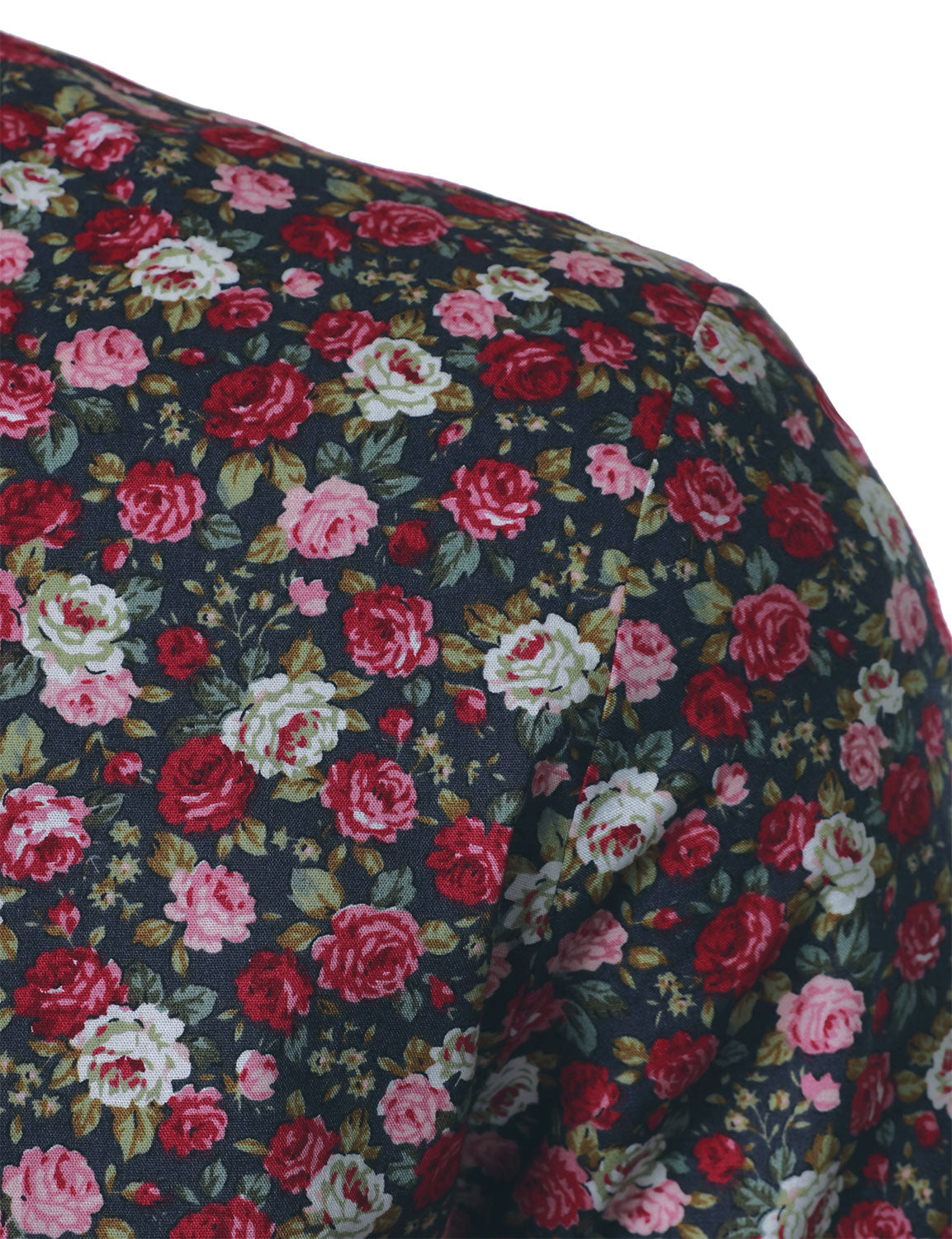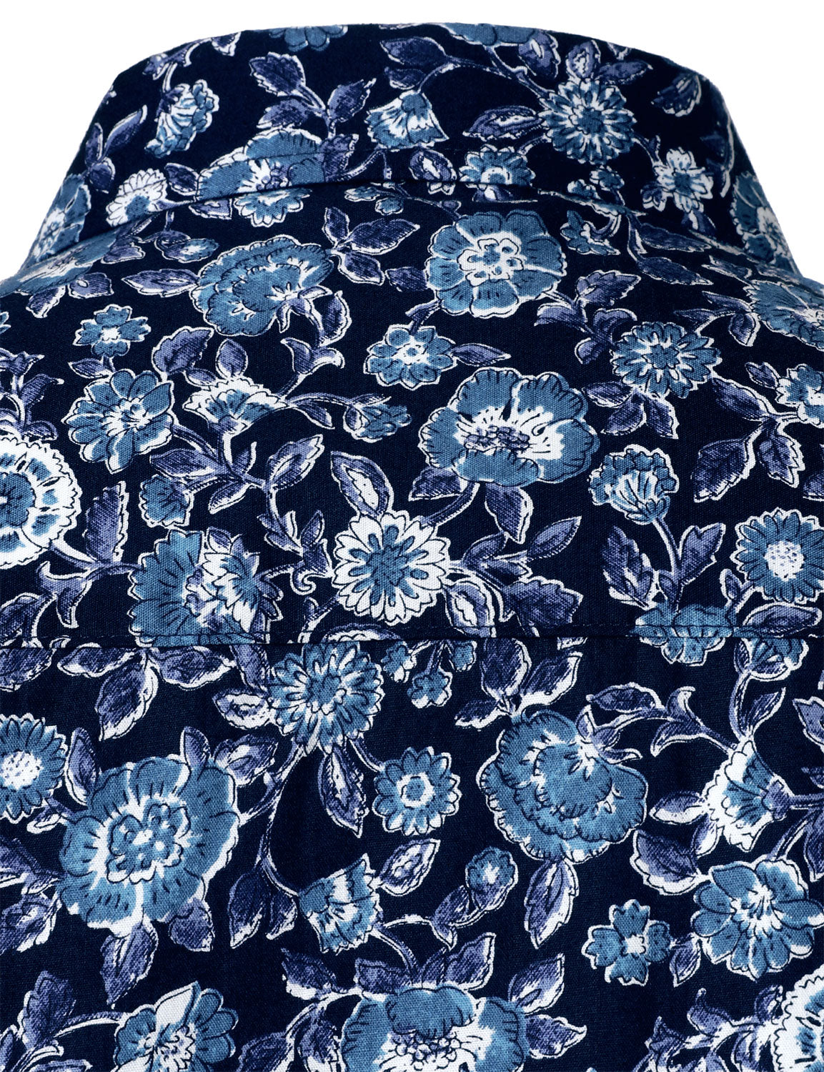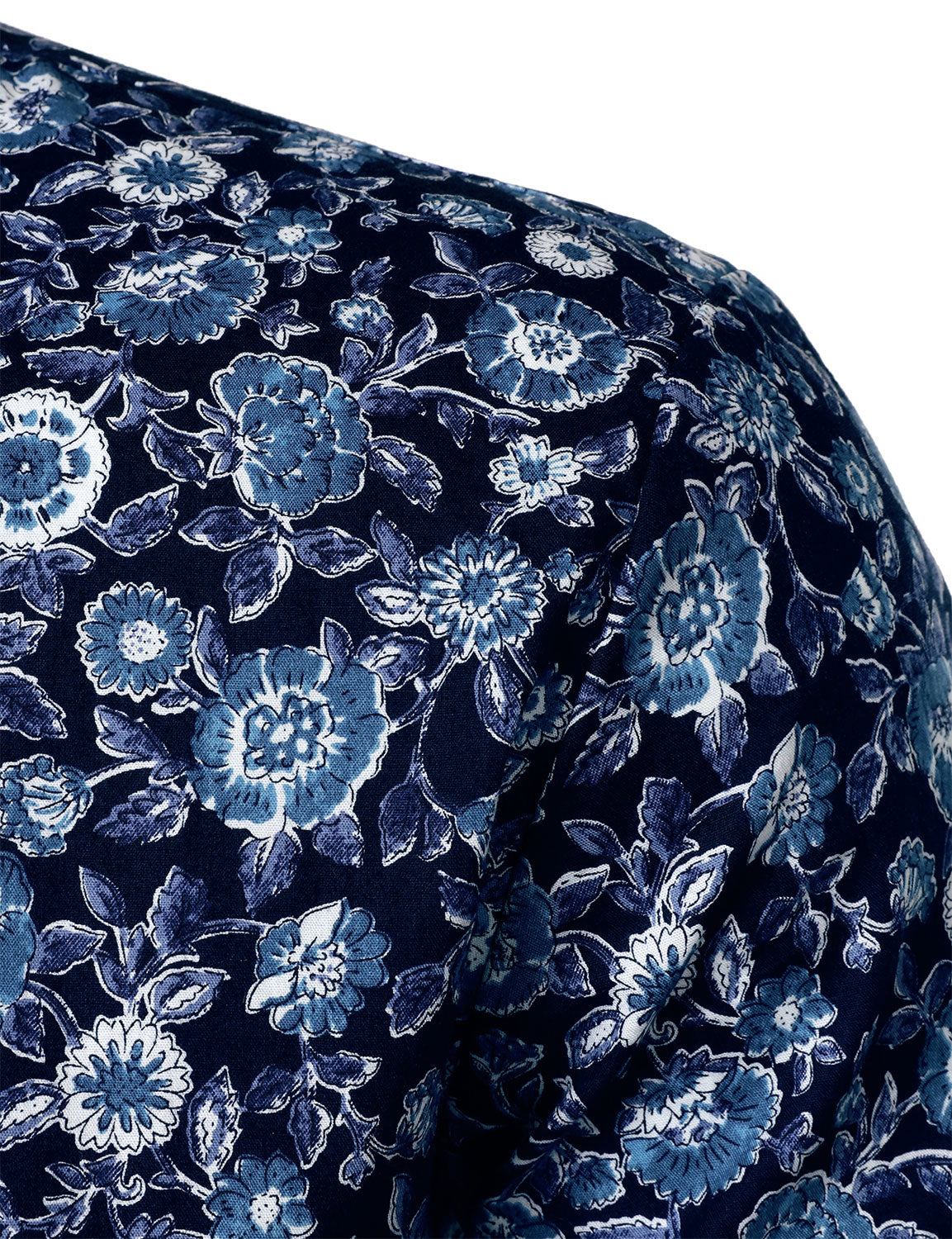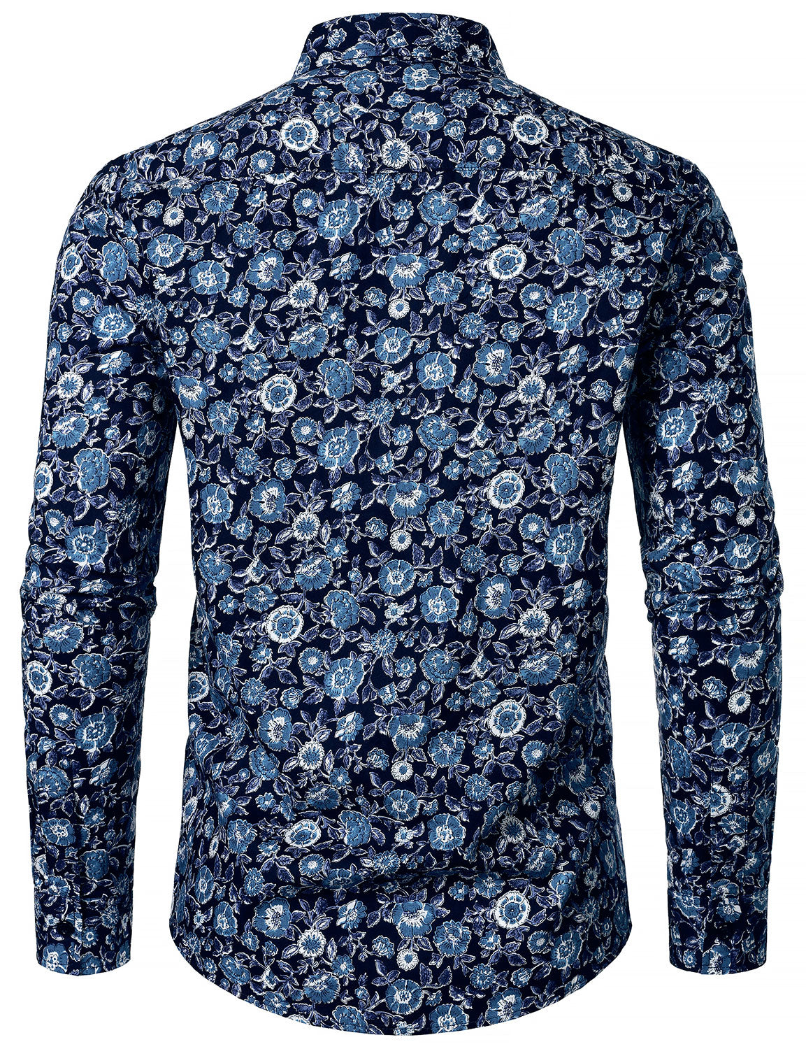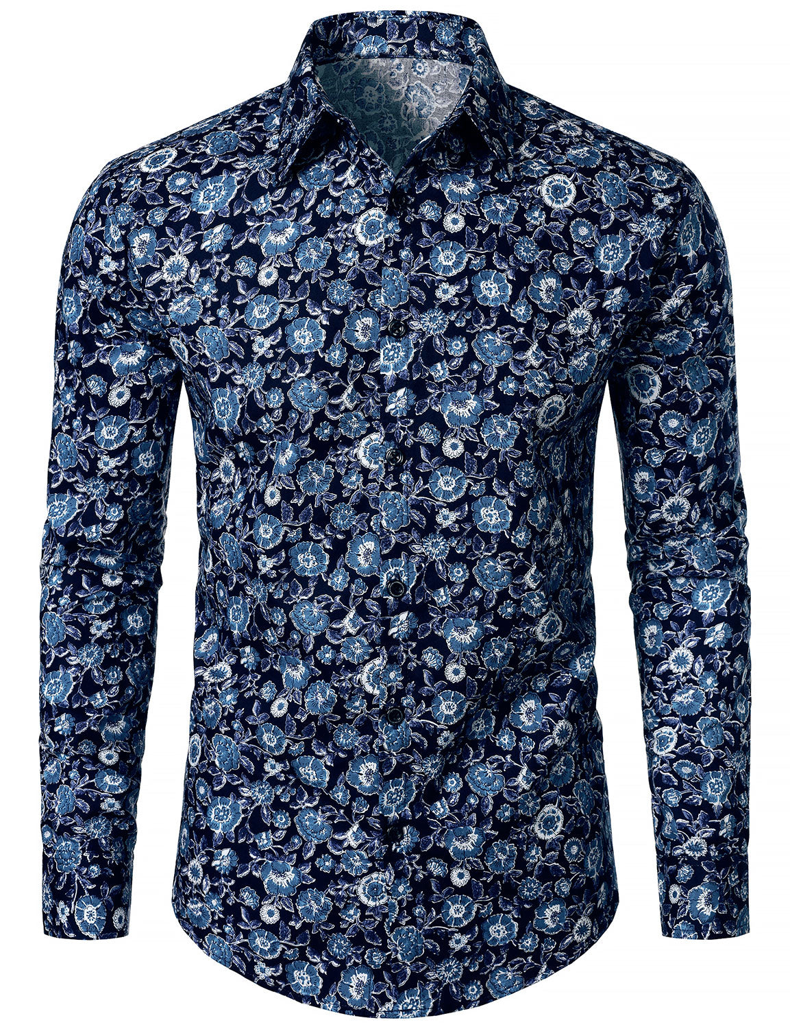 Chemise à manches longues bleu marine en coton respirant à imprimé floral des années 70 pour homme