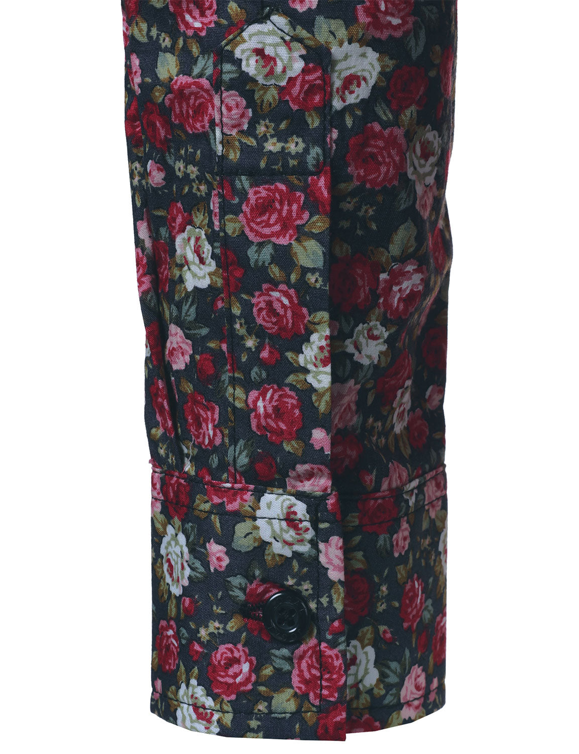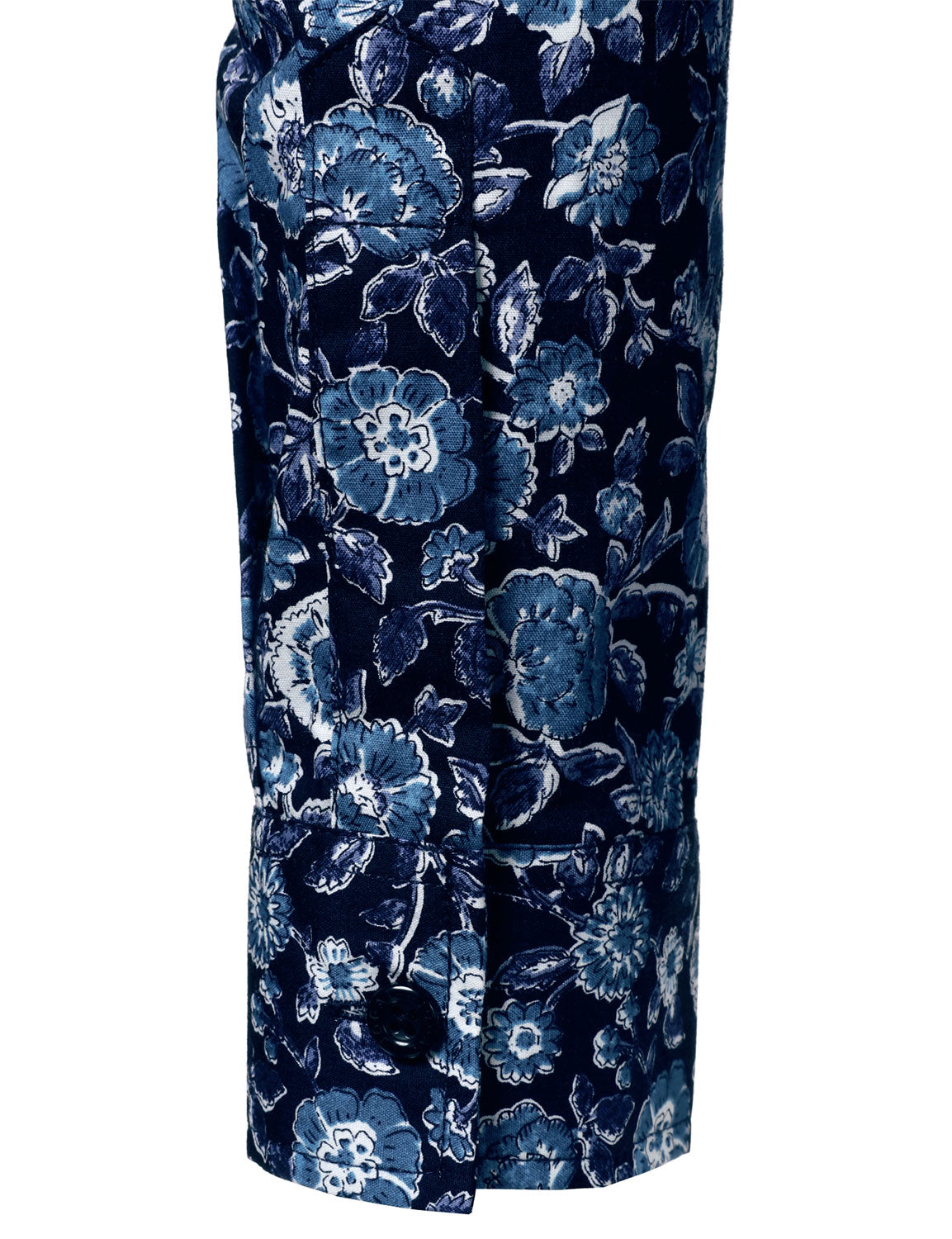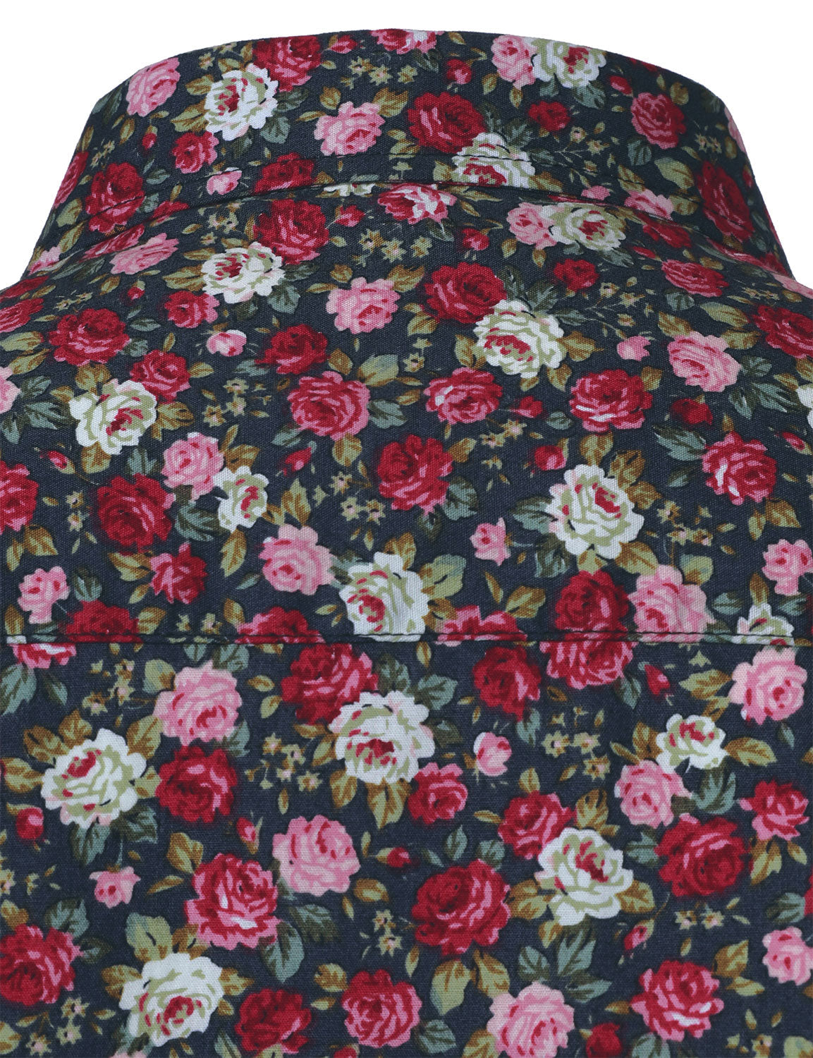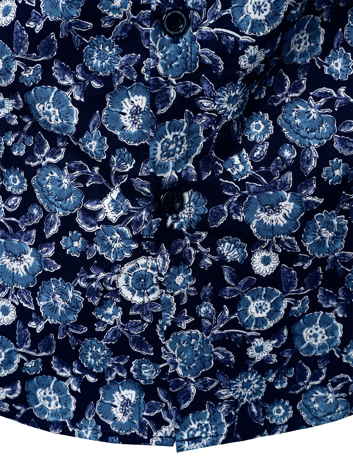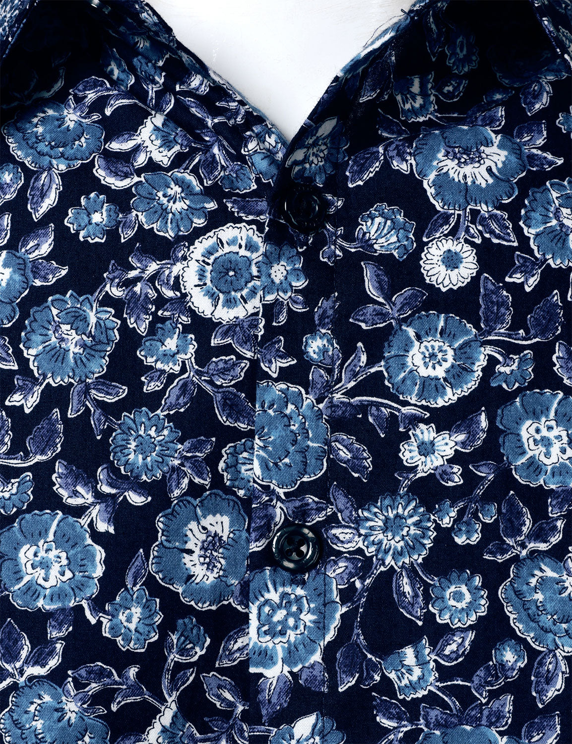 Chemise à manches longues bleu marine en coton respirant à imprimé floral des années 70 pour homme