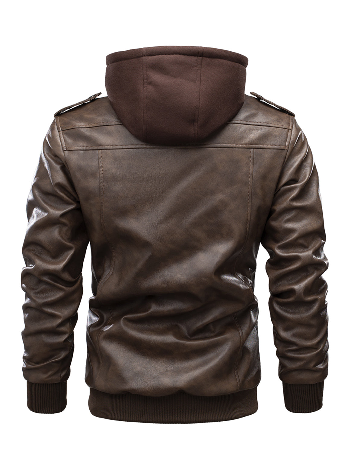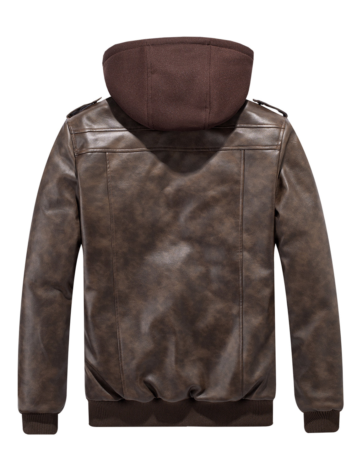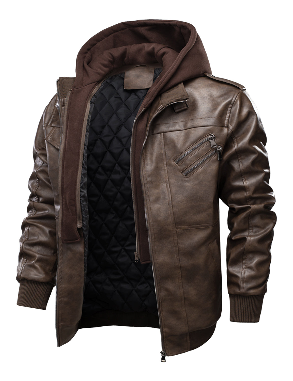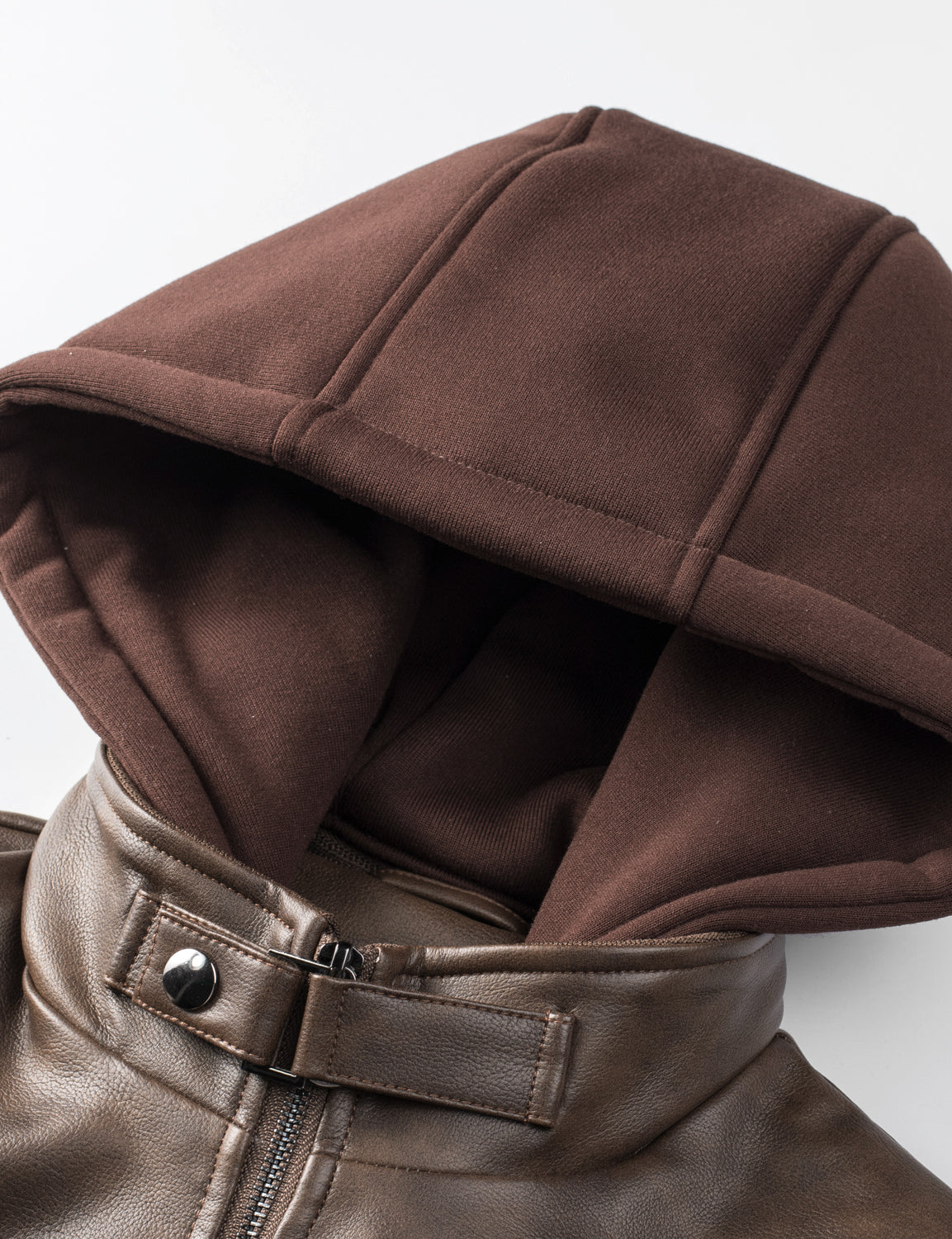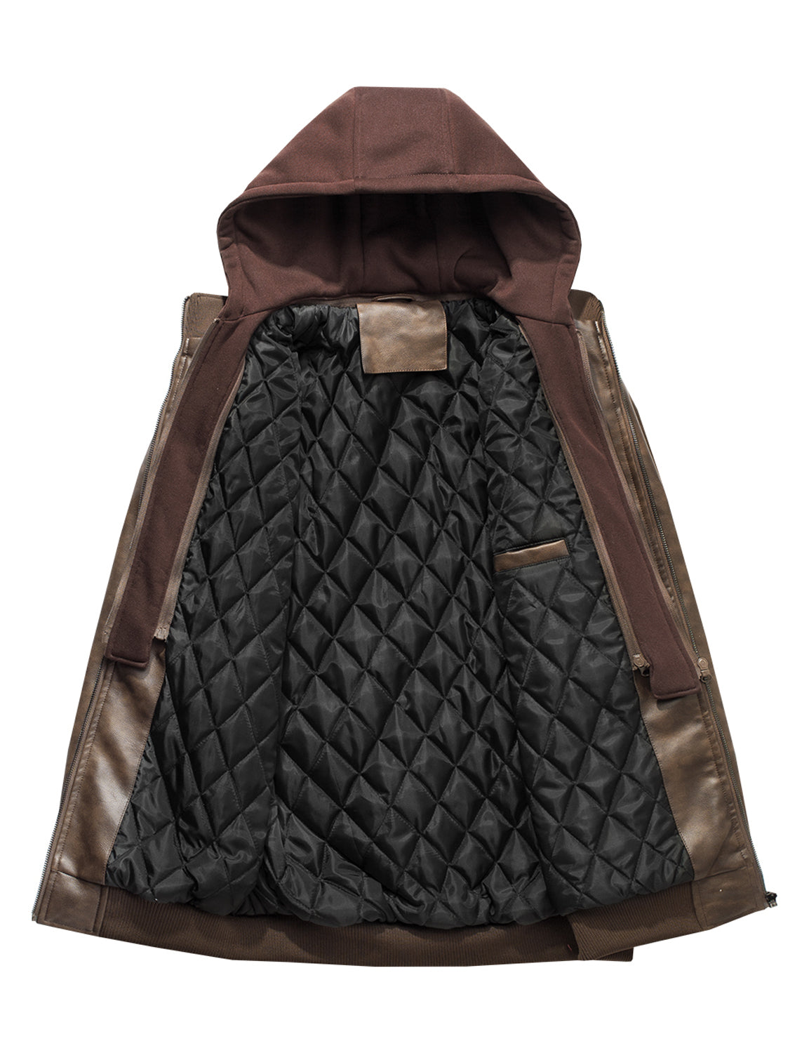 Veste de moto en cuir d'hiver pour motard vintage pour homme avec capuche amovible