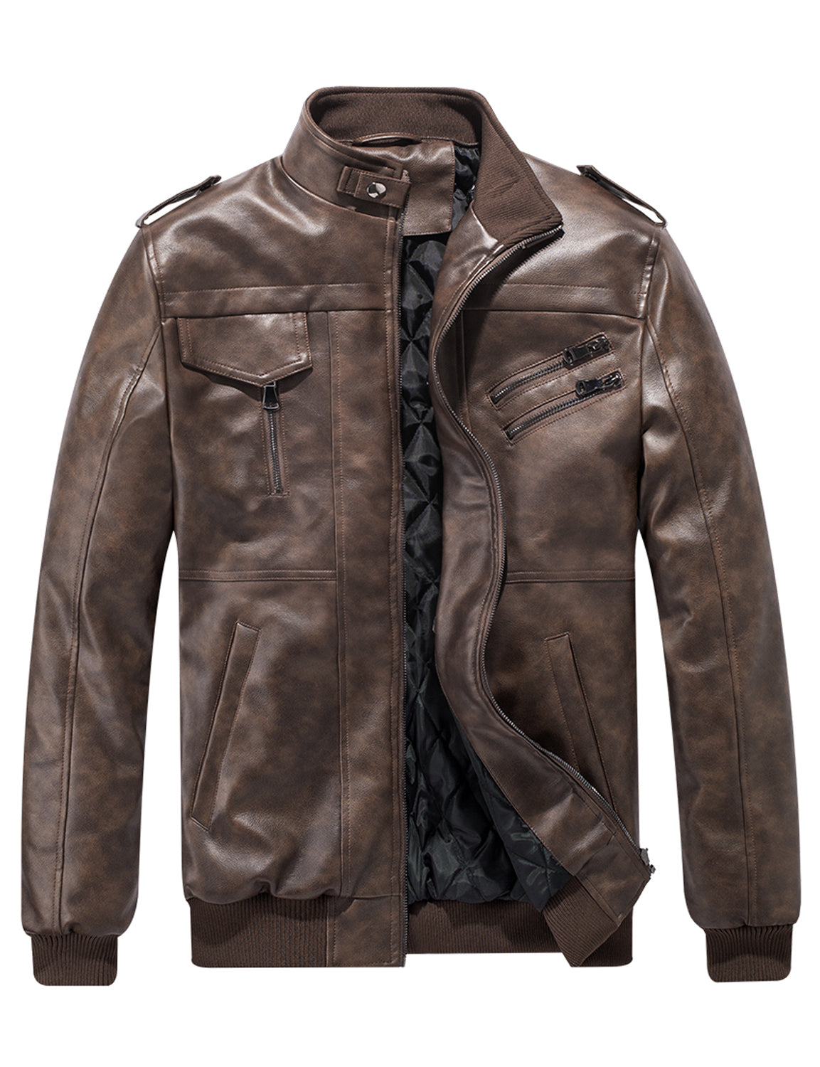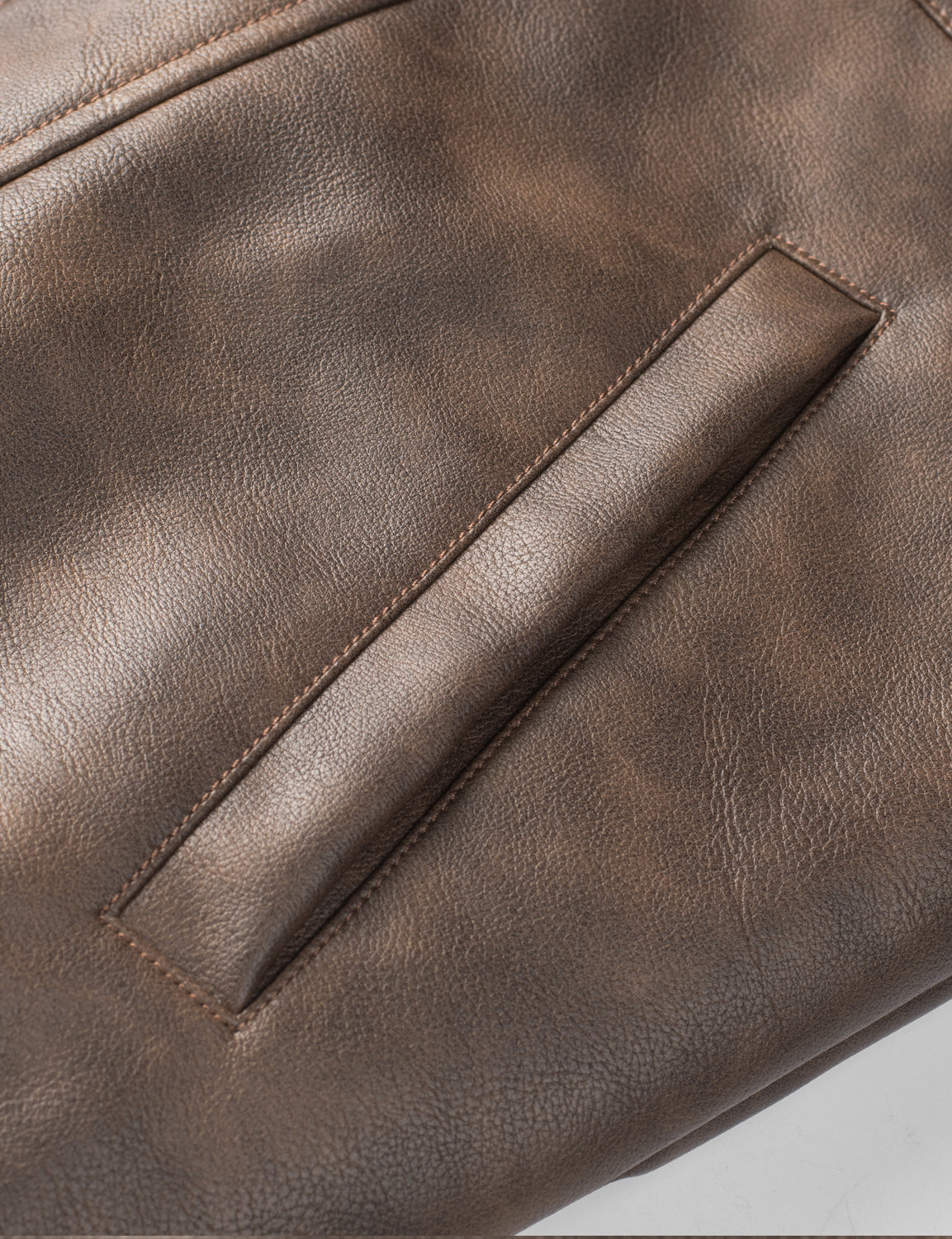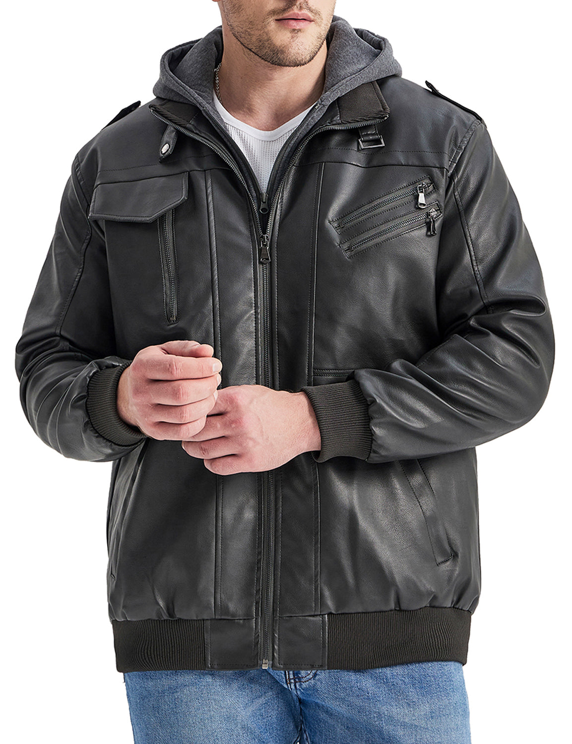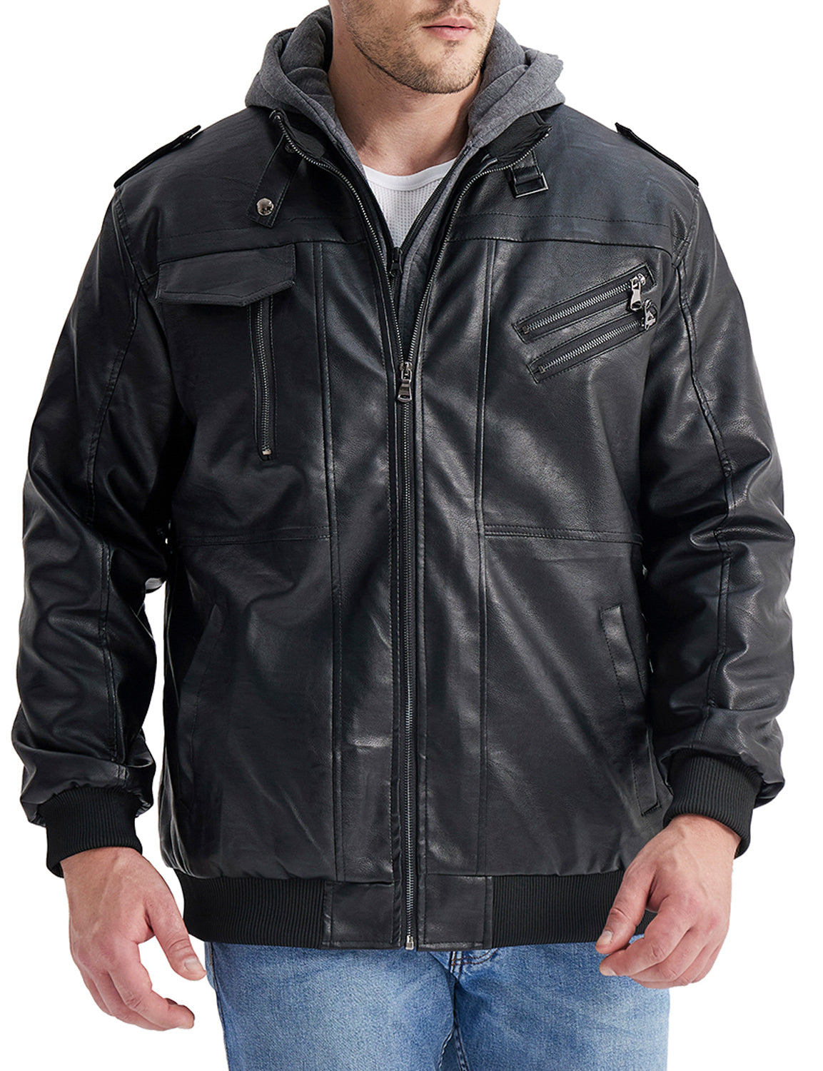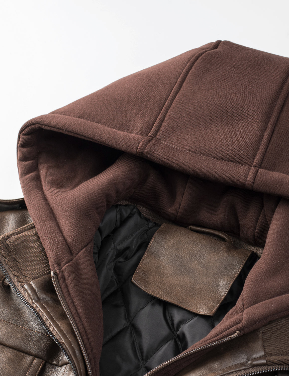 Veste de moto en cuir d'hiver pour motard vintage pour homme avec capuche amovible