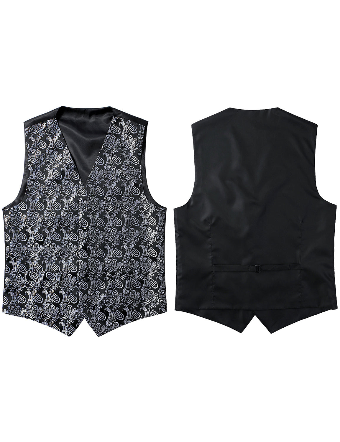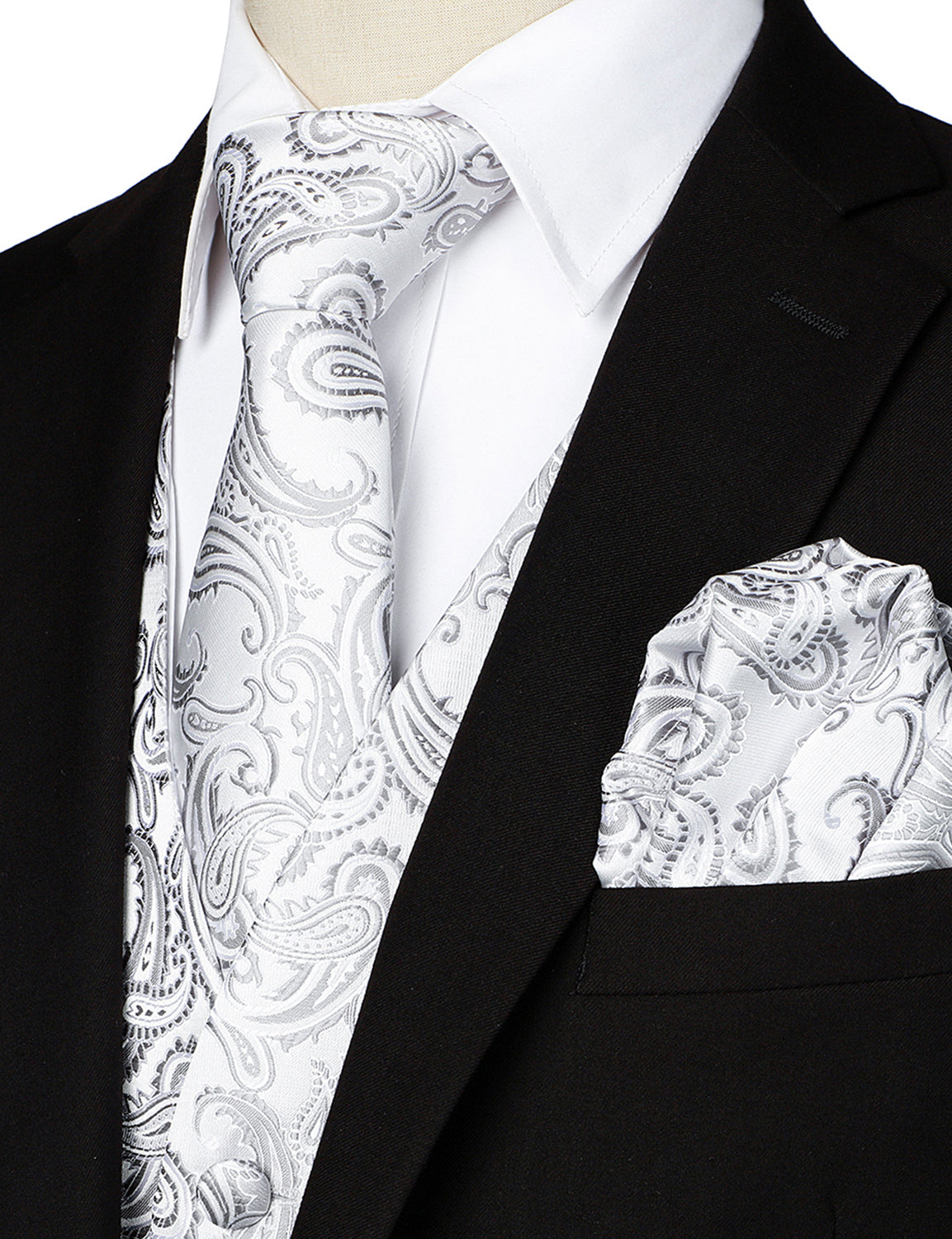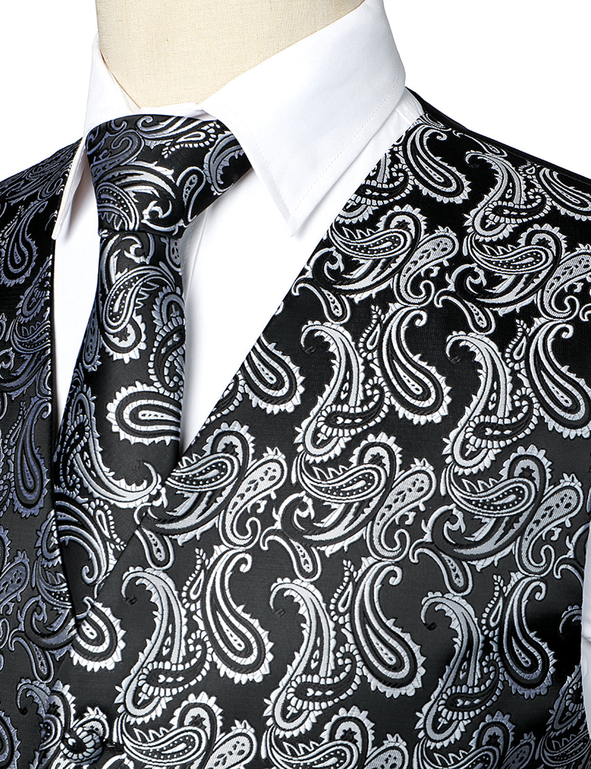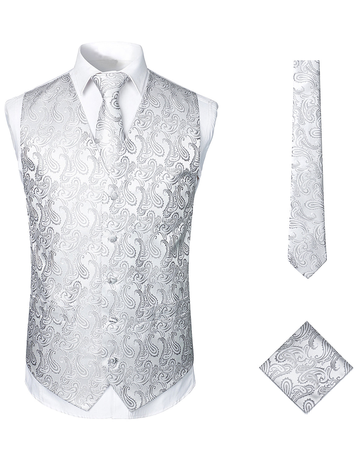 Men's 3pc Classic Jacquard Paisley Vest Set Necktie Pocket Square Waistcoat for Suit or Tuxedo