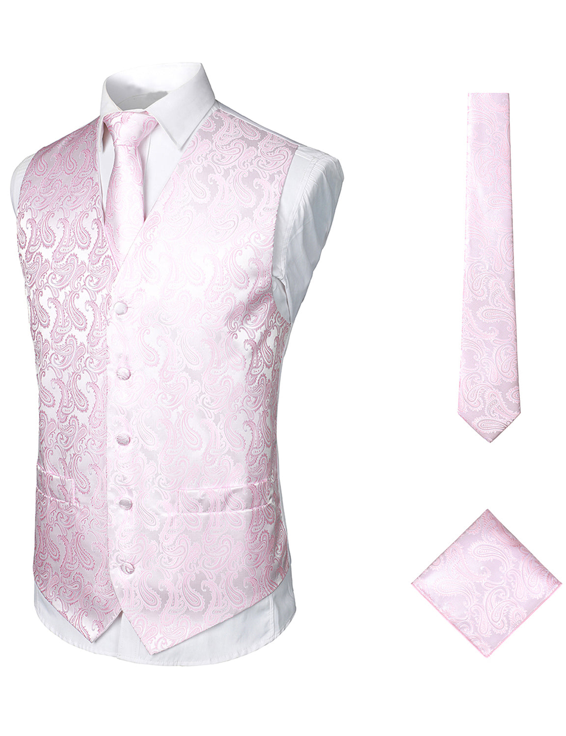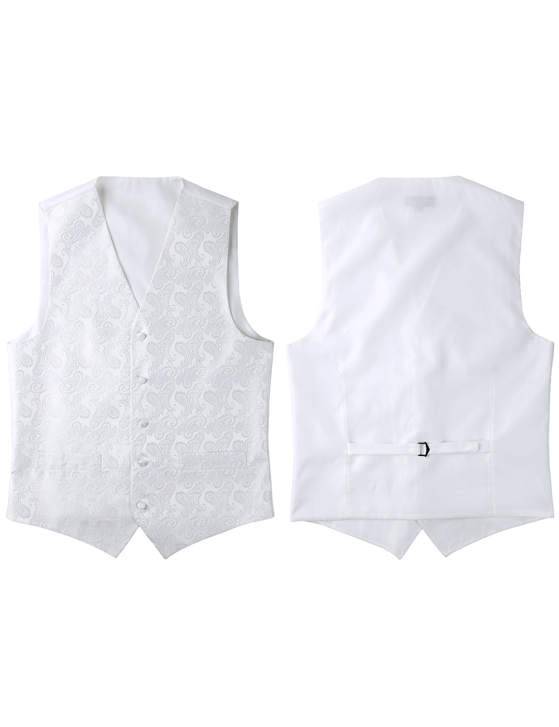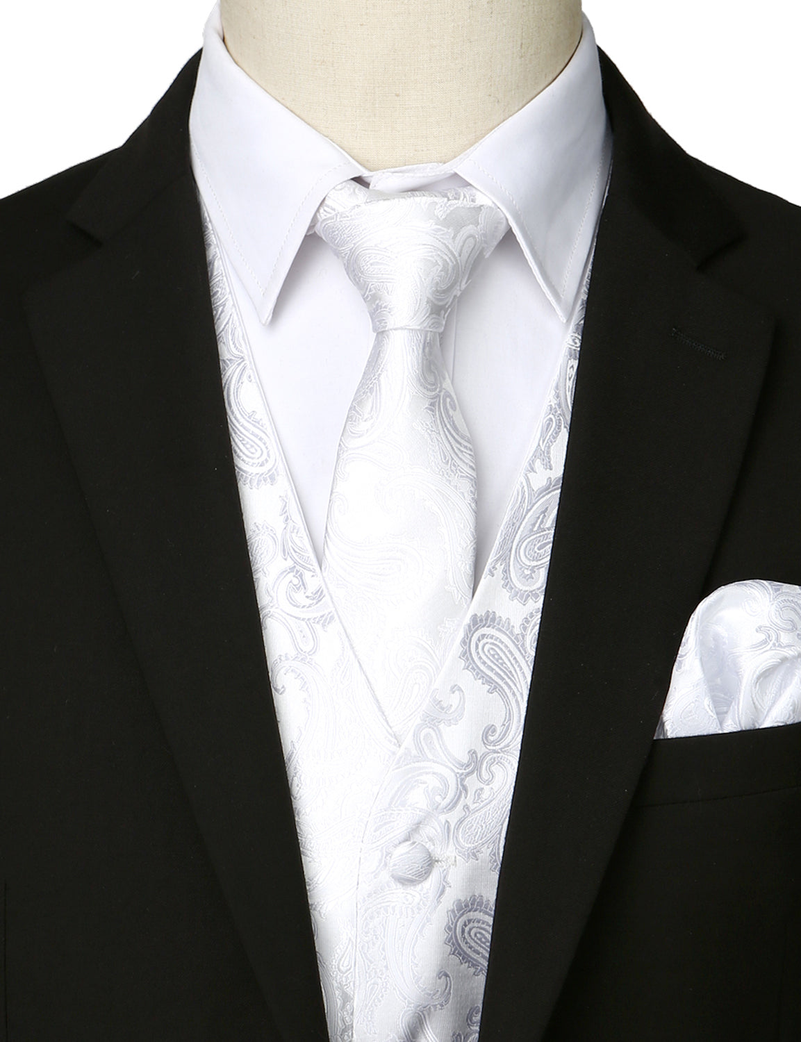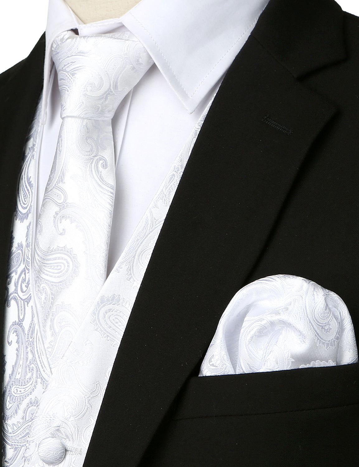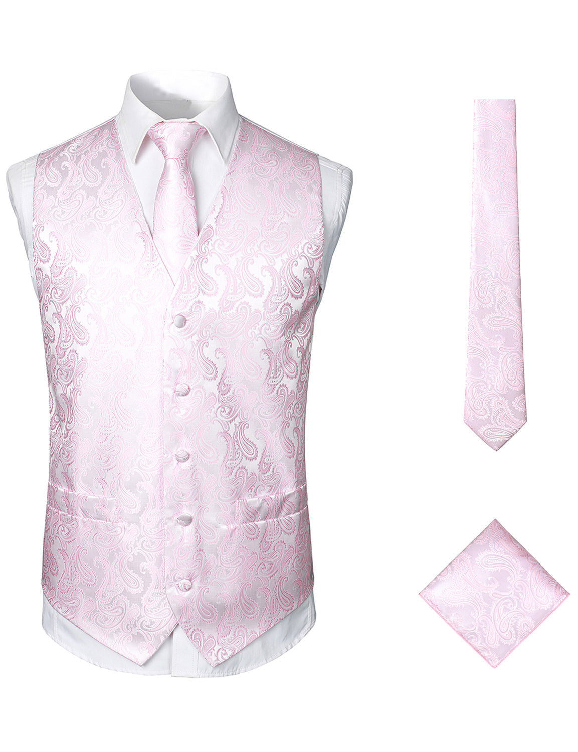 Men's 3pc Classic Jacquard Paisley Vest Set Necktie Pocket Square Waistcoat for Suit or Tuxedo
