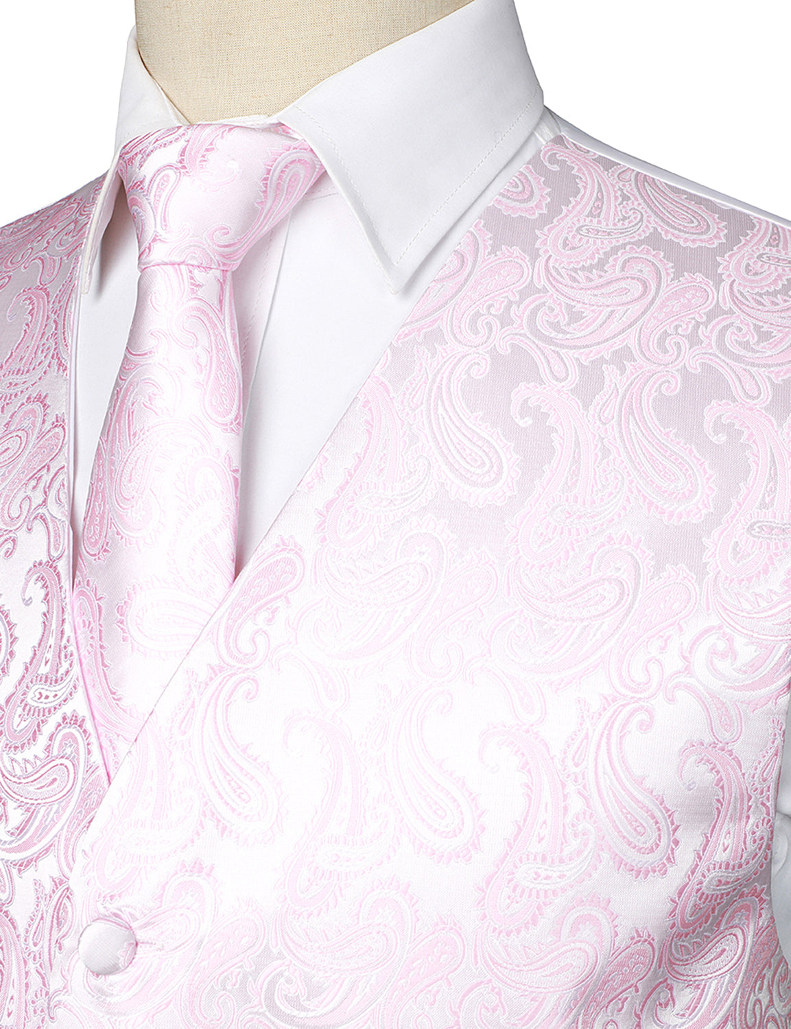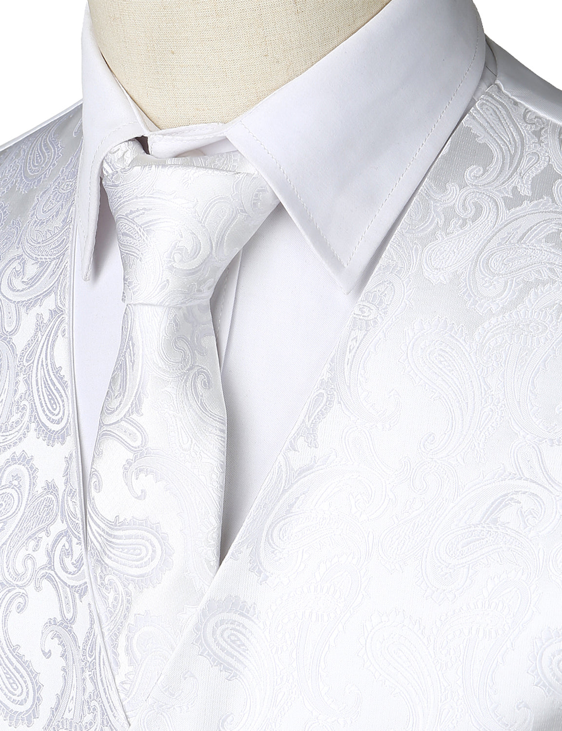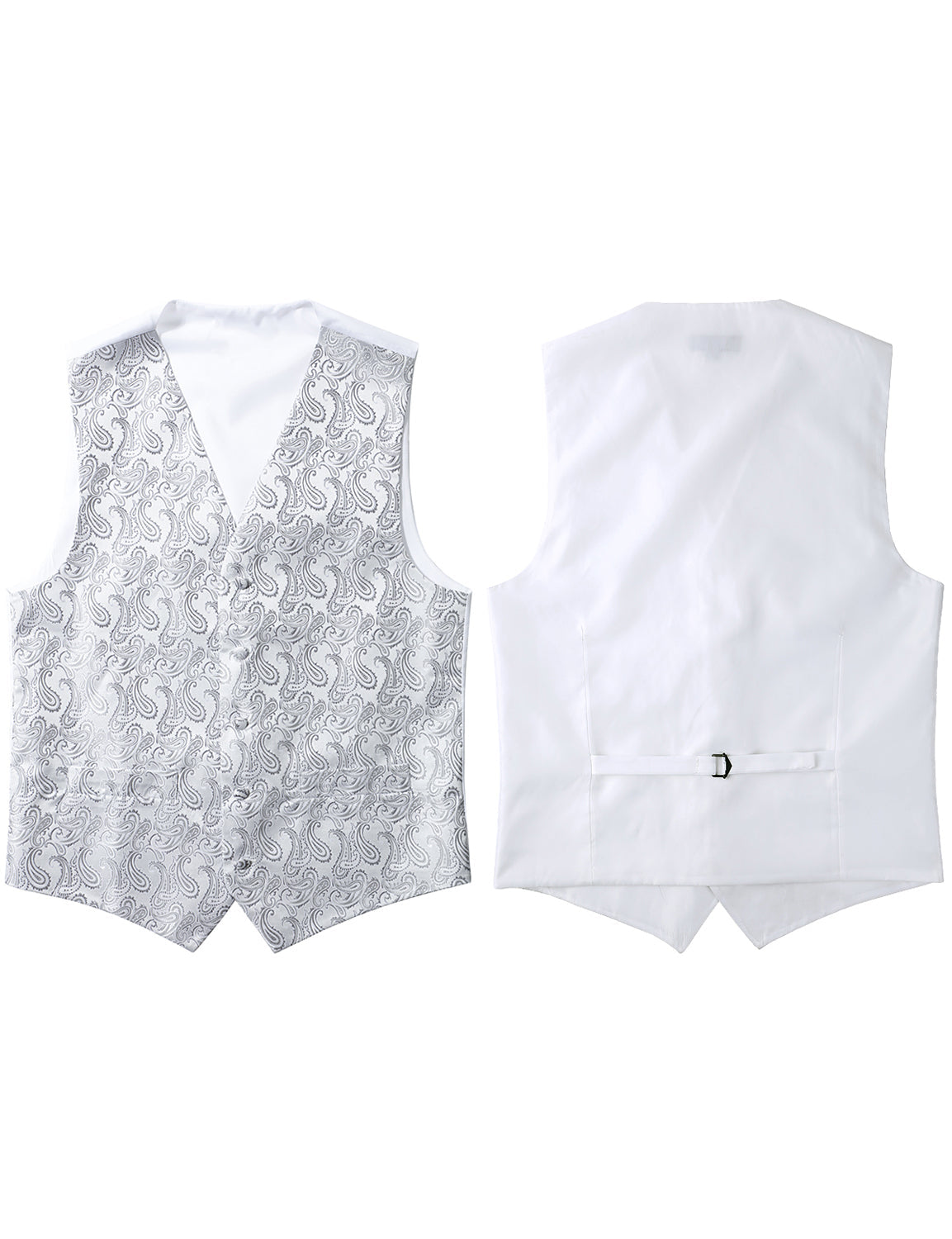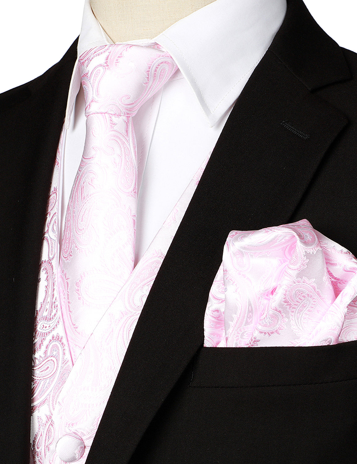 Men's 3pc Classic Jacquard Paisley Vest Set Necktie Pocket Square Waistcoat for Suit or Tuxedo