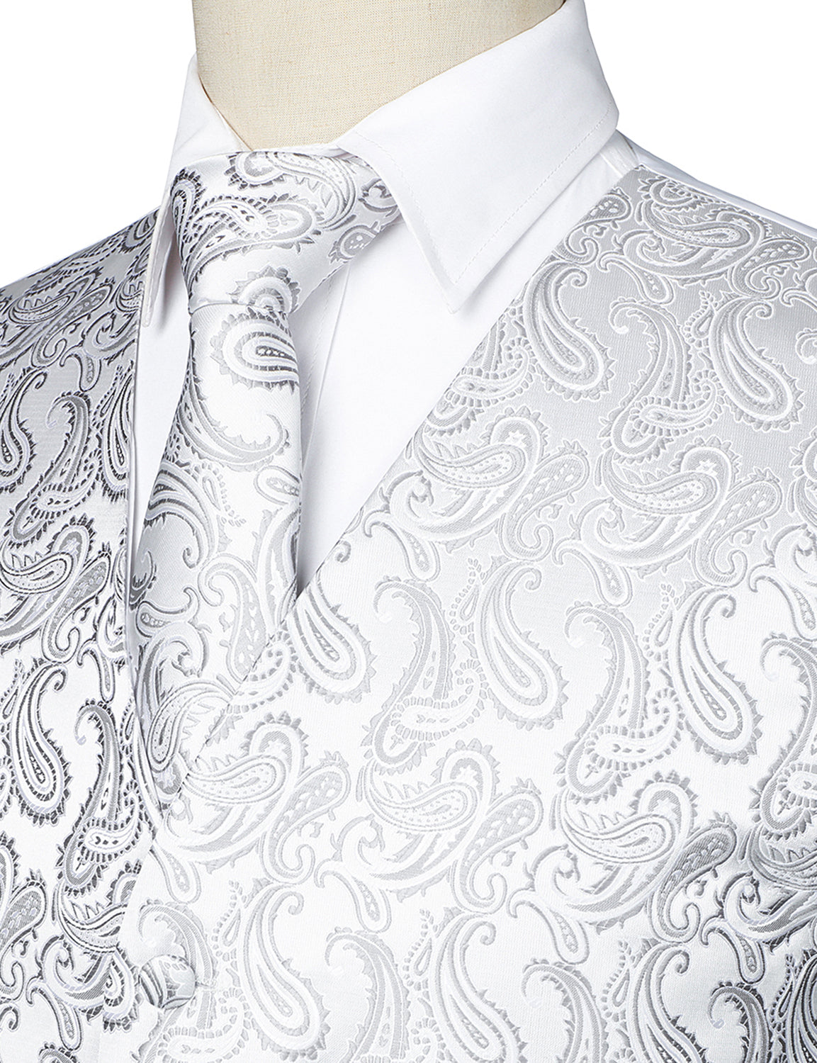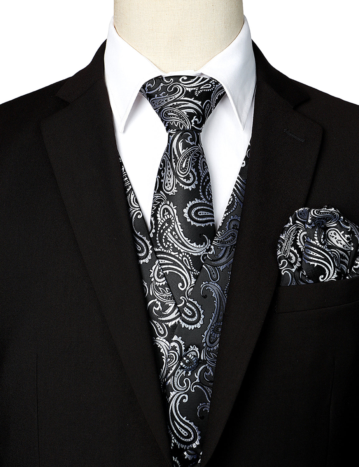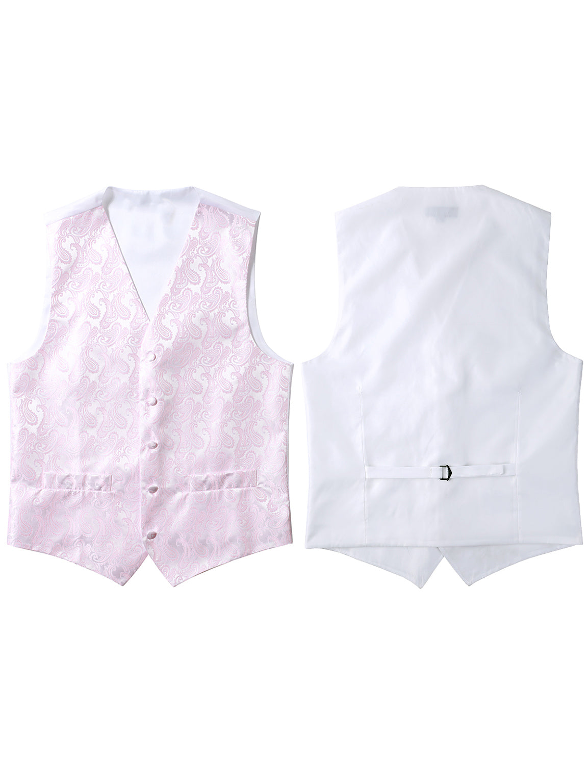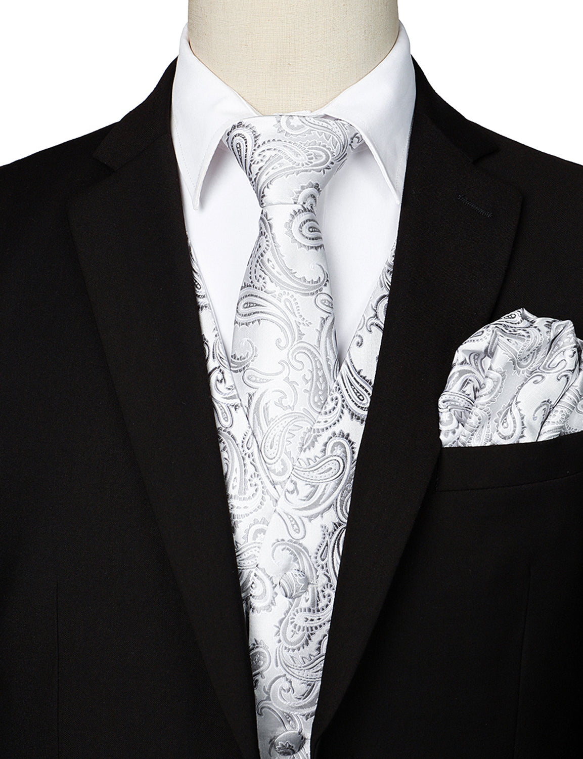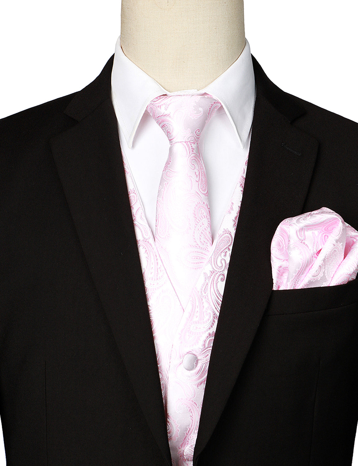 Men's 3pc Classic Jacquard Paisley Vest Set Necktie Pocket Square Waistcoat for Suit or Tuxedo