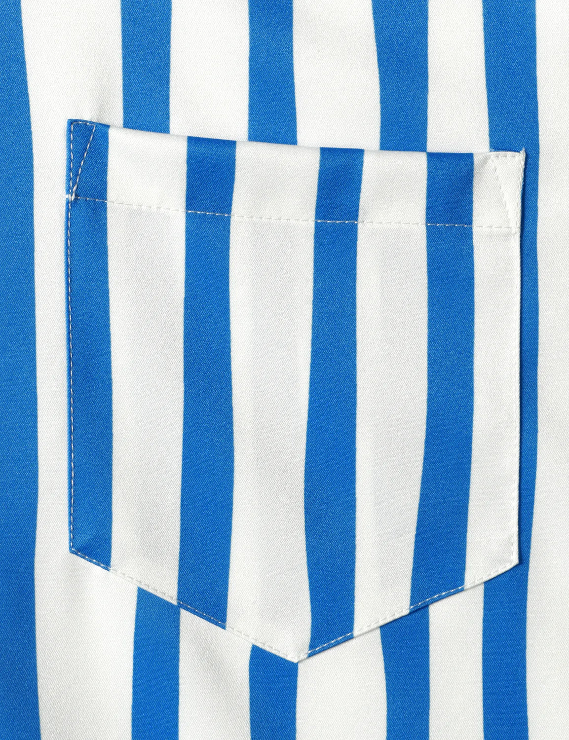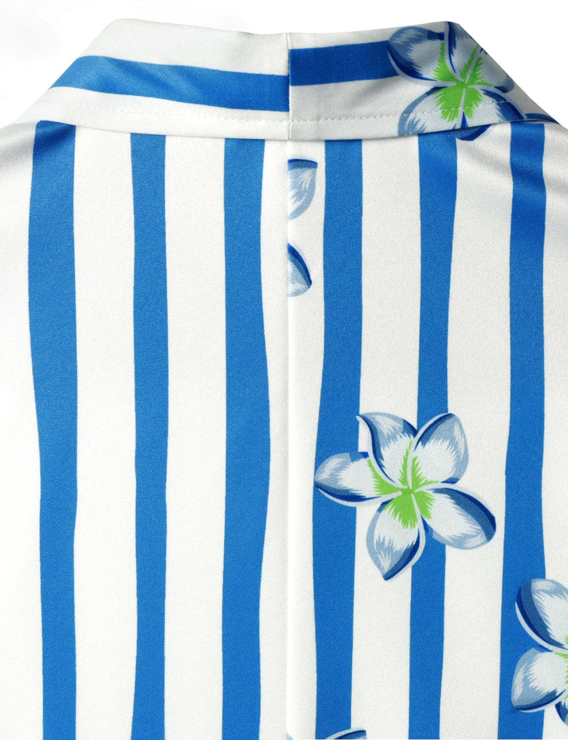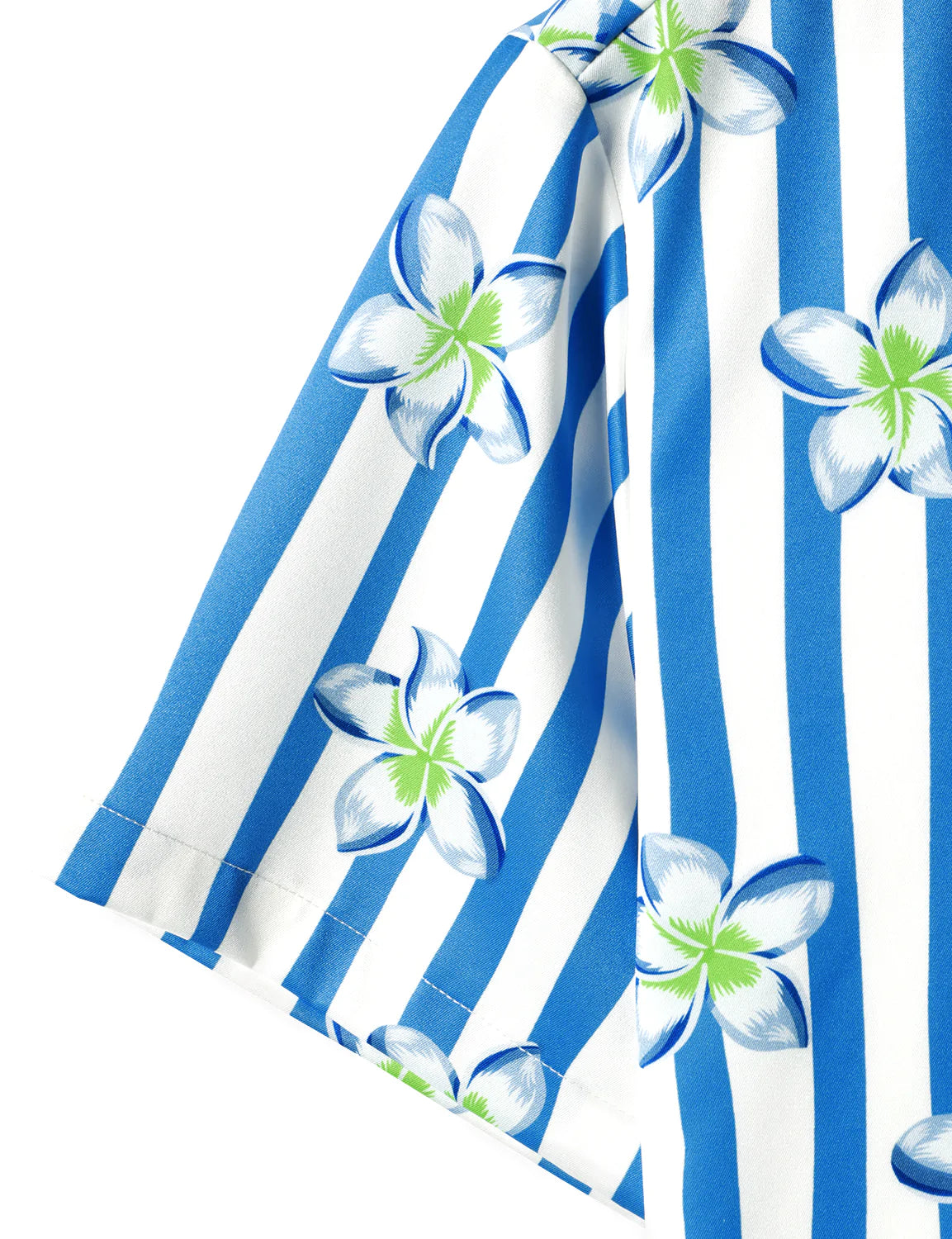 Chemise hawaïenne à manches courtes Aloha à imprimé floral bleu et blanc à rayures pour hommes