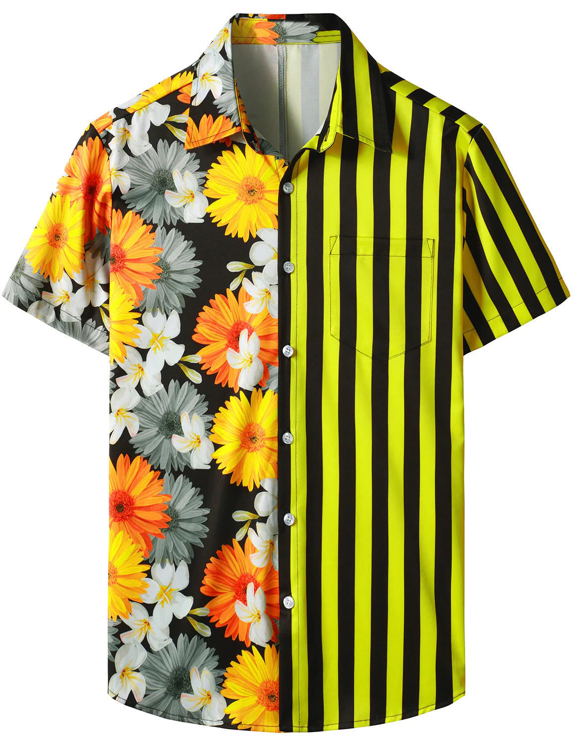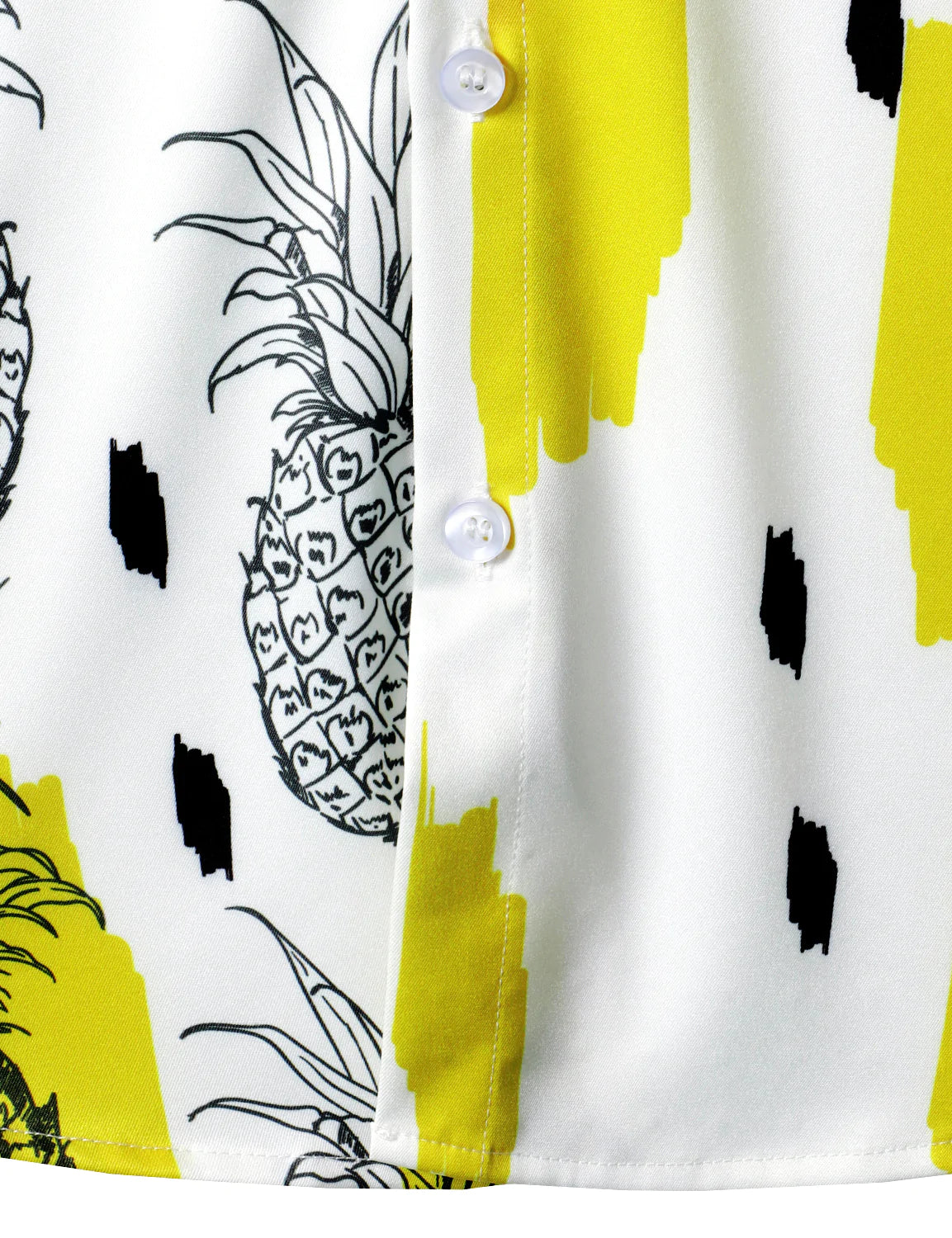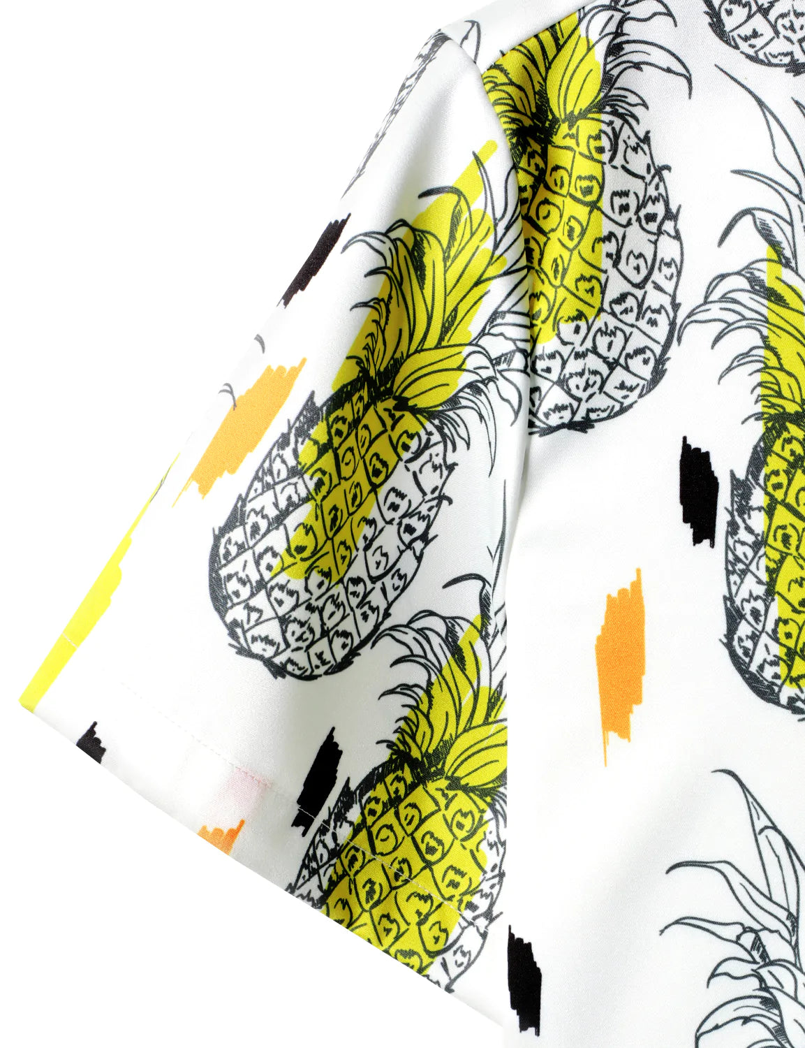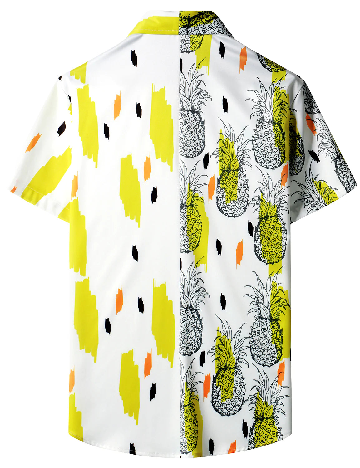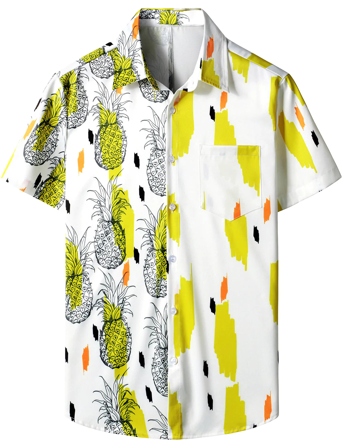 Chemise à manches courtes Aloha pour homme avec poche à imprimé de fruits tropicaux et ananas