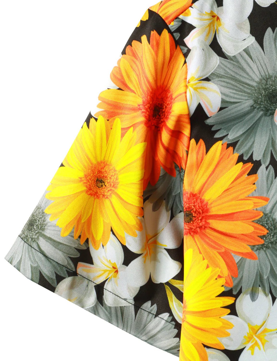 Chemise hawaïenne à manches courtes en coton Aloha à imprimé palmiers tropicaux pour hommes