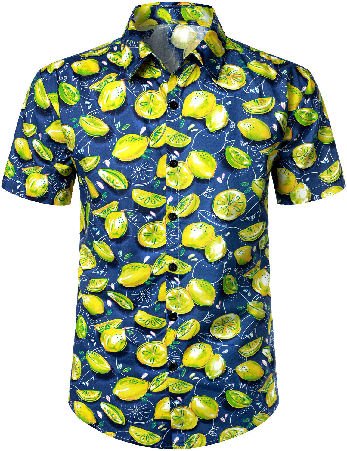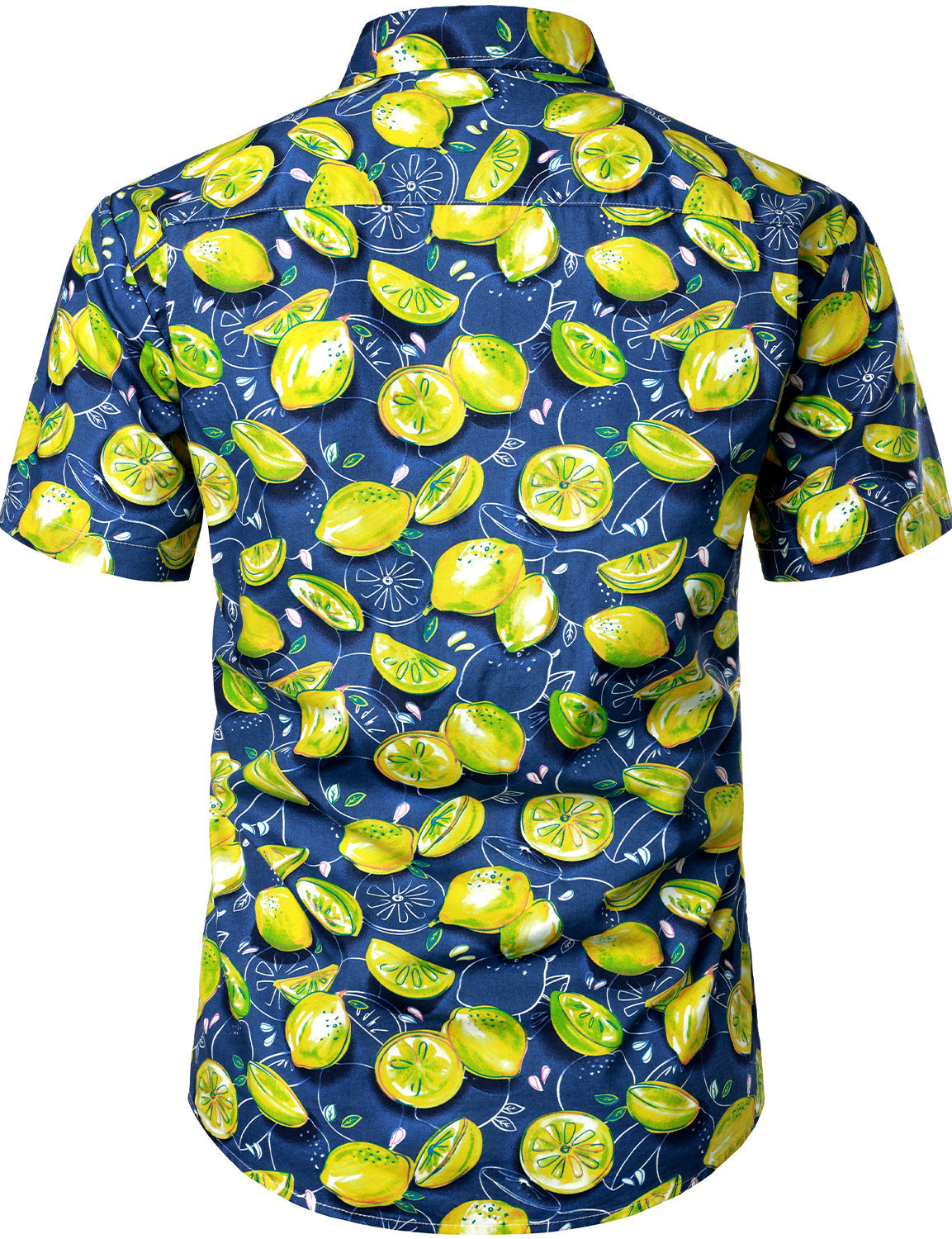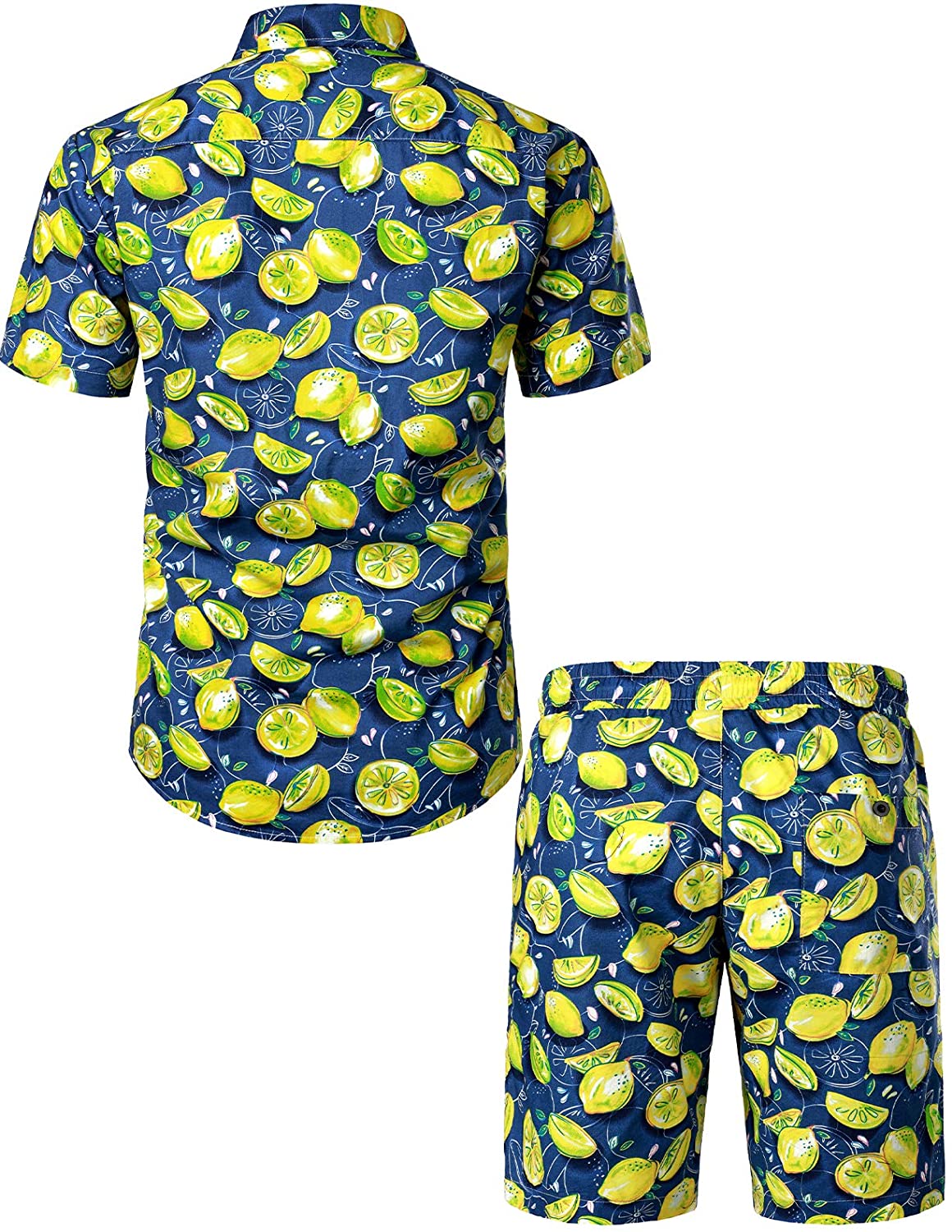 Ensemble chemise hawaïenne et short en coton imprimé citrons pour homme