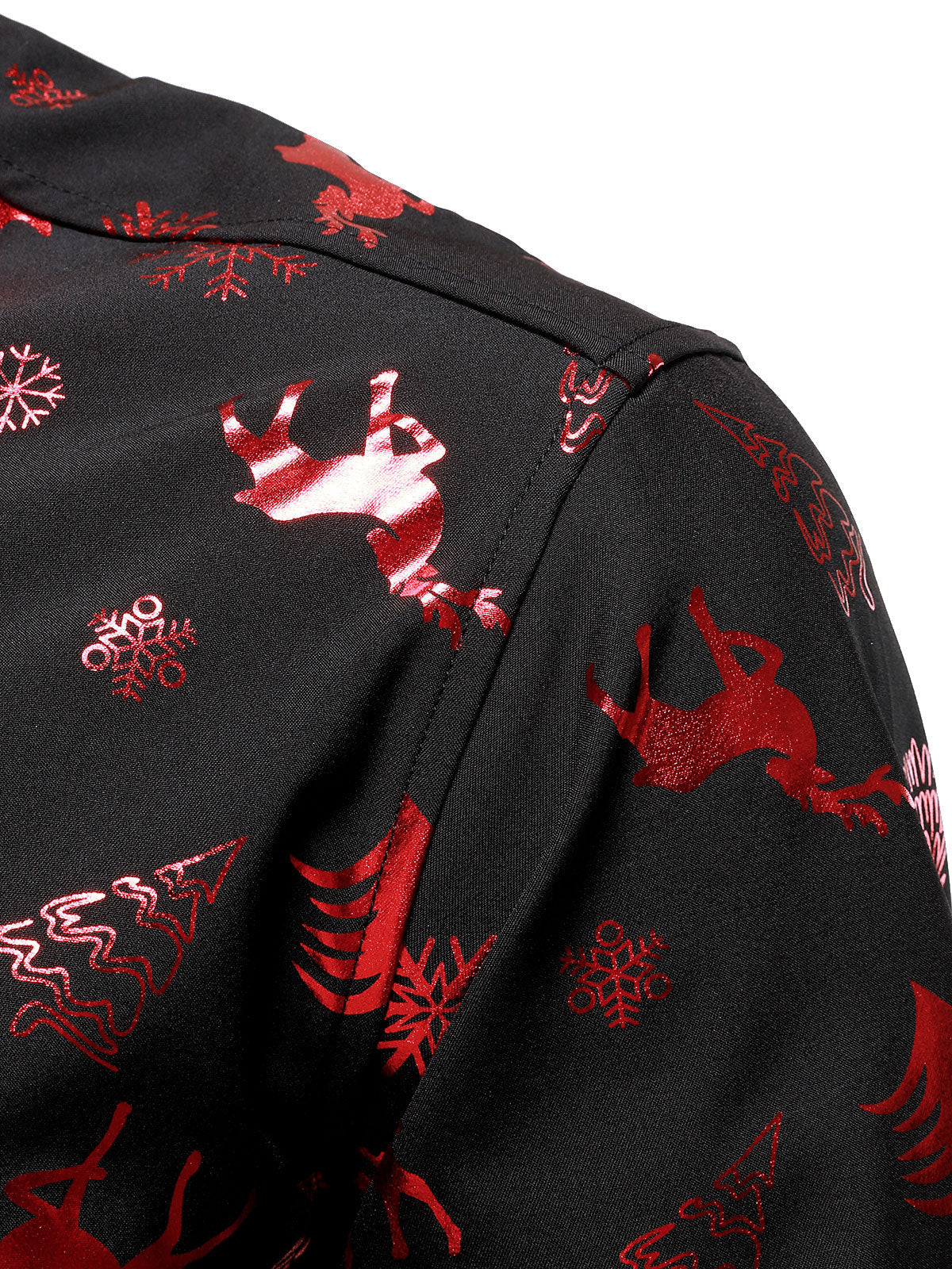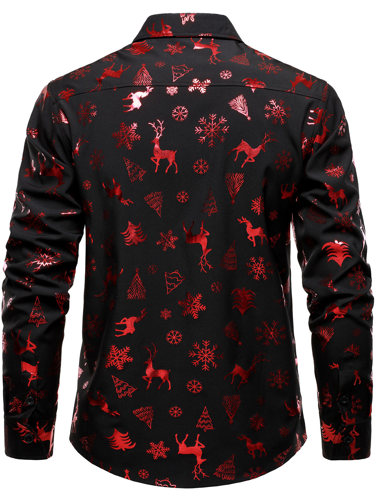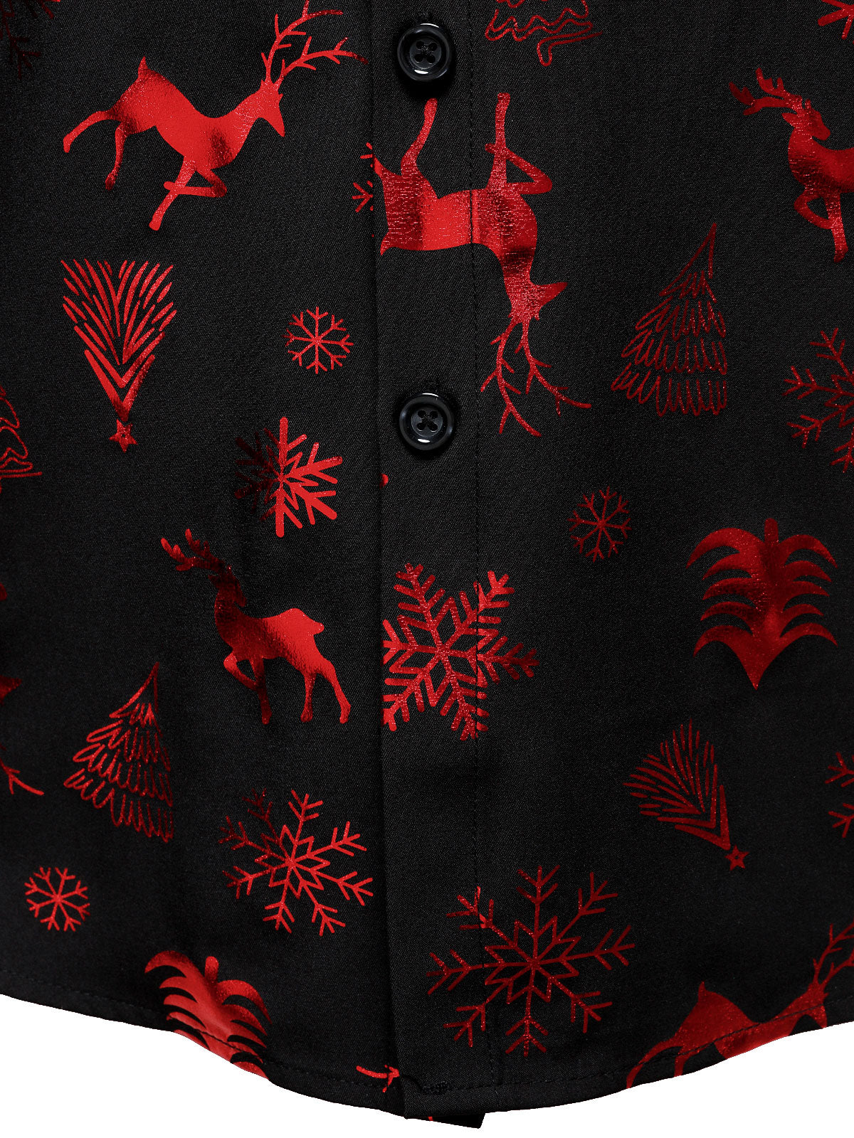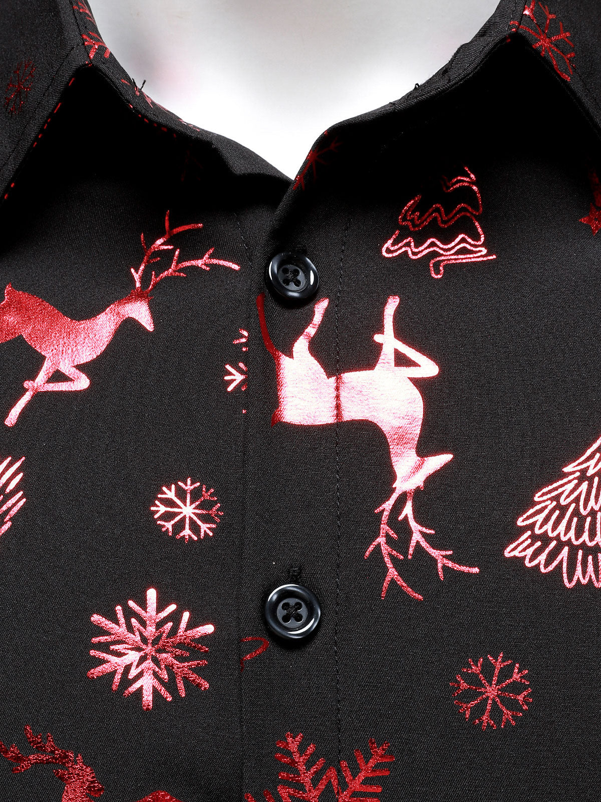 Chemise à manches longues boutonnée pour homme, motif flocons de neige et rennes rouges pailletés, idéale pour les fêtes de Noël