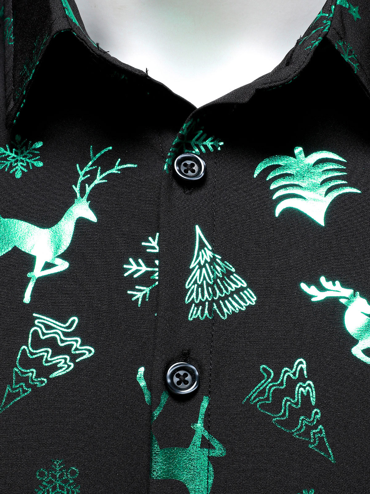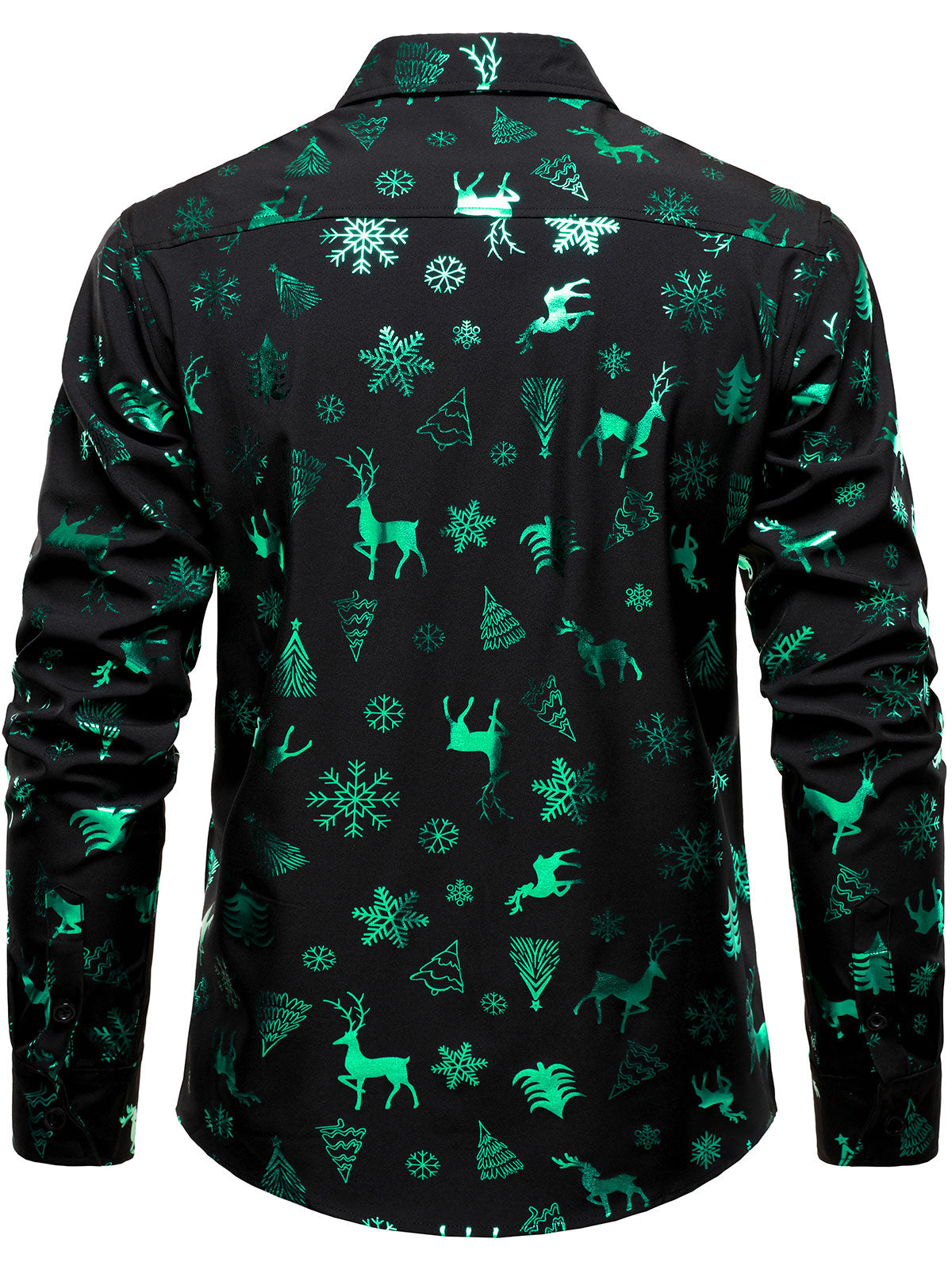 Chemise à manches longues boutonnée pour homme, motif flocons de neige et rennes verts pailletés, idéale pour les fêtes de Noël