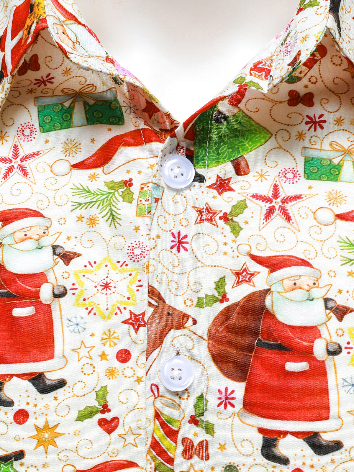 Chemise à manches longues boutonnée pour homme, motif Père Noël festif, idéale pour les fêtes de fin d'année