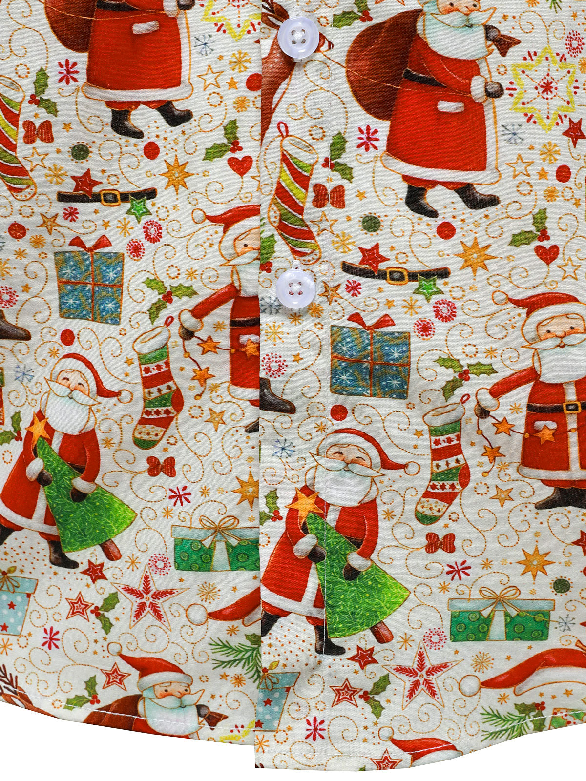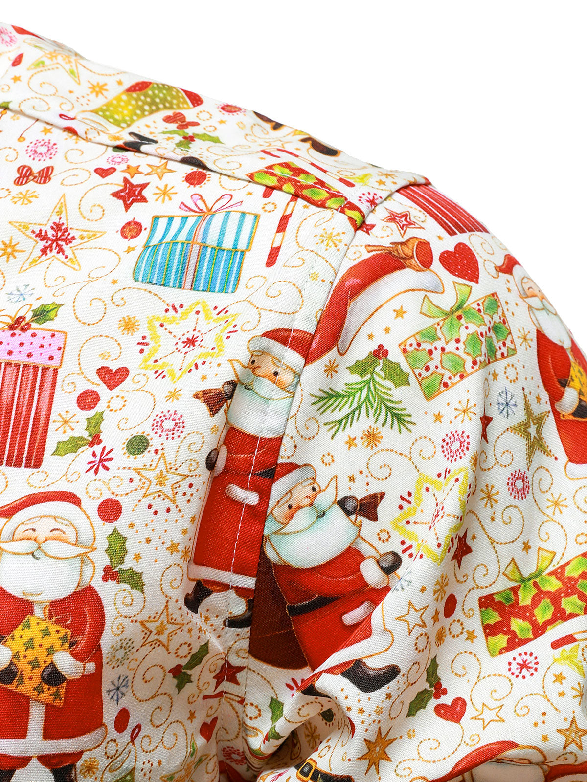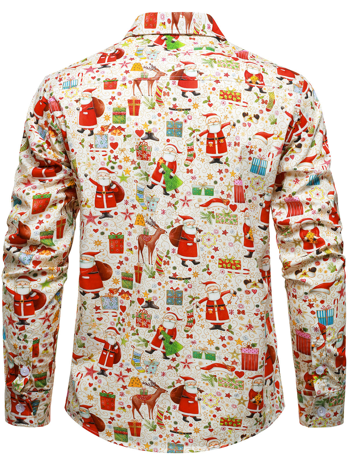 Chemise à manches longues en coton imprimé Père Noël vintage pour homme