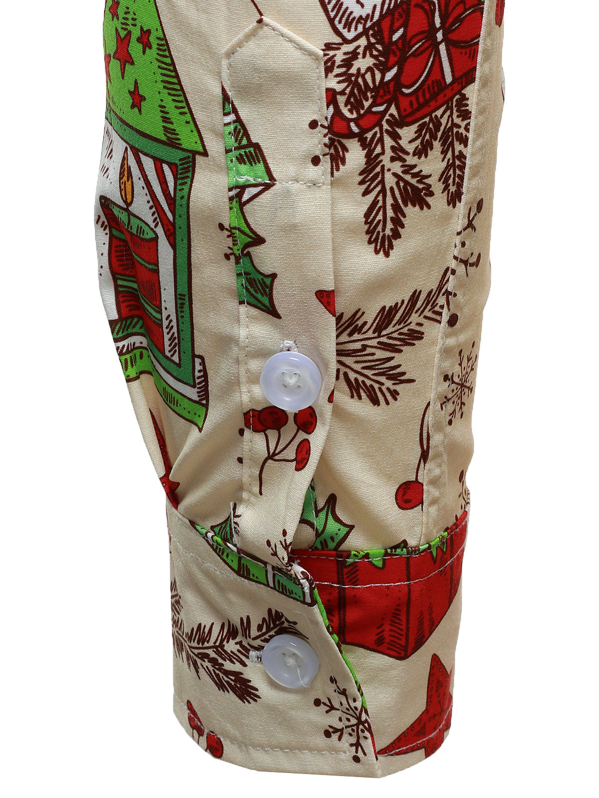 Chemise beige à manches longues pour homme, imprimé festif et humoristique sur le thème de Noël